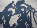 We pick up a lot of riders heading on Road 89 out to Winters. The best spot to wheel suck is behind a fast moving tandem and everyone was on it. We caught up with Paul and rode steadily along with a tailwind. The sun had risen and I caught a glimpse of the tandem’s shadow, pretty cool looking. I snapped a shot of that with Paul’s shadow along with ours. We left the group at the turn onto128 for a brief stop.
