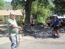 RS#3-Pope Valley, first thing I do is hop off the bike and head for the porta-pottie line. I always think there are never enough of them for everyone’s use. I see Rob, Paul, and Toshi Takeuchi. Mark’s taking some photos of everyone. I’m guzzling a V8, downing a can of Coke and eating some chips. I have a plastic baggie that I fill up with fruits and pickles. Everything goes in the handle bar bag. I eat as I ride. It’s much easier for the stoker to do than the captain. Water