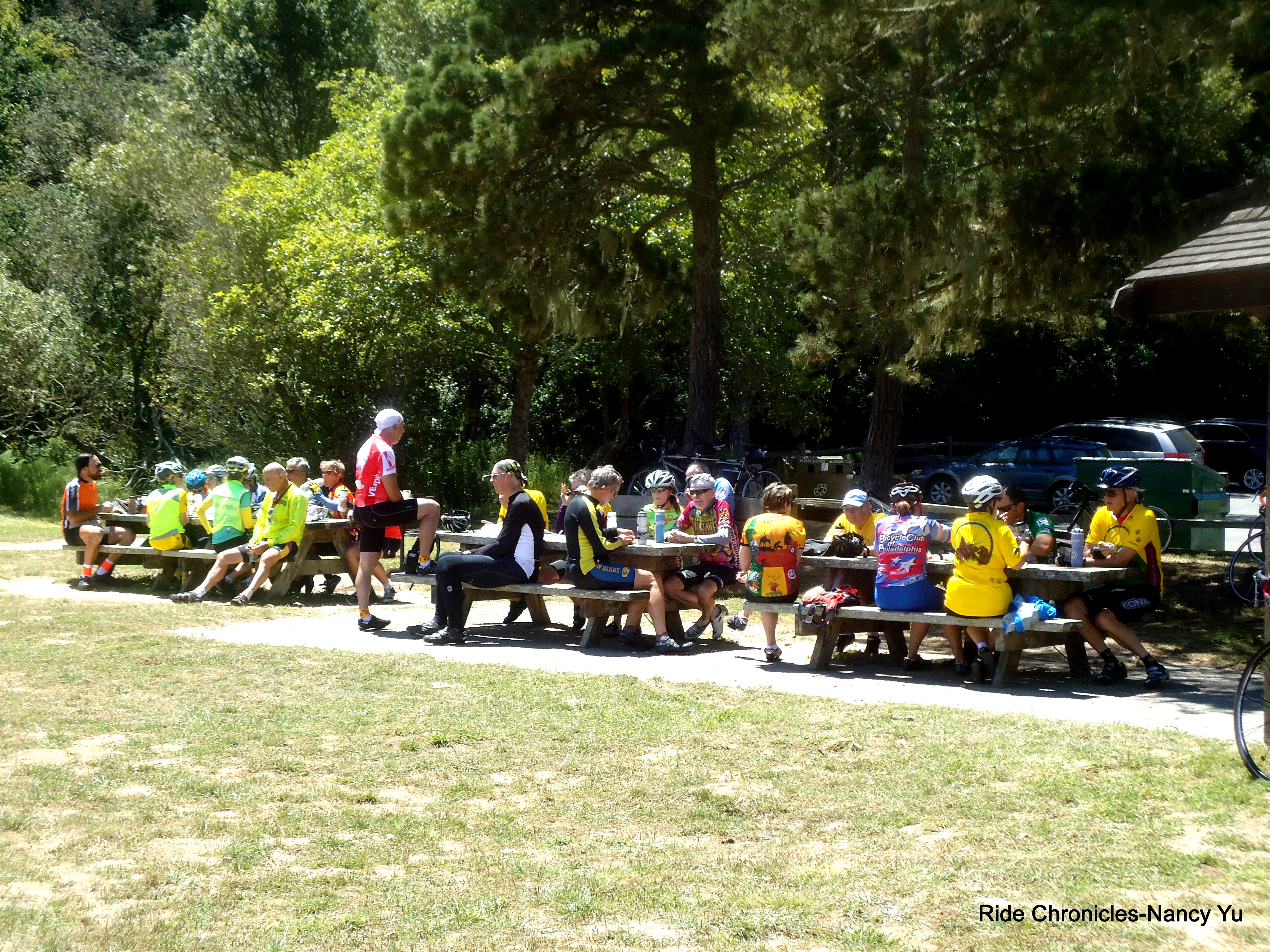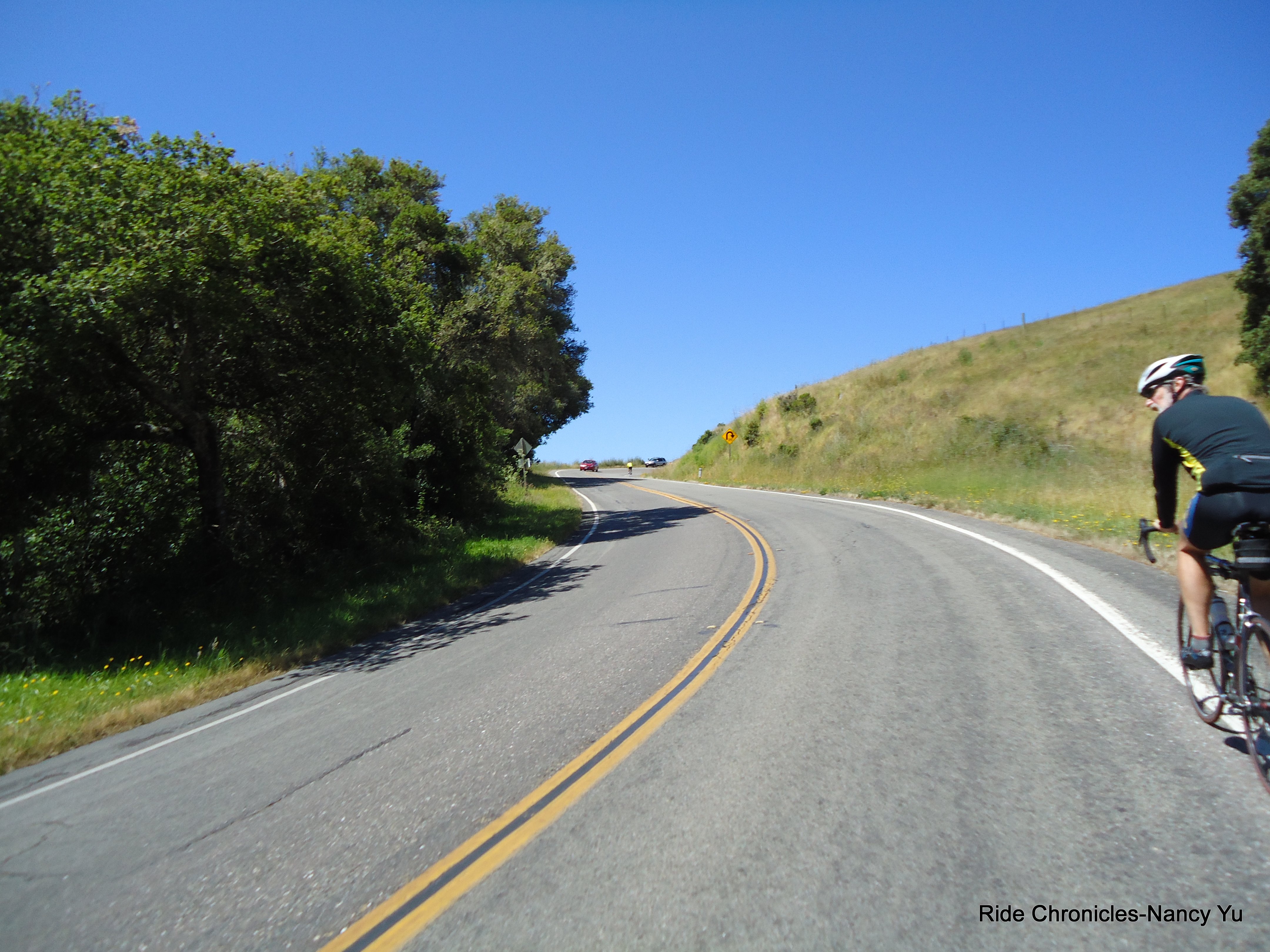 I co-lead the club’s Weds group ride starting from Nicasio out to Heart’s Desire Beach with Debbie Miskell. We take Nicasio Valley Rd, pass the reservoir and turn onto Pt Reyes-Petaluma Rd to Platform Bridge Rd. This section of the route is pretty flat with some small rollers in between.
