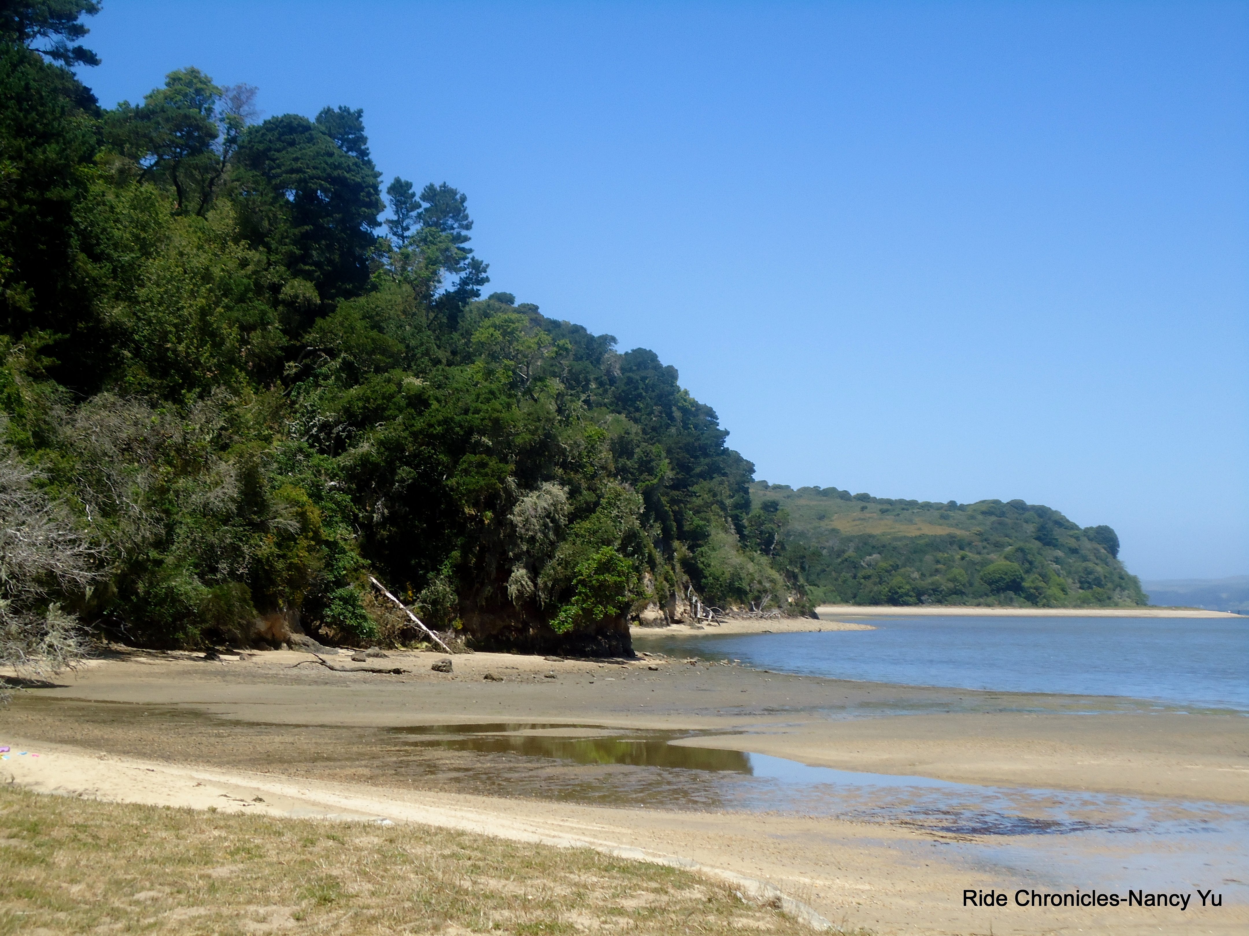 We continue west on Sir Francis Drake for the climb up to Pierce Point Rd. The gradient on this climb fluctuates from 9%-11% and maxing out at 13%. The road eases up at the top as we make the turn onto Pierce Point Rd. It’s a few little climbs before we turn into Tomales Bay State Park to drop down to Heart’s Desire Beach for our destination lunch stop. This beach is a sheltered cove on Tomales Bay with plenty of picnic tables. Restrooms and water are available.