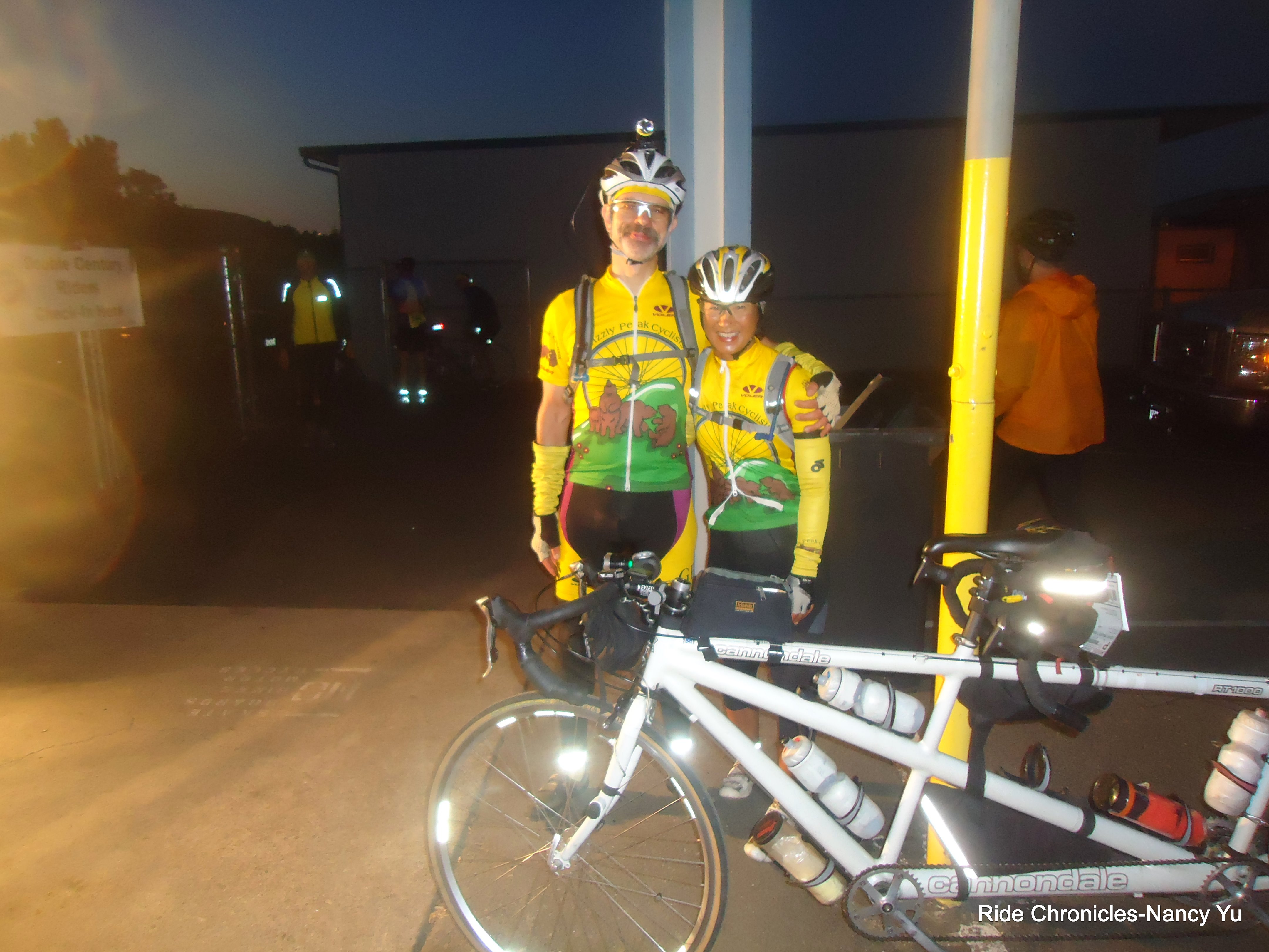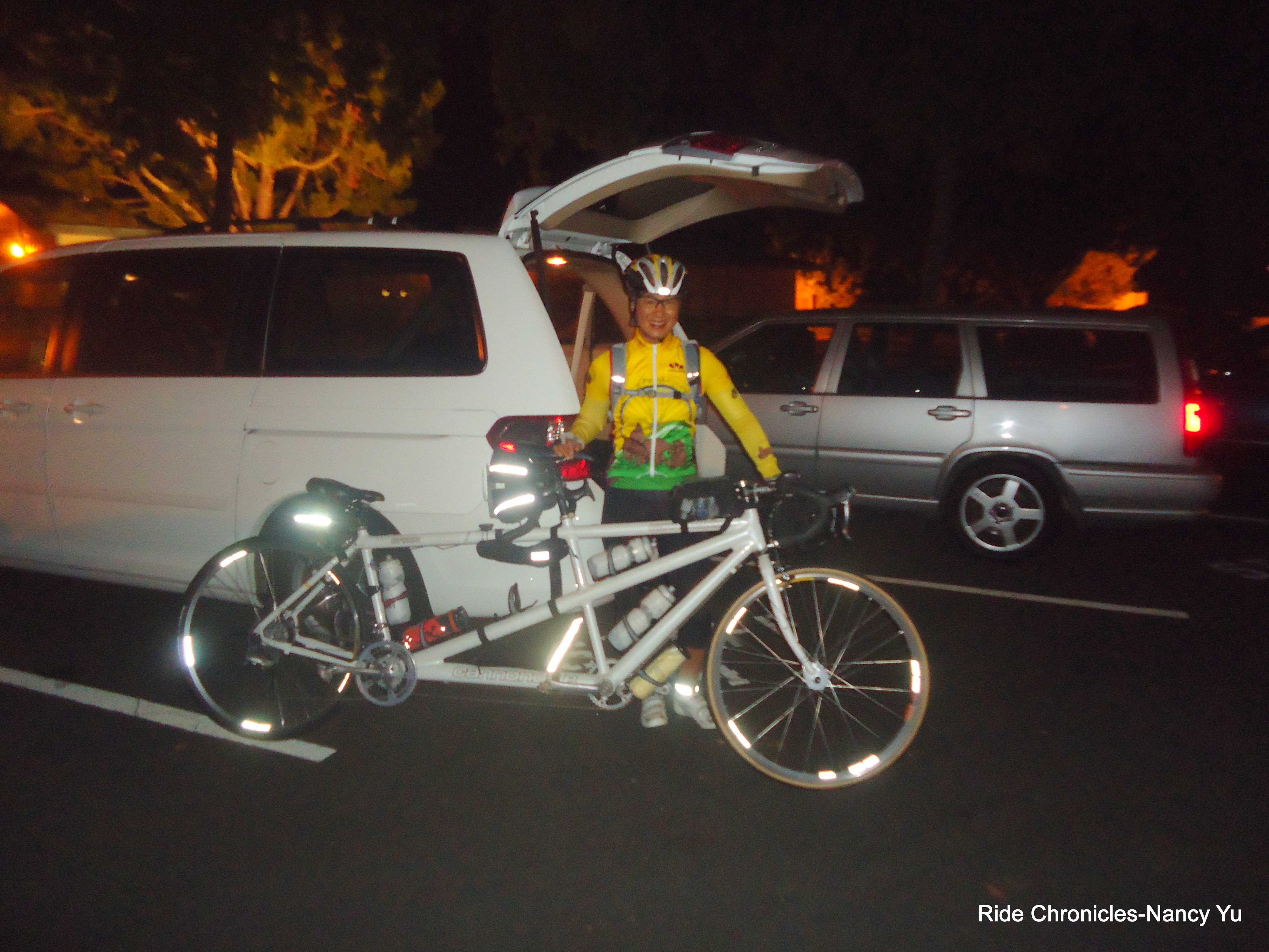 With the tandem loaded and ready to go, we give each other a high-five and roll out early at 3:38 AM. We spot Bill Monson as we exit the parking lot. We make