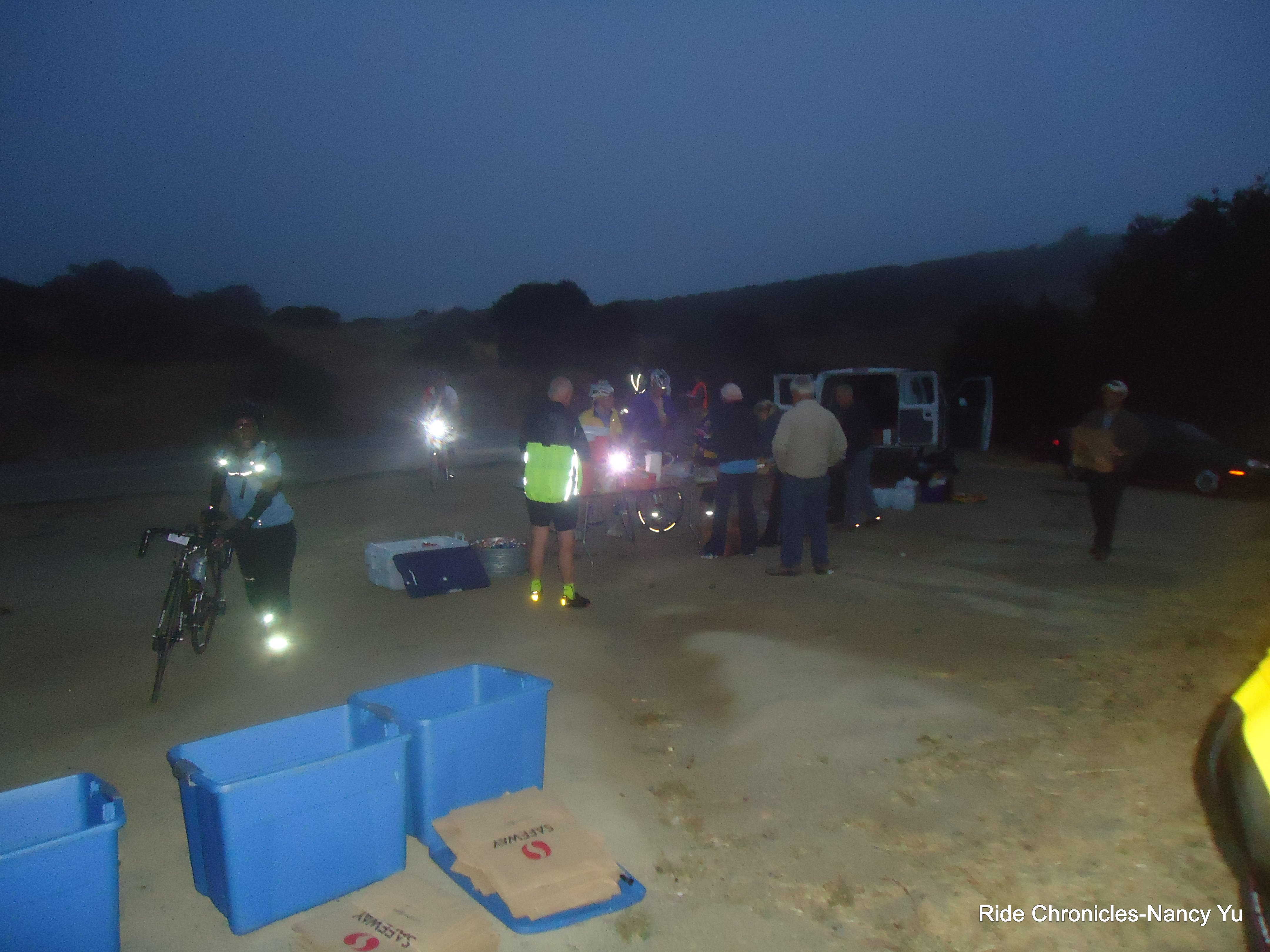 We arrive at the Vallecito Elementary School at 3 AM. Check-in/registration opens at 3:30 AM. That gives us ample time to get ready and roll out at 4 PM. As we pull into the driveway, the janitor of the school was just starting to open up