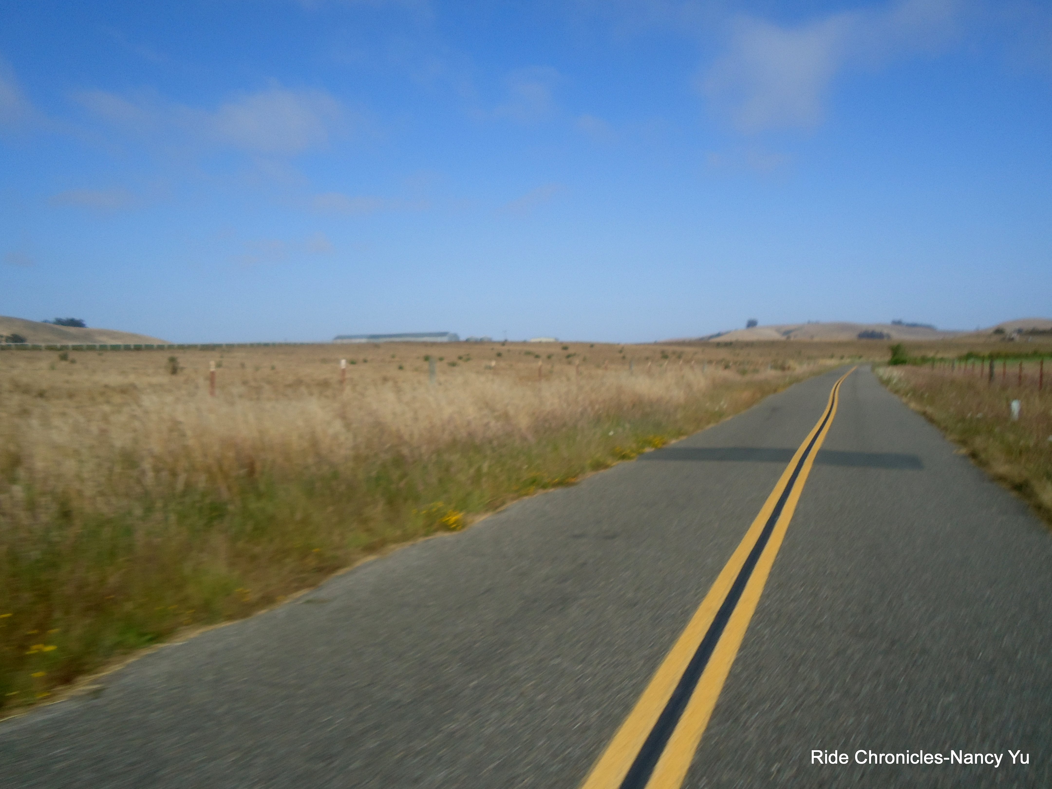 It’s a fast descent heading towards the Cheese Factory. The sun is shining, yeah! We continue on Pt Reyes-Petaluma Rd all the way into Petaluma. The pavement is nice and smooth. There are a few climbs but it’s nothing too steep. We descend Red Hill and make our way to McNear Park.