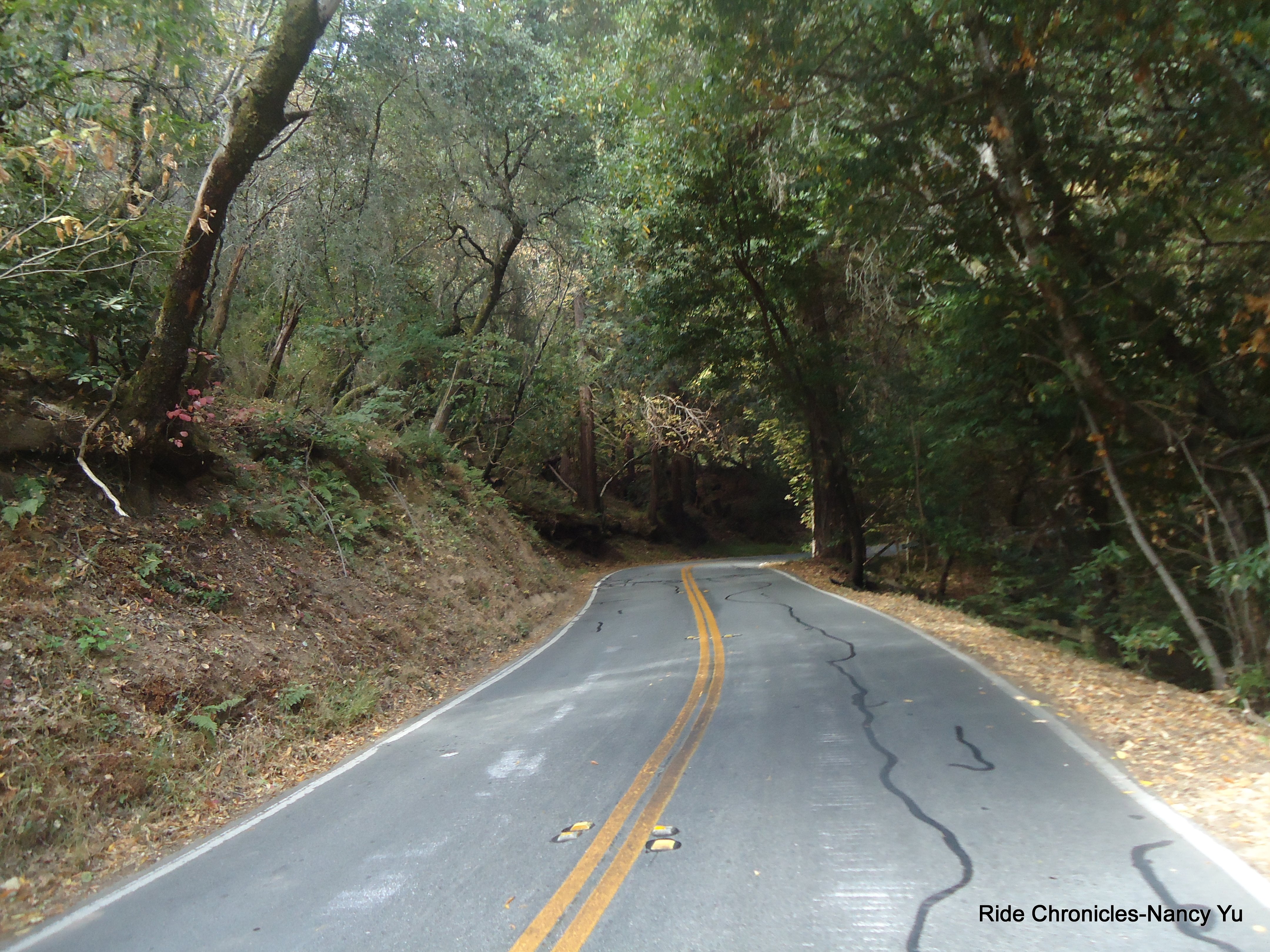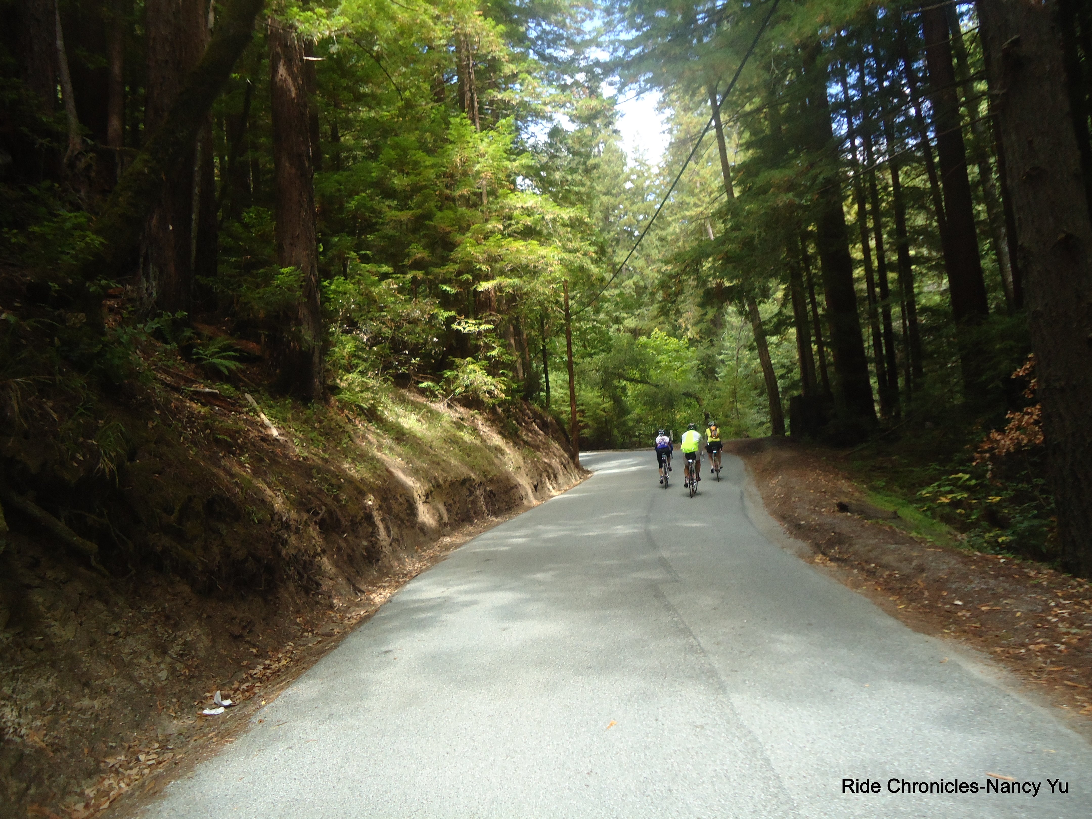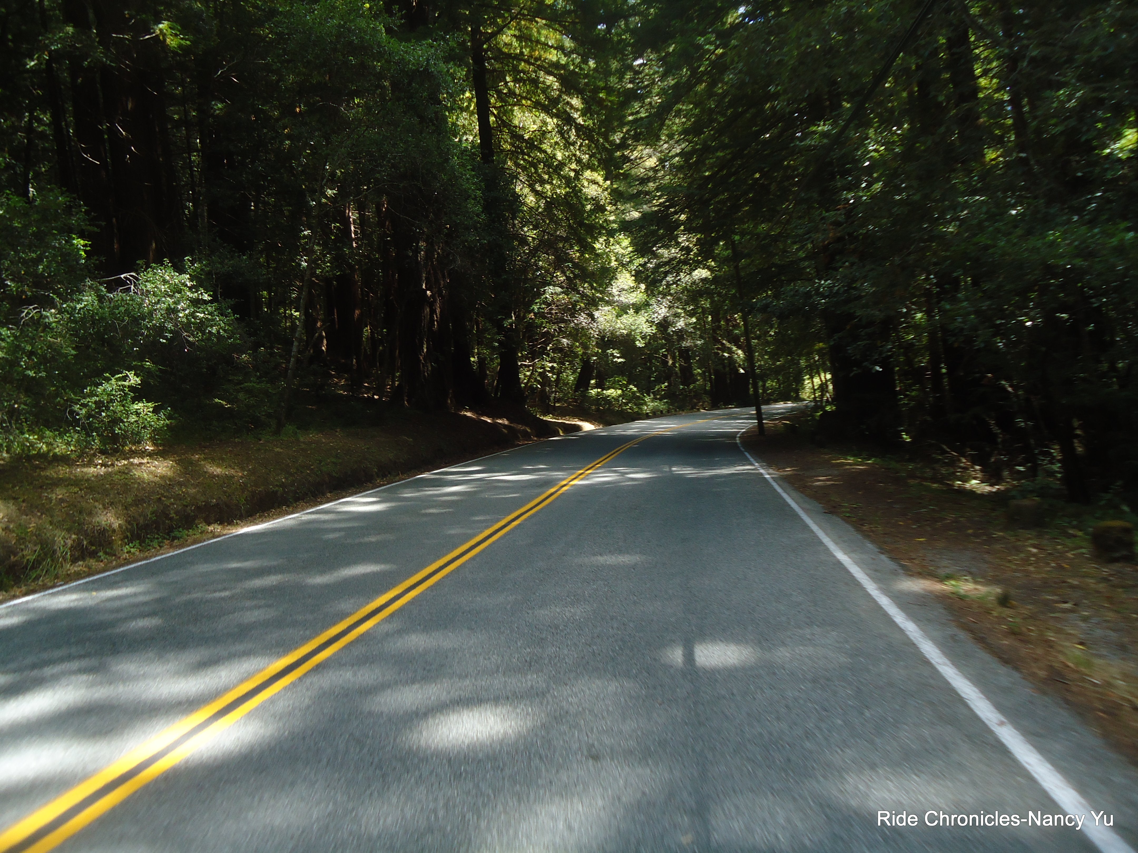 After lunch, we head east on Pescadero Creek Rd for the next 11 miles. It starts off flat and slowly increases to 3-5%. Once you pass Camp Loma Mar, you hit gradients of 8-9% for a few sections. There’s a nice decrease to 4-5% here and there. We pass the Memorial County Park and I see all the campers, their tents and can smell the campfires on site. Temp 67. The road does get steeper after you pass the YMCA on Jones Gulch Rd. As you near the top, there are sections that increase to 10-11%. After that, it’s a glorious downhill underneath the redwoods to Alpine Rd.