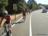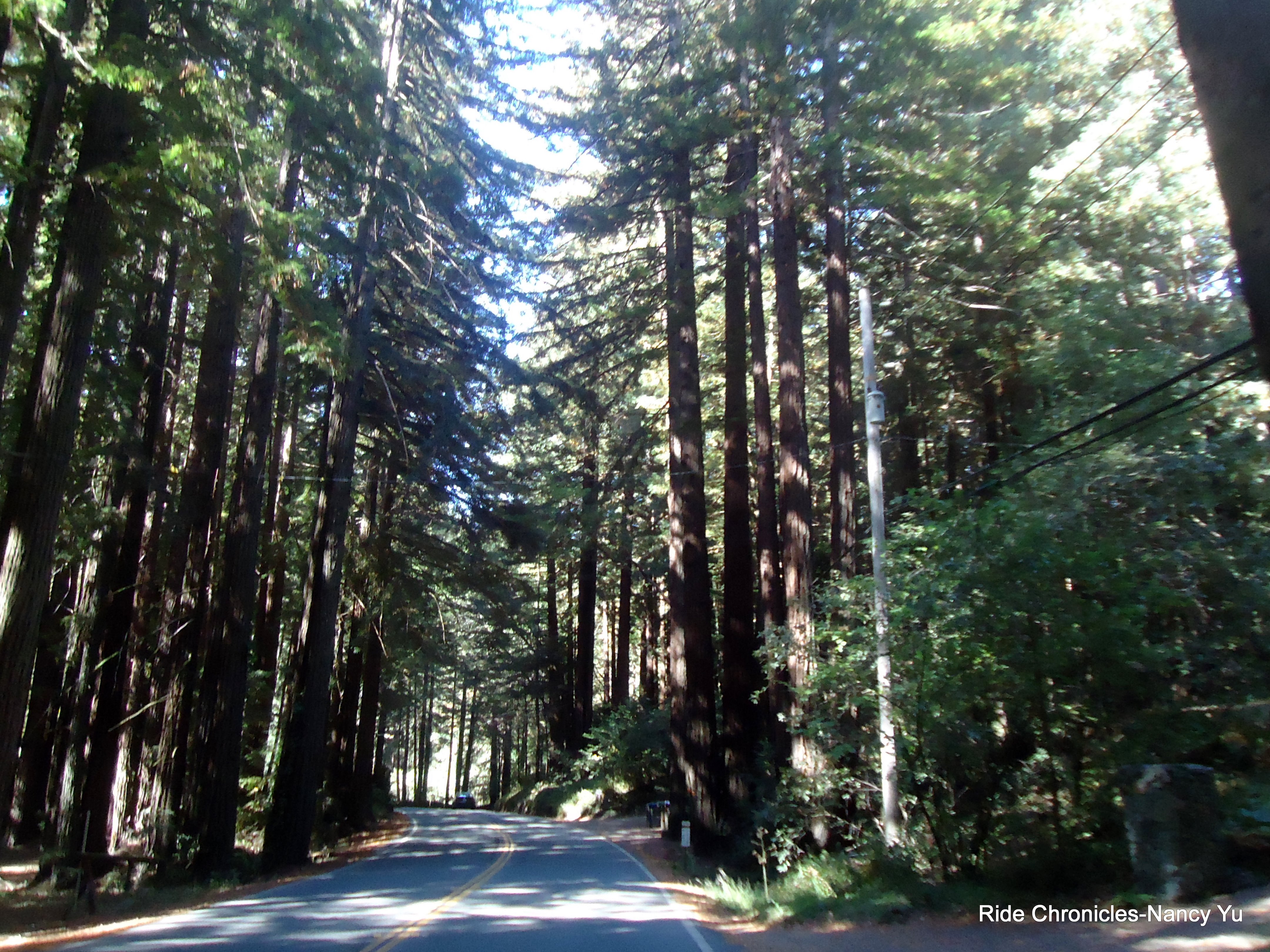 The ride leaders for the 44 mile route are Mike Cox, Michael Edwards and I..We head west on Lucas Valley Rd for the first climb up to Big Rock. The descent takes us through groves of beautiful redwoods.