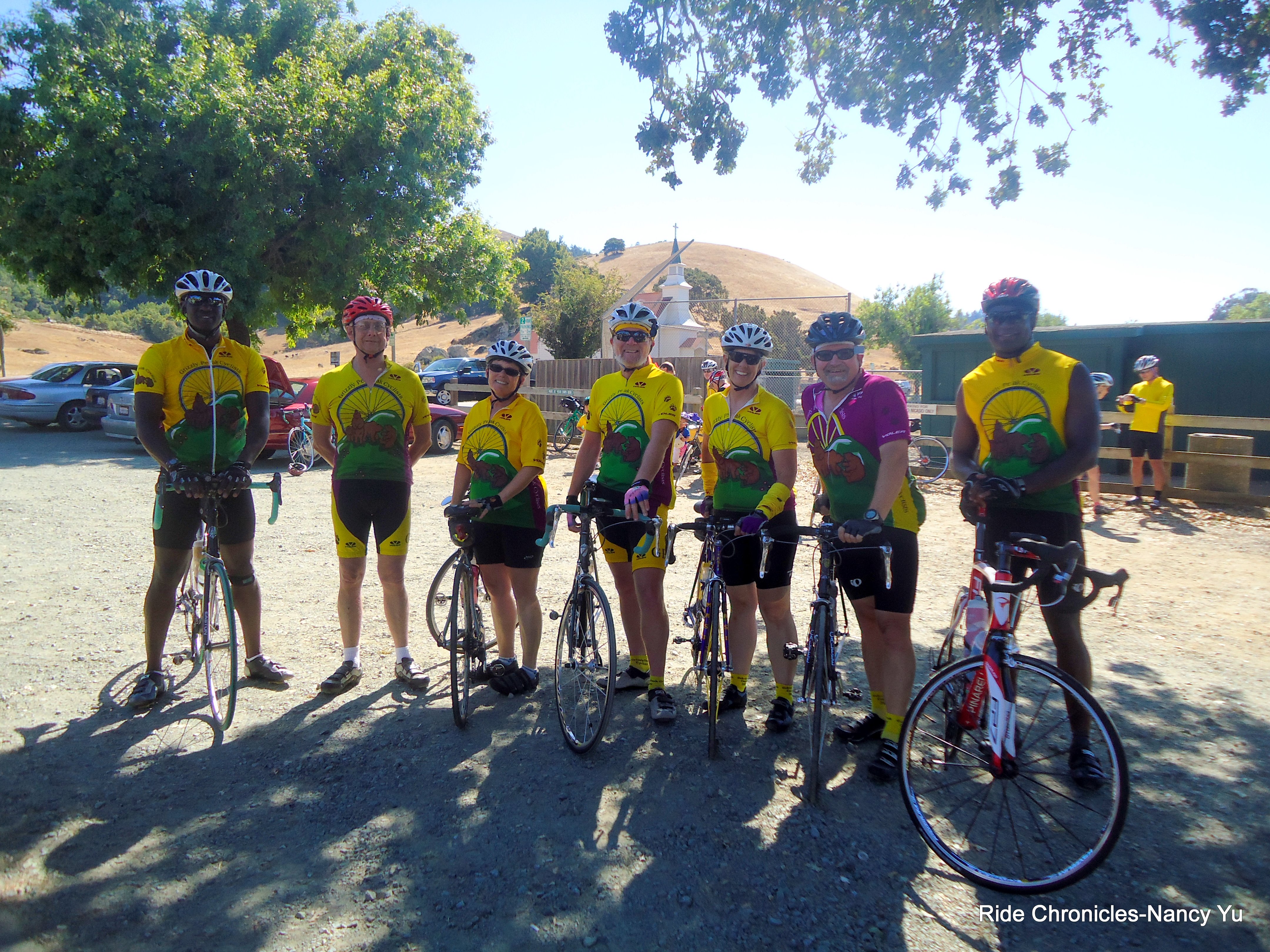 Today’s ride is the finale to the club’s Novice Ride Series that takes place every summer. It is a series of 6 rides that is designed to introduce new bicyclists to the fun of getting outdoors and riding in a group environment. The terrain steadily progresses every week; it goes from flat to some gentle hills and then to today’s most challenging climb up Lucas Valley Rd. The mileage also increases weekly from 20 to 44 miles.