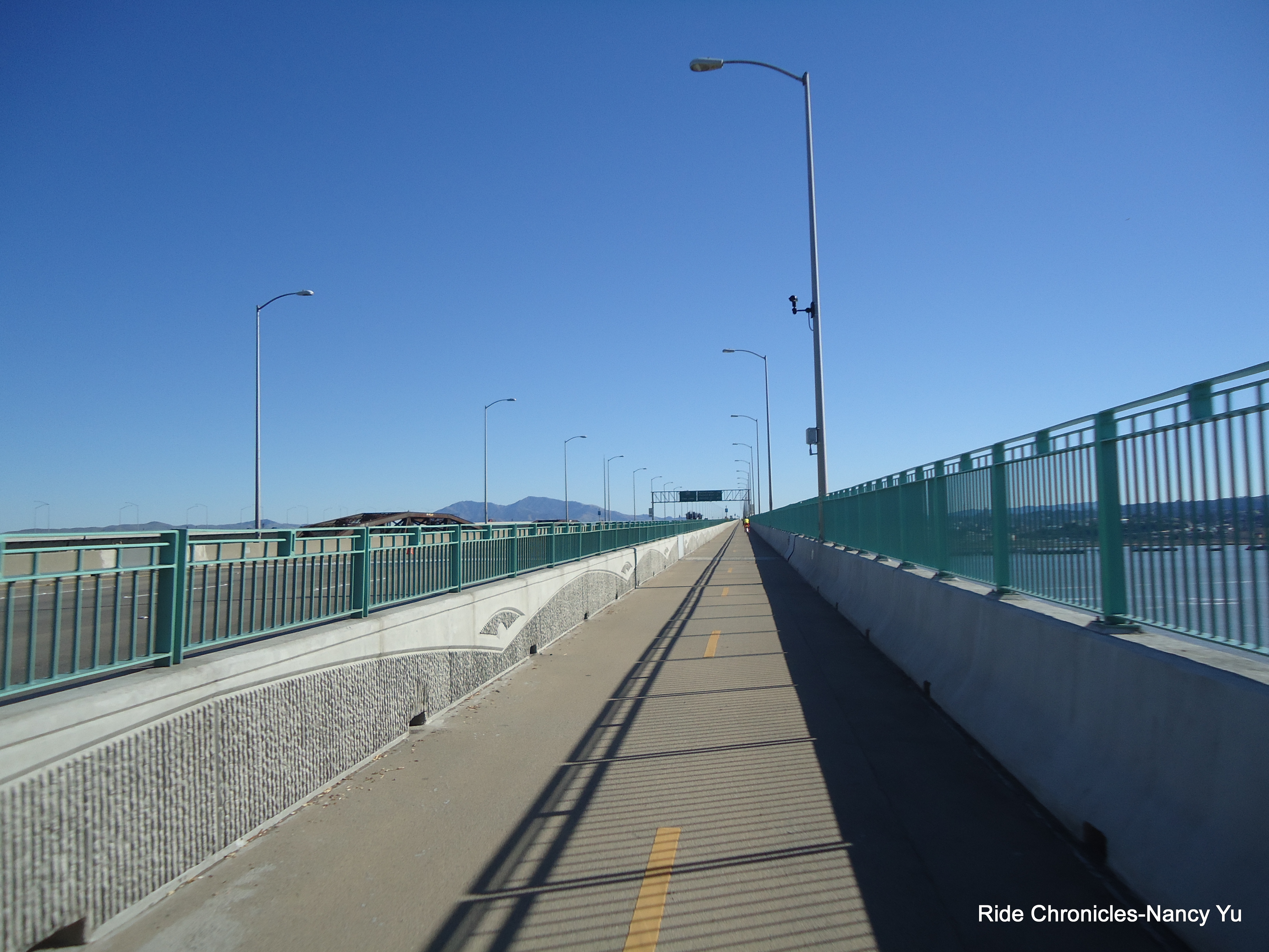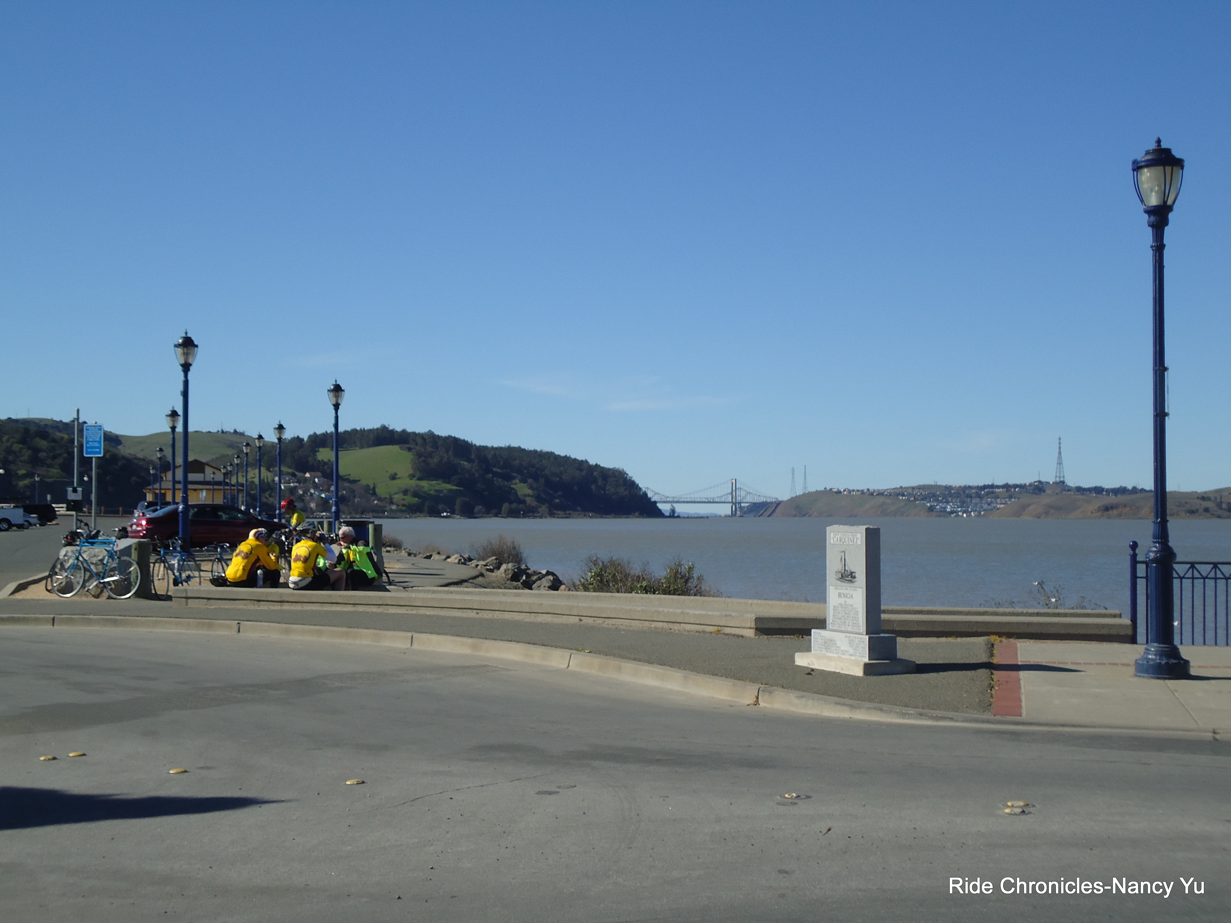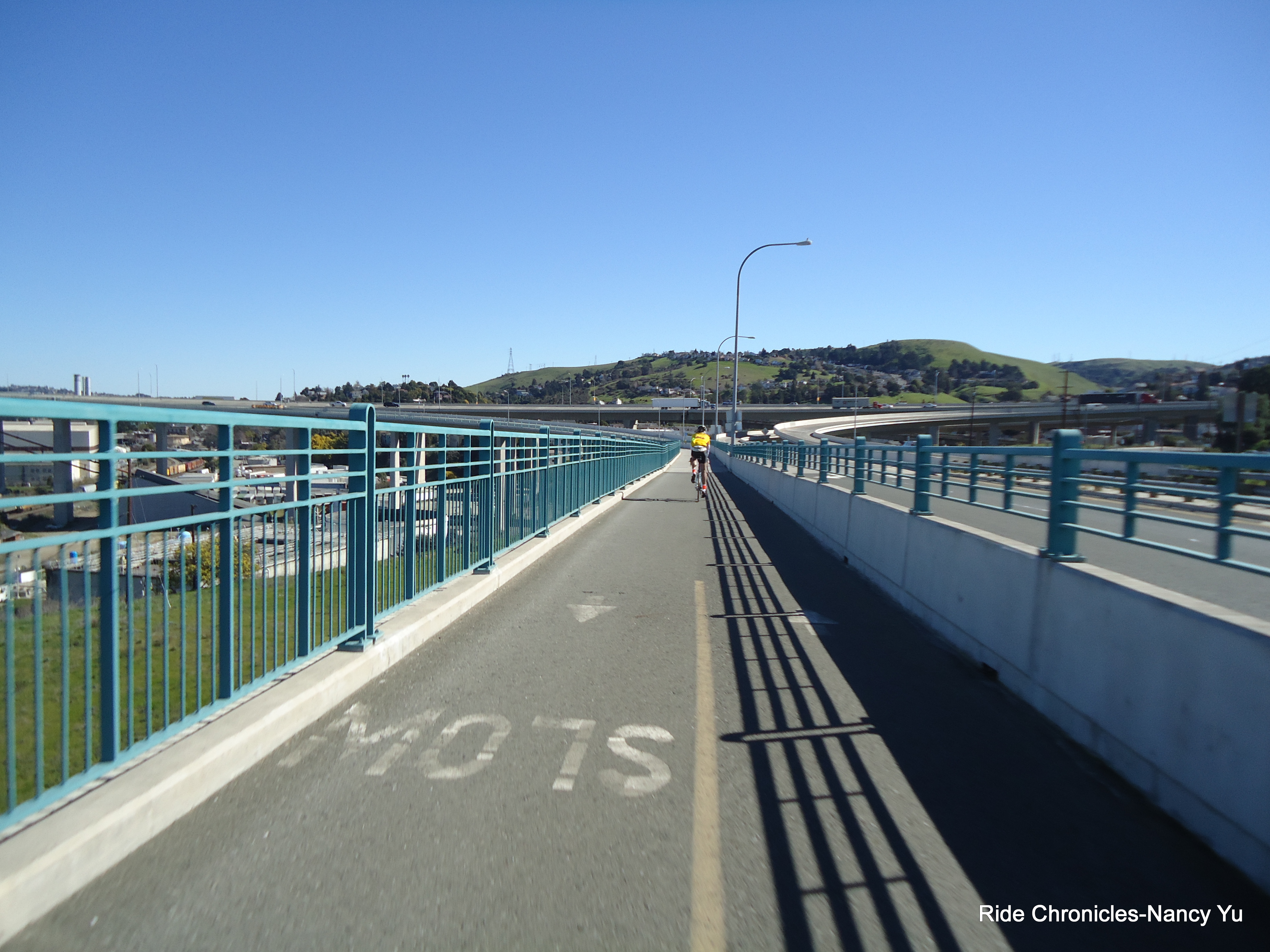 We continue on San Pablo Ave and hop in the bike path to cross the Zampa Bridge. There is a regroup at the lookout area.