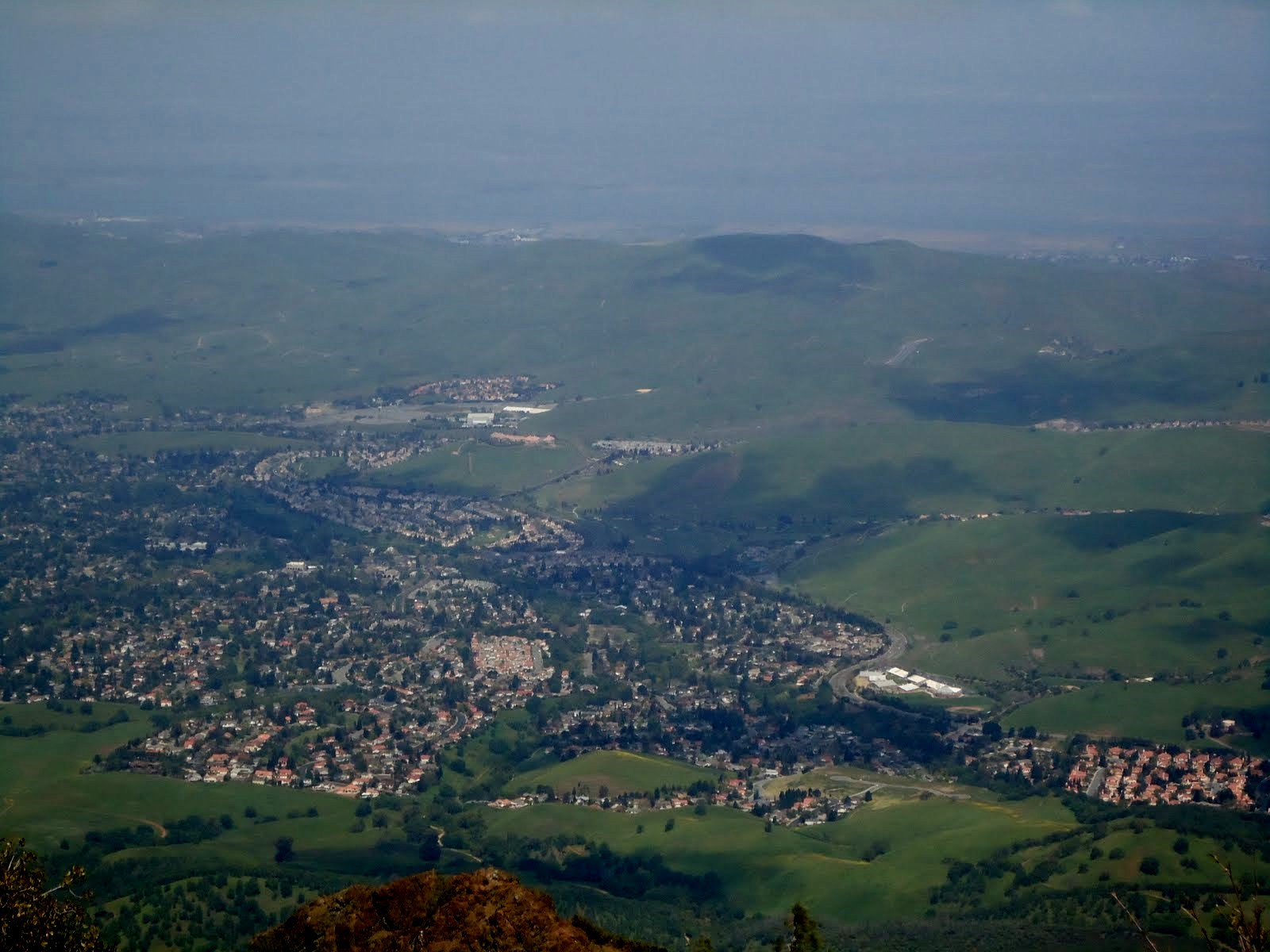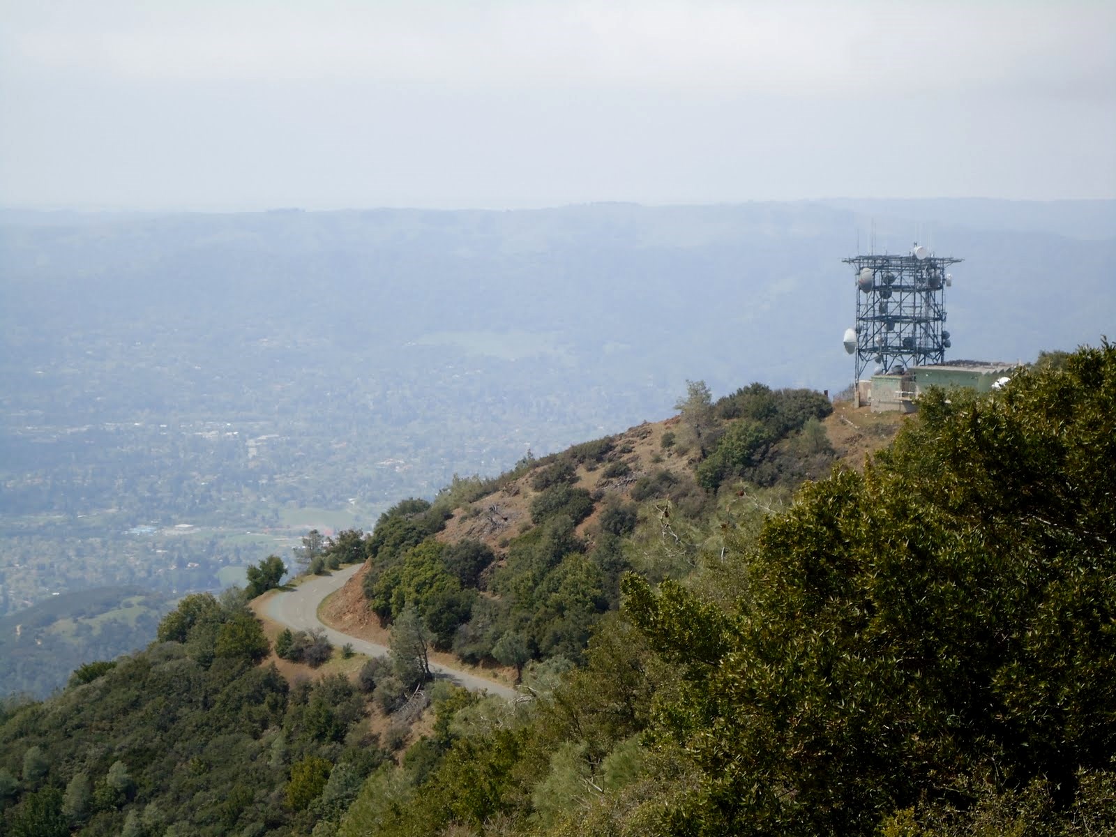 Views from the summit under hazy skies.