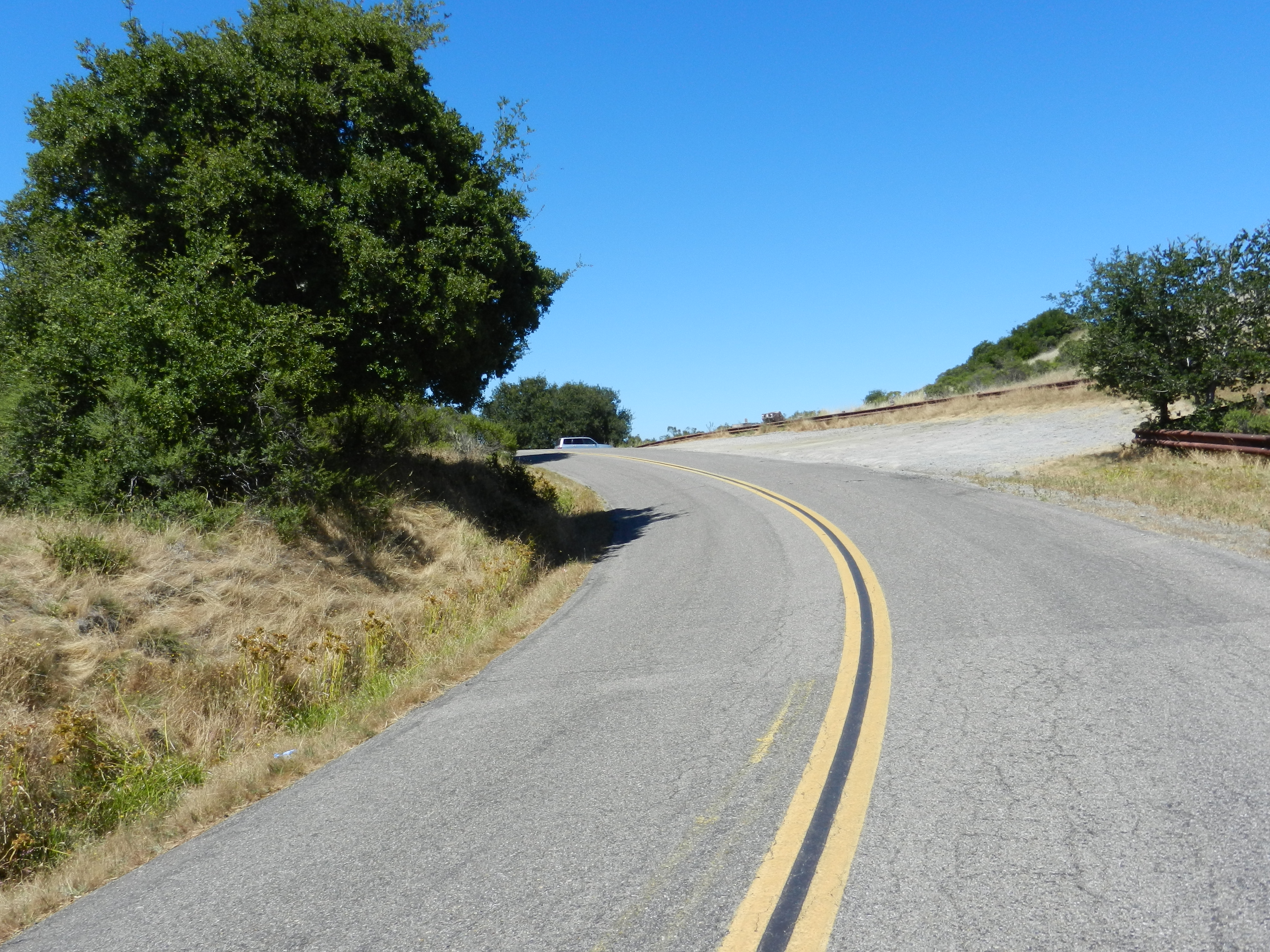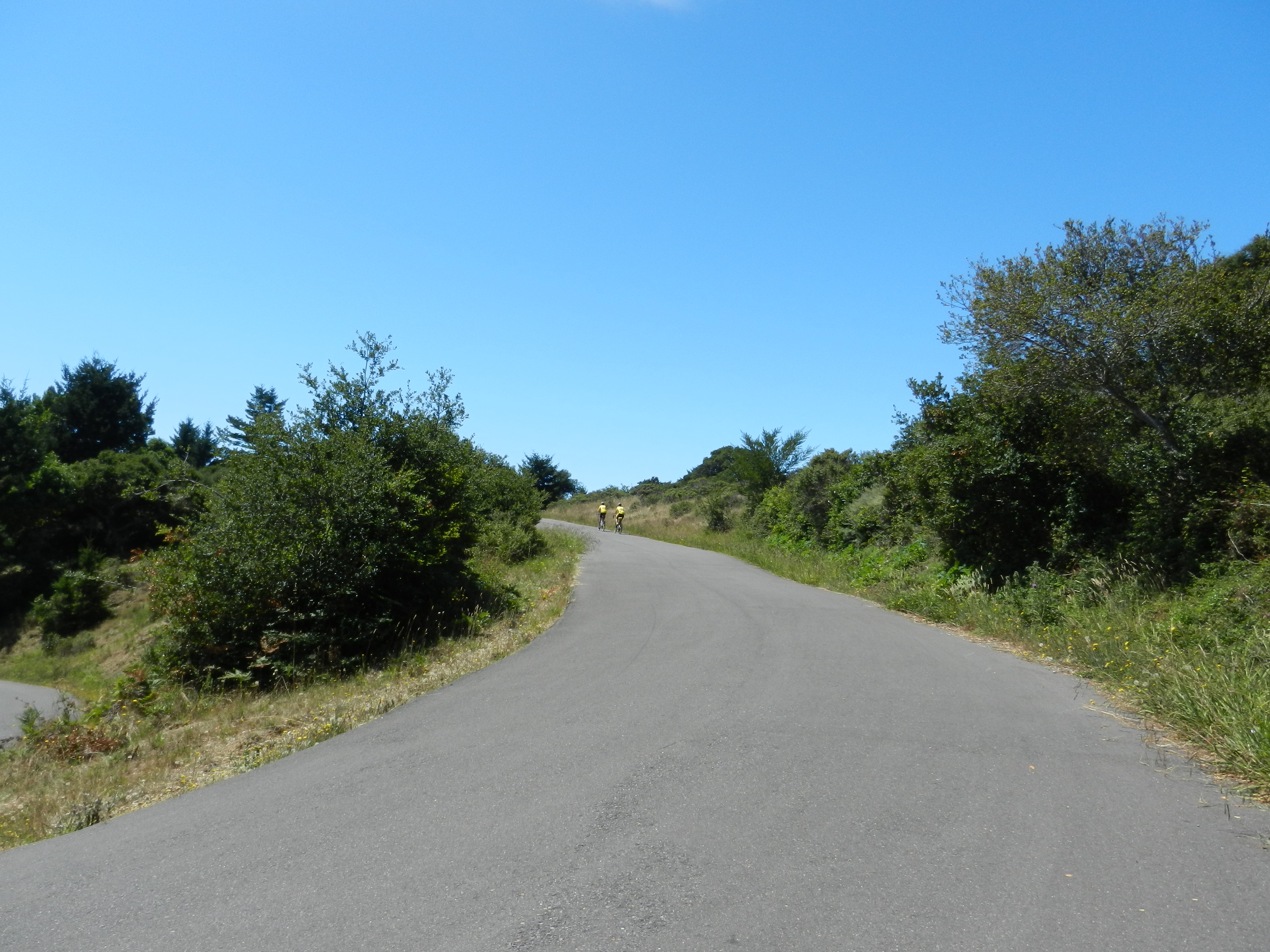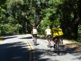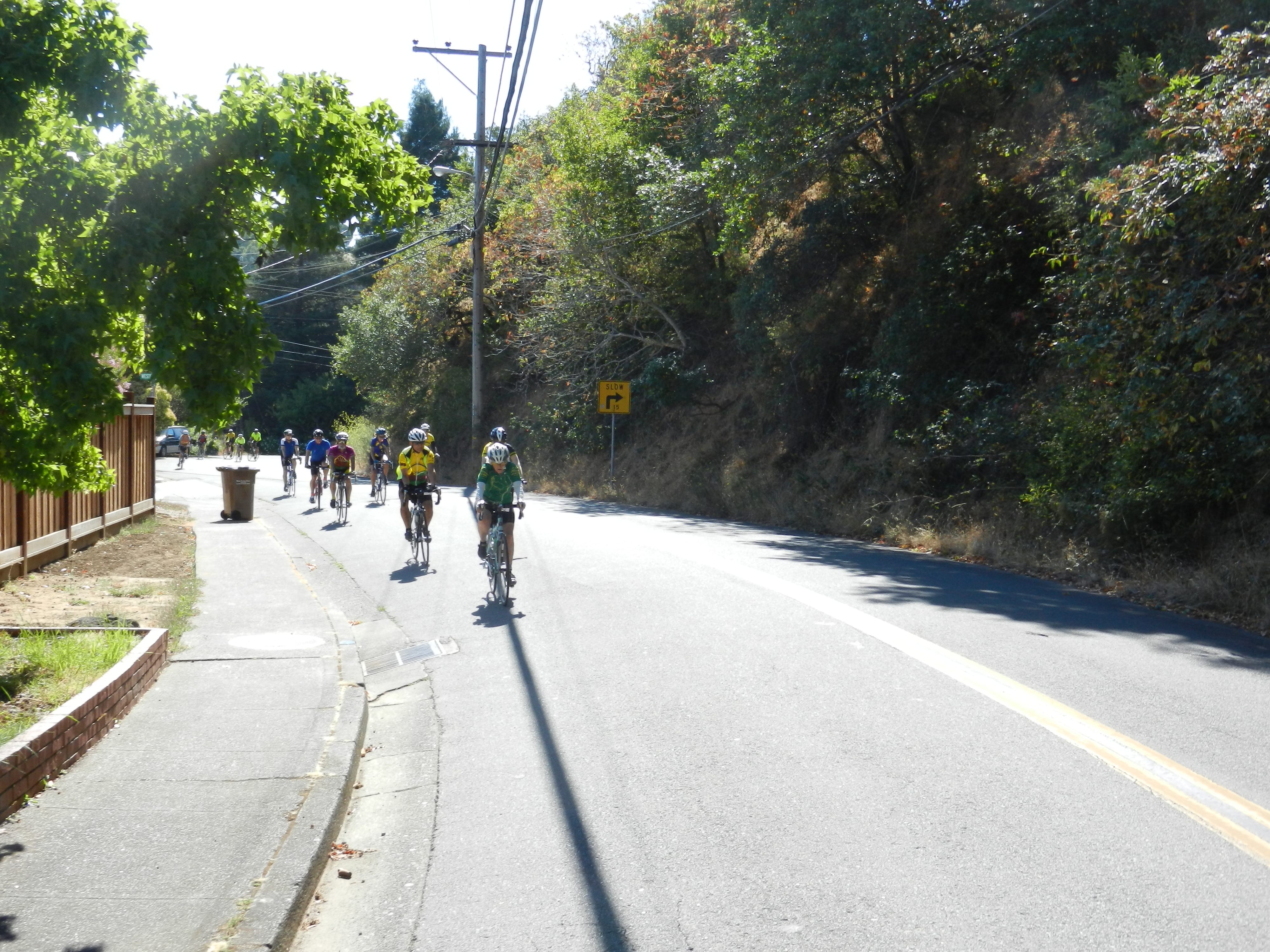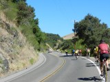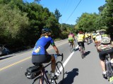 We turn on Bolinas Fairfax Rd and cross Hwy 1 to continue on. Watch out for the cattle guard! The sun is back up on this side and it’s warm again-yeah! The 4.4 miles climb starts off gently and increases after the first left hairpin turn. The gradient here maxes out at 12%. The remainder of the climb has gradient ranges of 7-9% all the way up to Ridgecrest Blvd.
