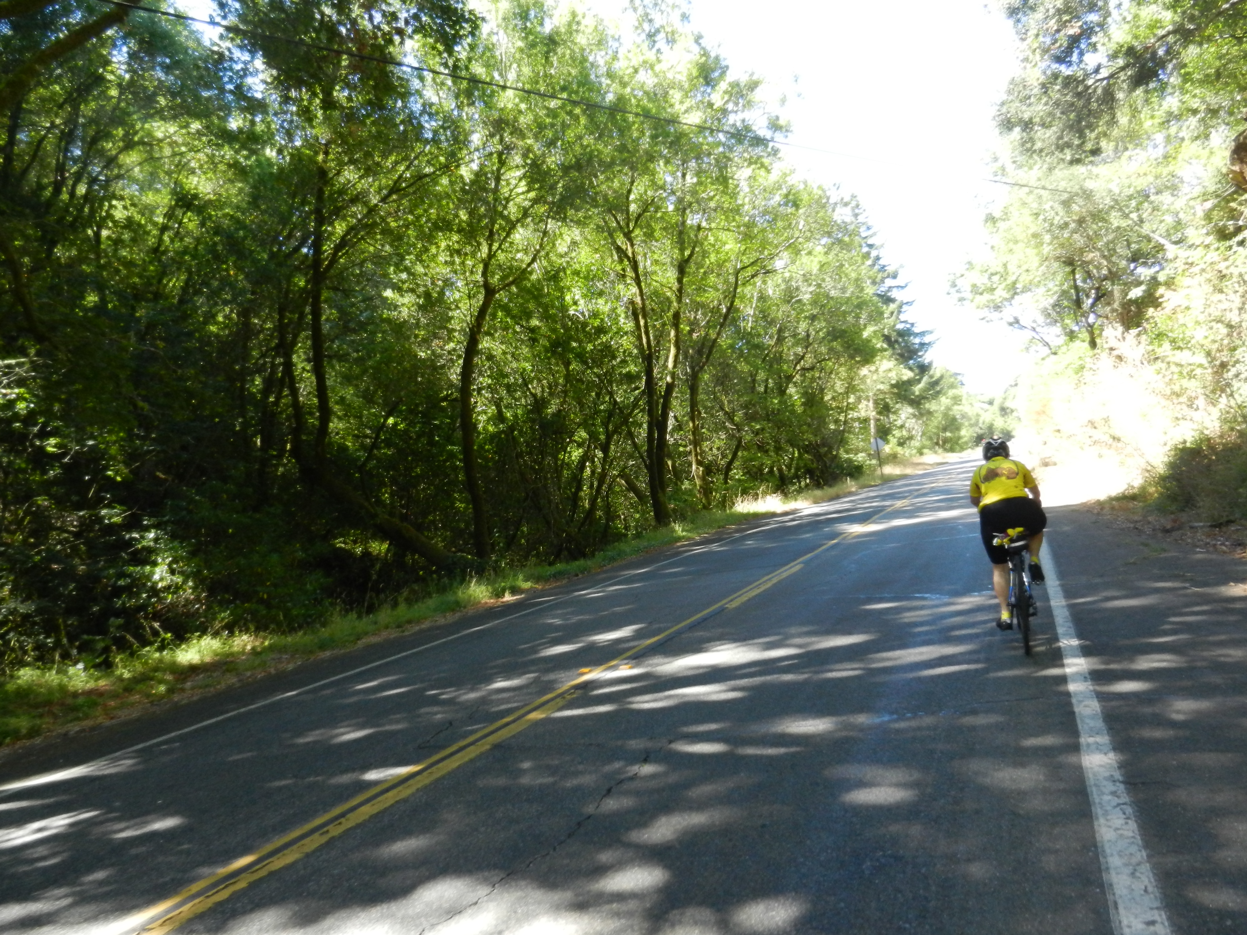 The turn on Horseshoe Rd is easy to miss; it’s after you pass Dogtown on the descent. Look for the yellow intersection sign. Watch out for the potholes that are concealed within the shade and shadows of the eucalyptus trees.