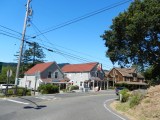 The end of the bike path takes us back on Sir Francis Drake Blvd. We go under and over the main road for the climb up Olema Hill. It’s less than a mile with an average grade of 5.2%; as you near the top, the gradient is a steady 7-8%. There is a very short section of road that has been washed out and becomes a single lane with stop signs on both ends; proceed with caution! Impatient drivers will still try to pass you here. The descent brings us into the town of Olema.