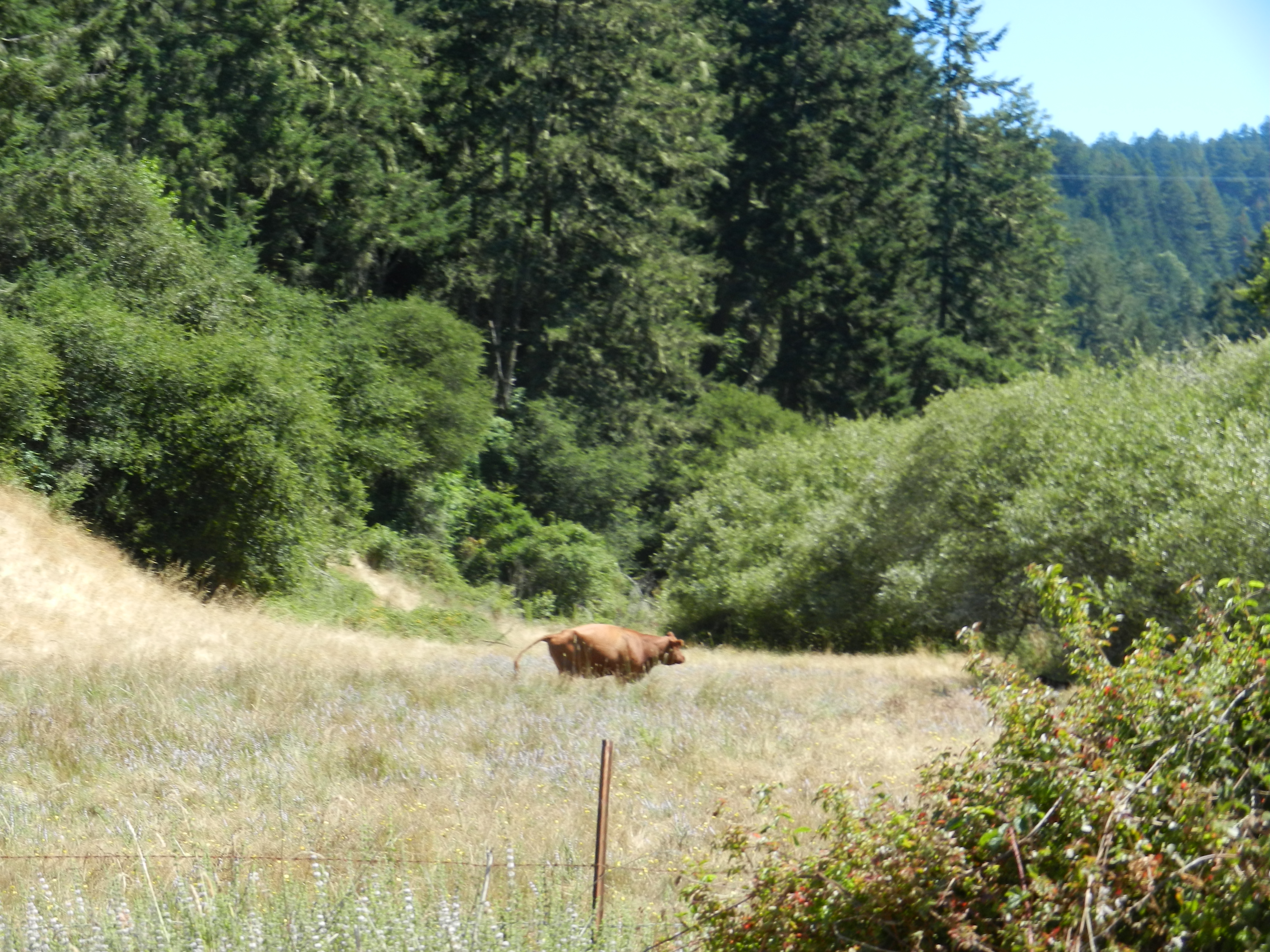 We continue on Hwy 1 heading south for the next 8.8 miles on rolling terrain. The climbs along the way are not too steep. Take the time to look around; we pass the Olema Cemetary, several horse ranches and stables, the small town of Five Brooks and the trailhead that is part of the Pt Reyes National Seashore. Wyatt tells me that there is a “swimming hole” up in the hills; Hagmaier Pond. It’s actually a nude beach.