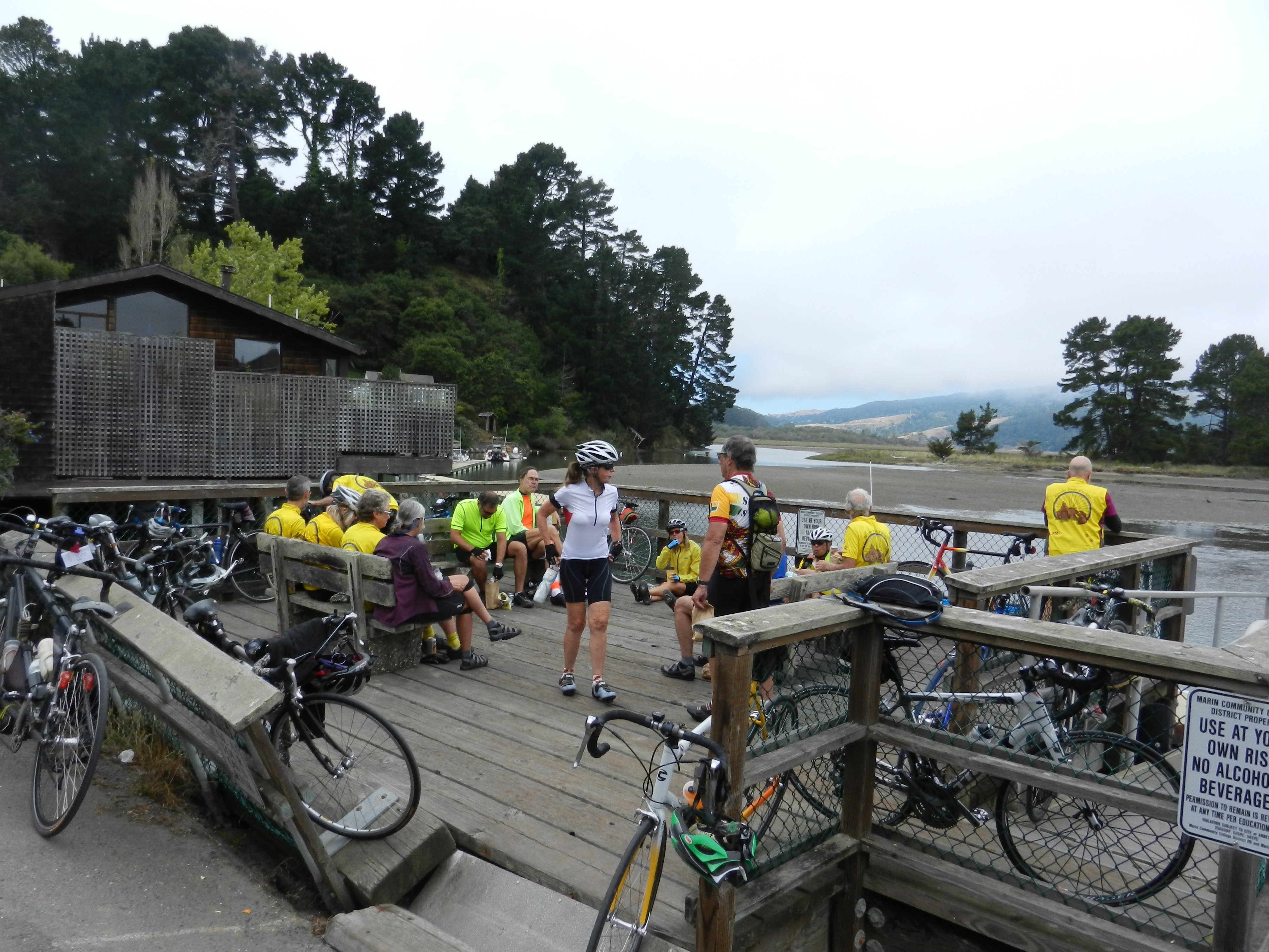 Horseshoe Rd brings us to Olema Bolinas Rd and into the town of Bolinas. The sunny blue skies are gone and you can feel the dramatic cool temps as we near the Bolinas Lagoon. The lunch stop is at the wharf/pier; before reaching the beach area. Sandwiches, drinks and other food snacks can be purchased at the Bolinas Market. Water and restrooms are available at the Community Center.