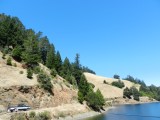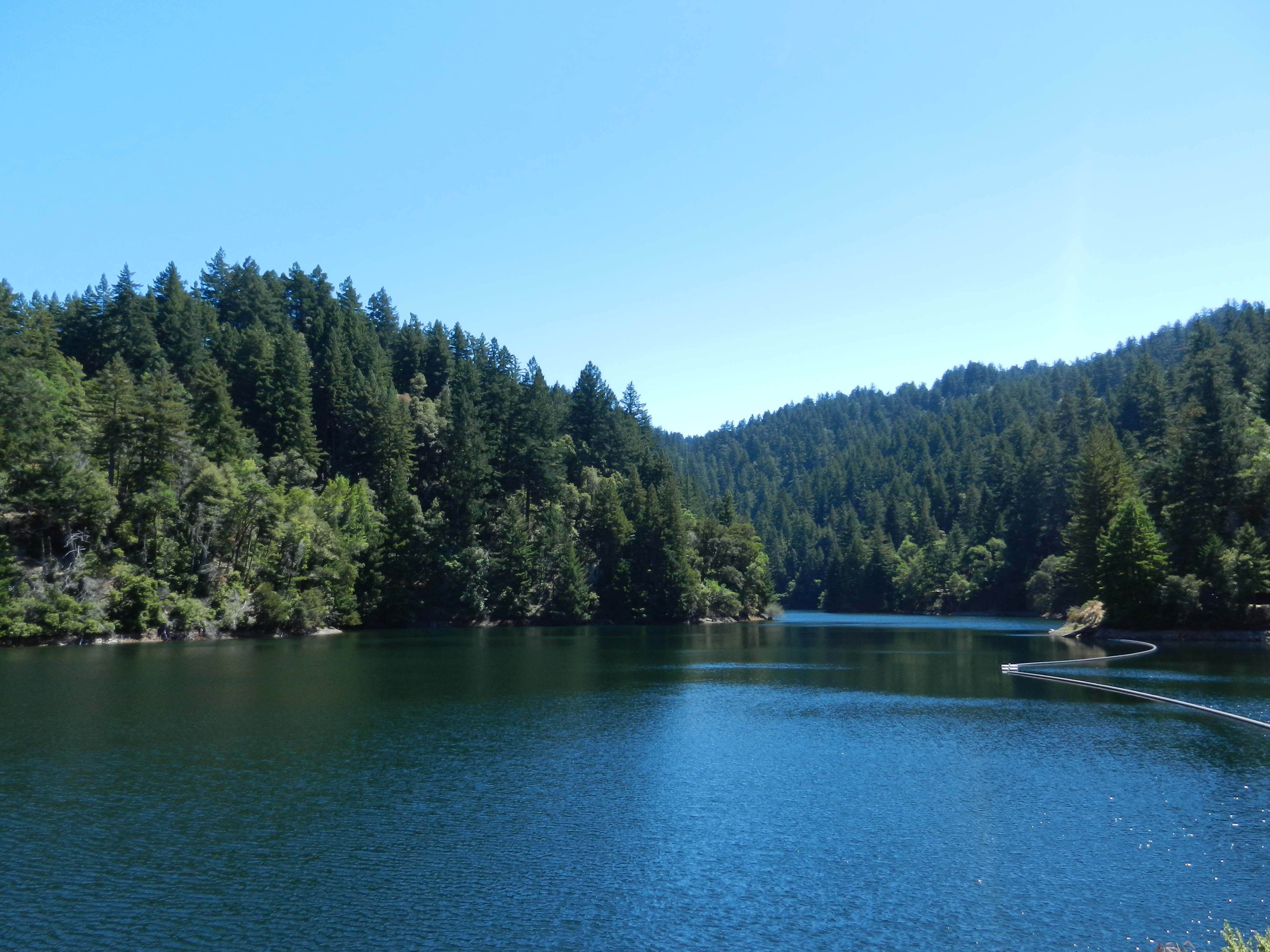 We reach the top at Ridgecrest and it’s absolutely amazing to come up beneath the towering redwoods! The descent down Bolinas Fairfax Rd takes us to Alpine Lake/Dam. The road has been recently patched so it’s a much nicer descent than before. It’s gorgeous at the lake too; the color of the water is a brilliant shade of blue!