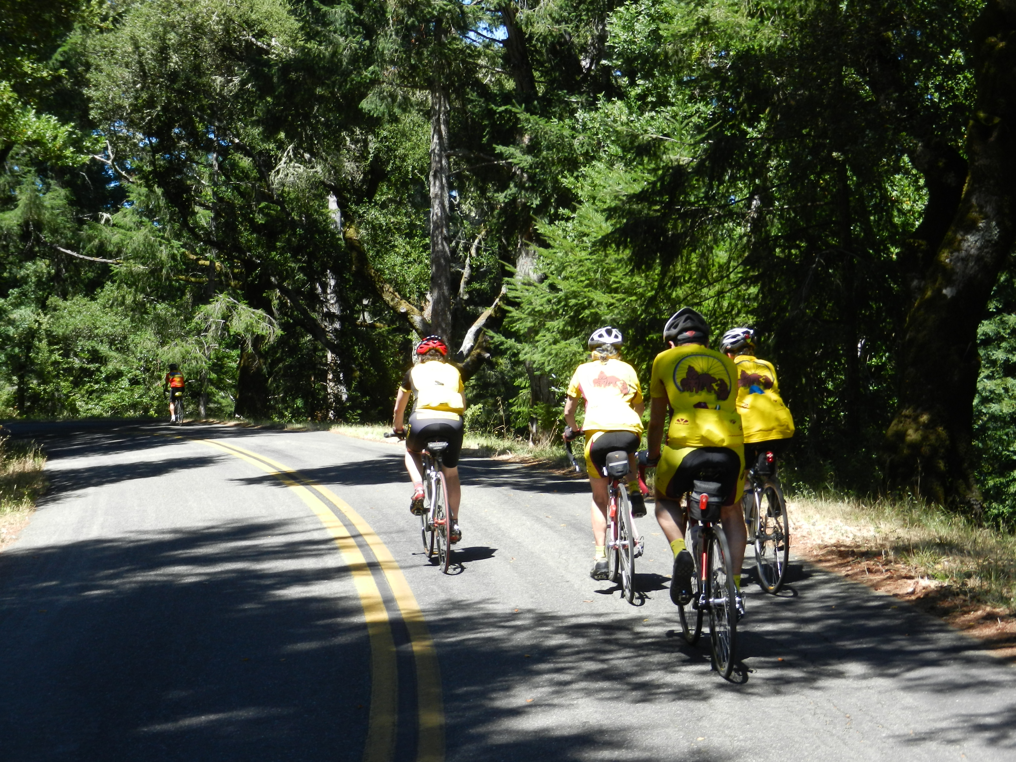 We continue on Sir Francis Drake Blvd and pass thru the small towns of Forest Knolls and Lagunitas. The road condition heading towards the park is horrendous! The bike path that takes you off Sir Francis Drake is closed for construction. We have no option but to stay on the main road; the summer season brings in a lot more traffic through this area. Other than the bad pavement along this stretch of road, the scenery is gorgeous; we’re riding through a redwood forest.