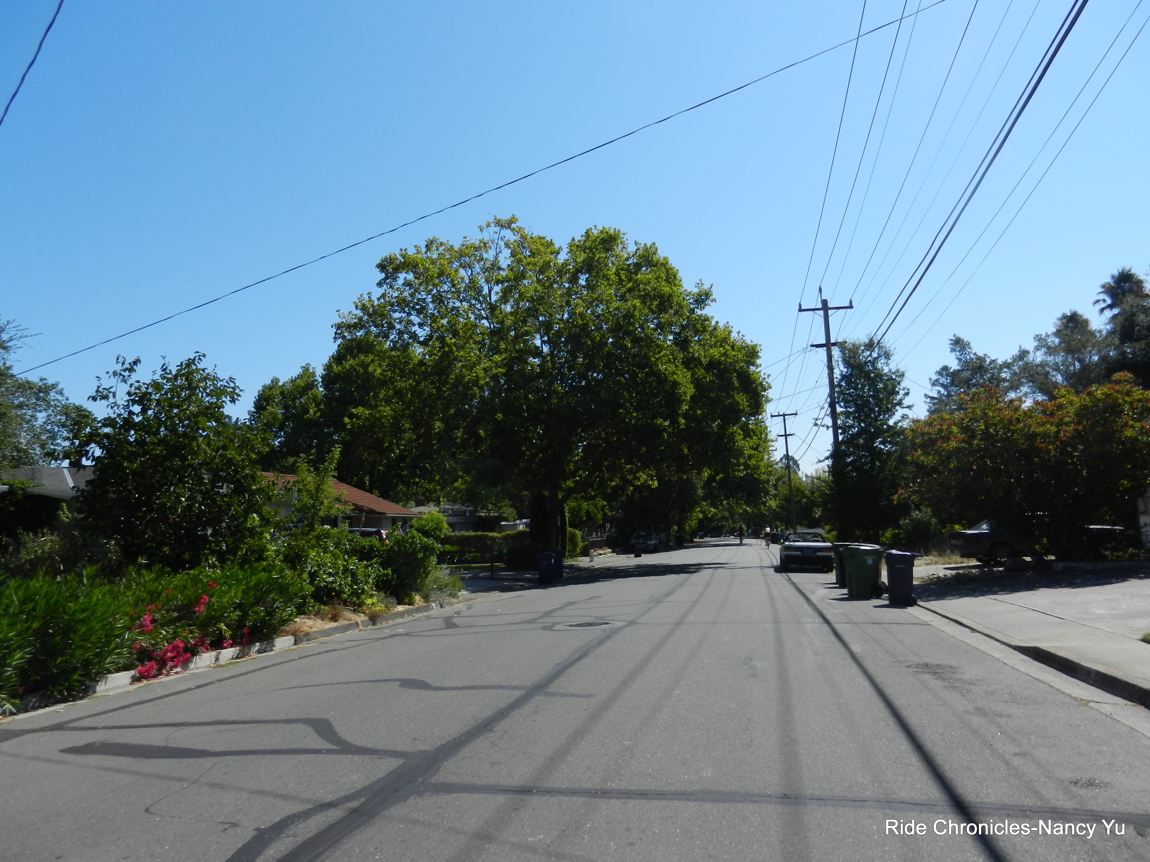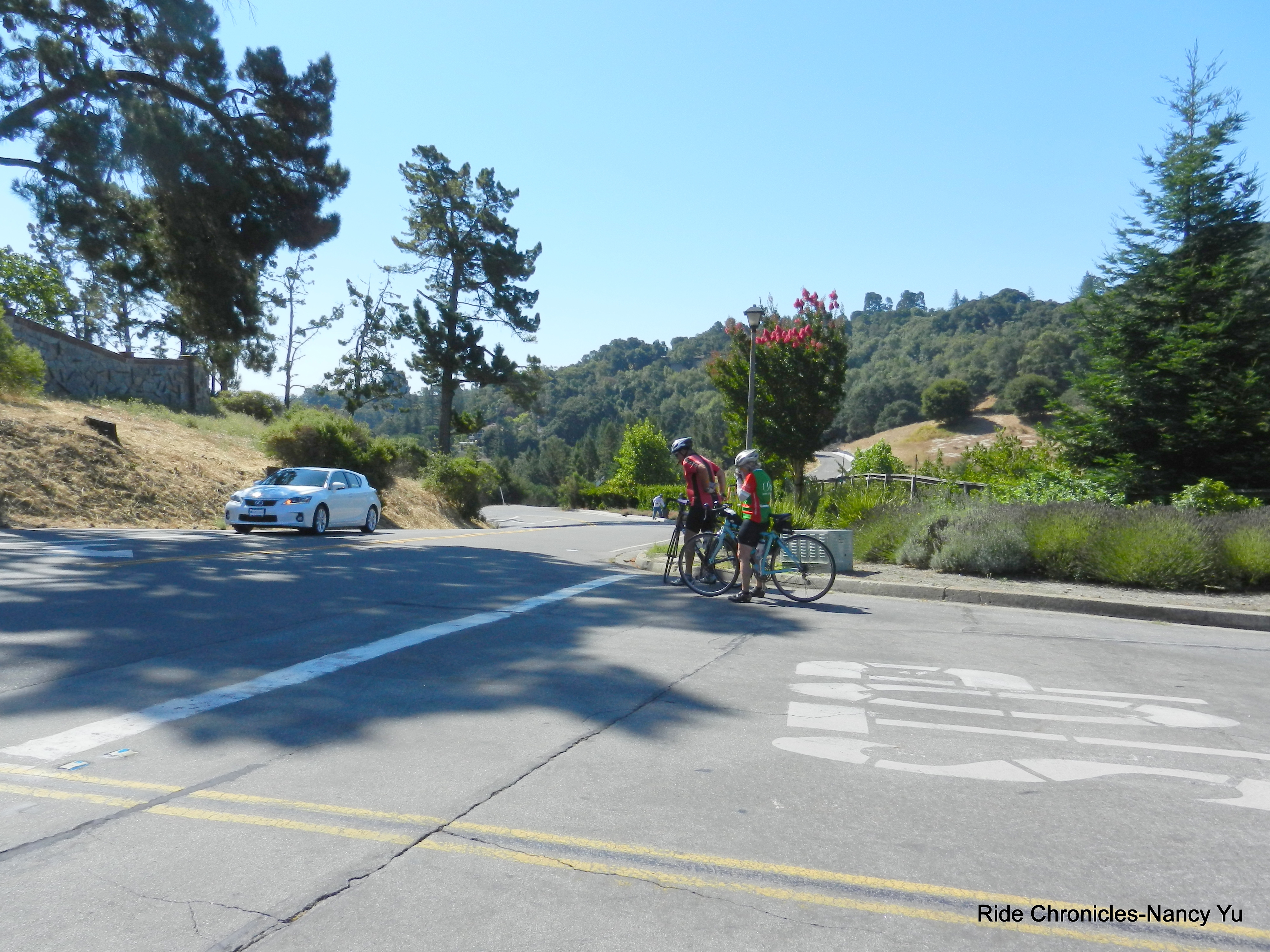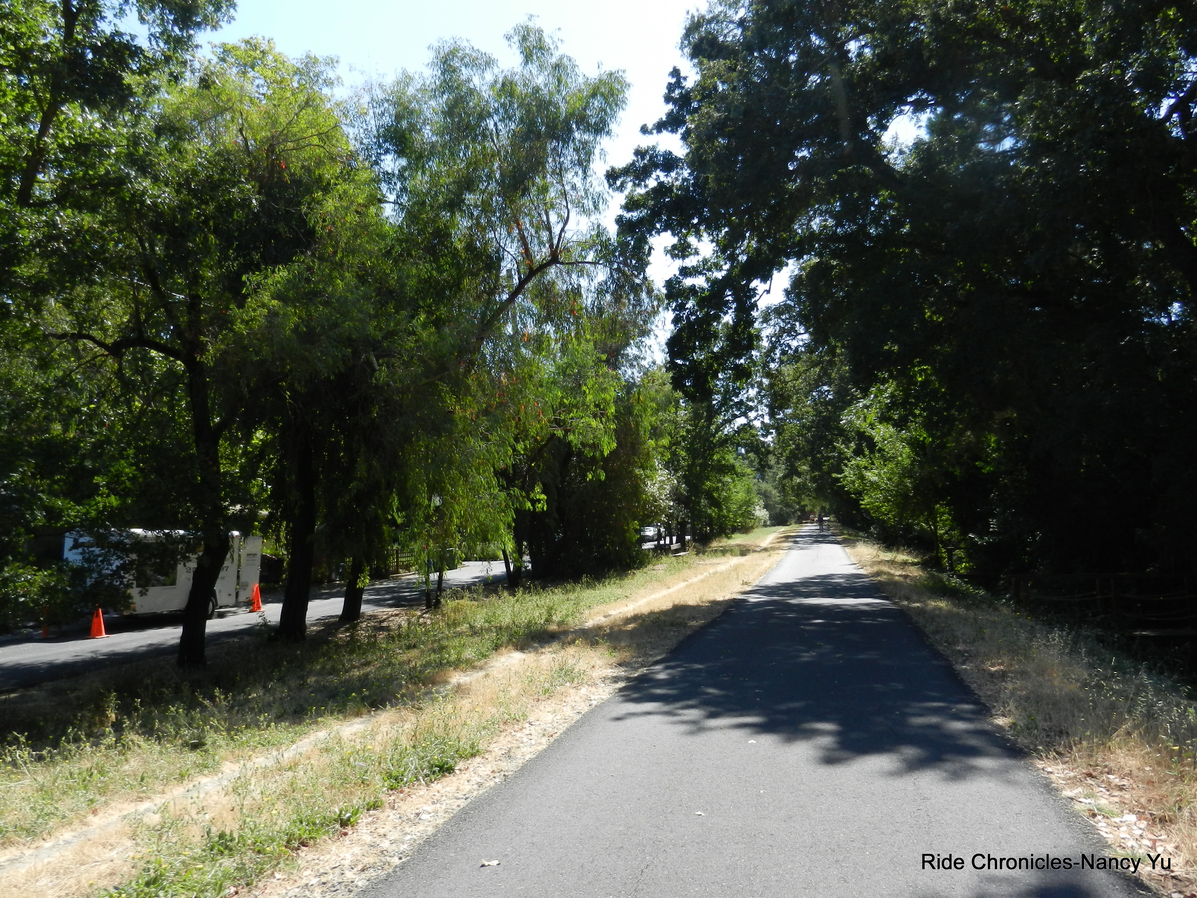 We reverse our way on San Ramon Valley Rd and head back to Danville. We stay on Danville Blvd to Castle Hill and make our way around Lancaster, Lilac and Newell to Olympic Blvd. We hop back on the bike path and stop to refill water at the Leigh Creekside Park. Unfortunately their water fountain runneth dry-no water.