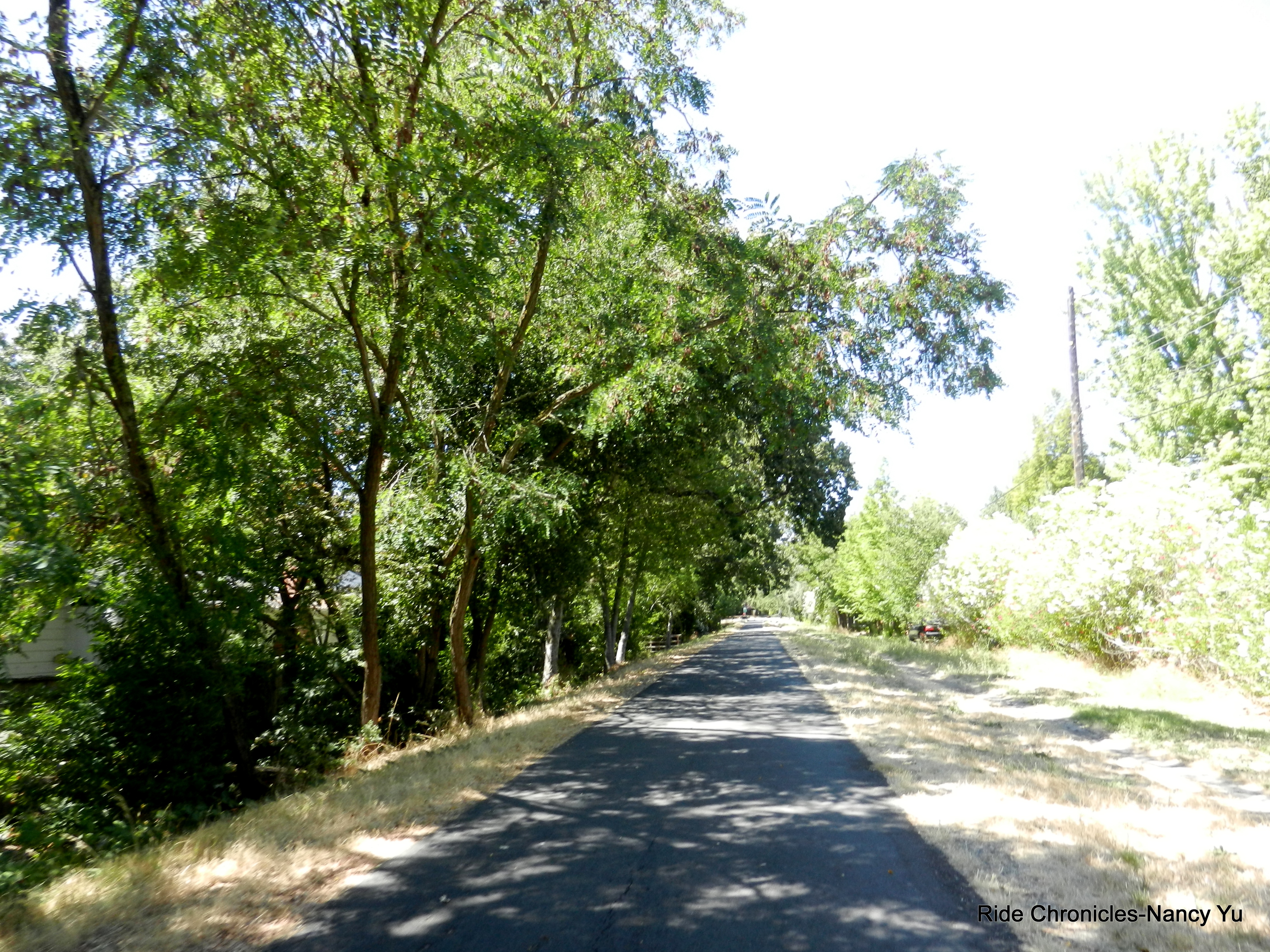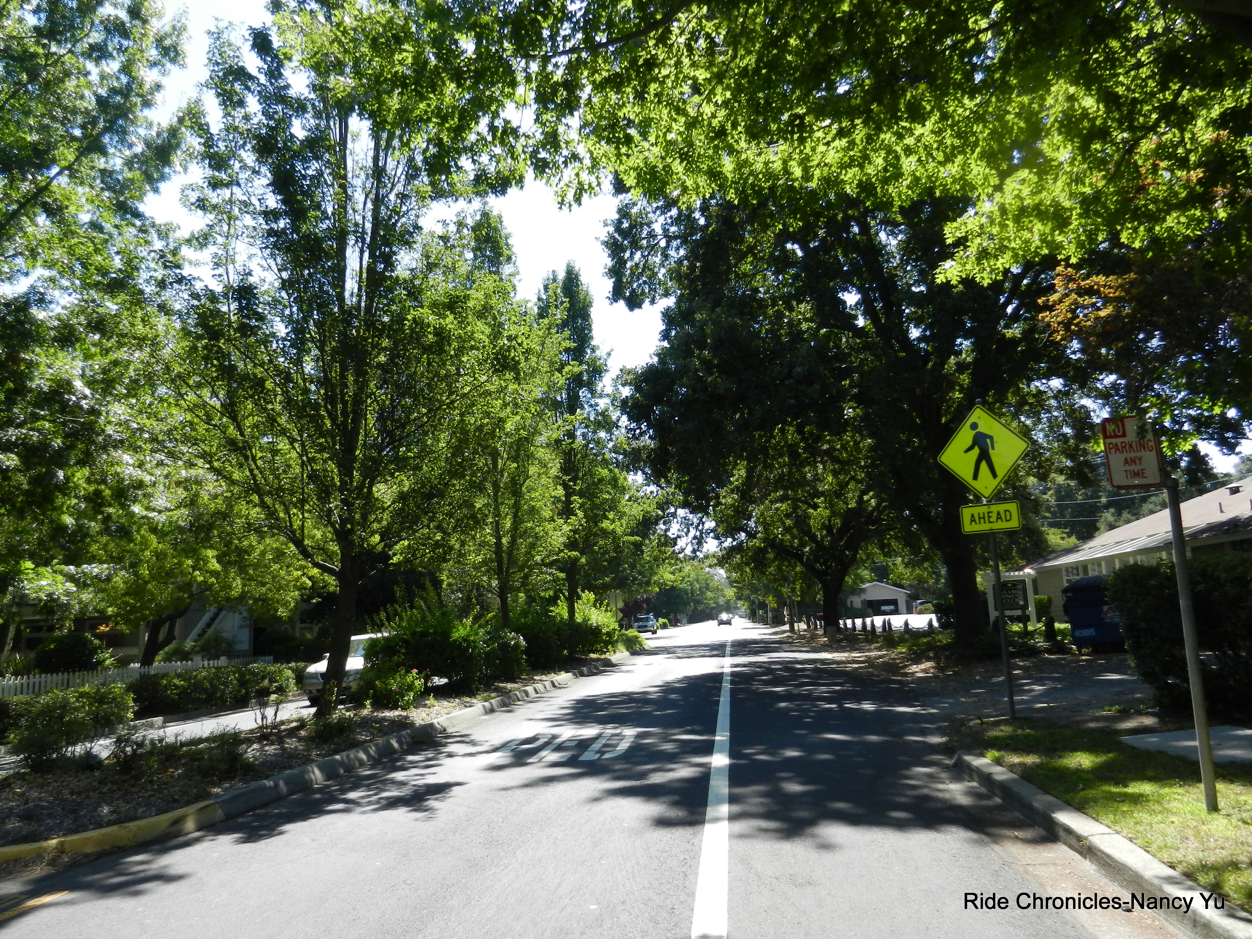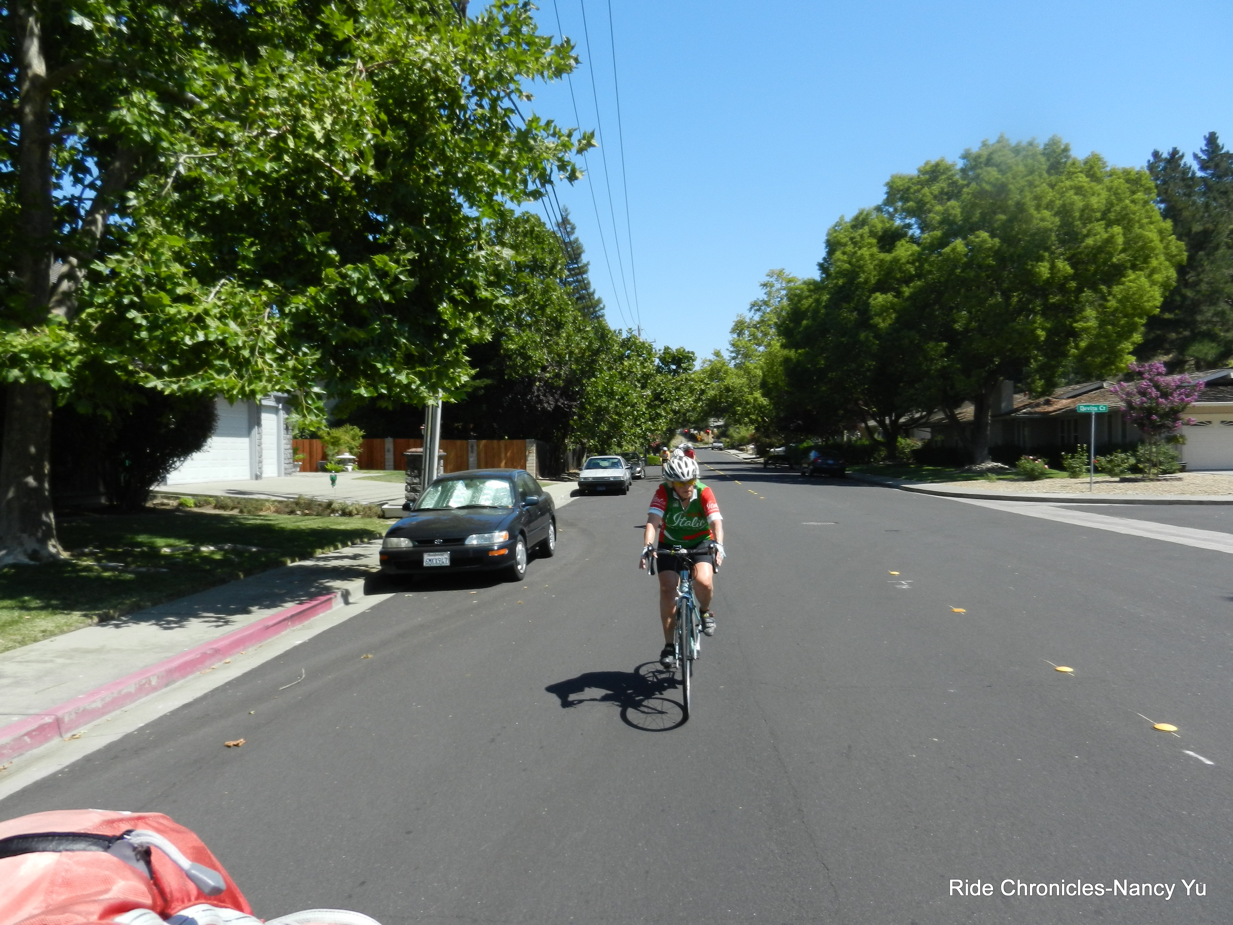 We reverse our way on San Ramon Valley Rd and head back to Danville. We stay on Danville Blvd to Castle Hill and make our way around Lancaster, Lilac and Newell to Olympic Blvd. We hop back on the bike path and stop to refill water at the Leigh Creekside Park. Unfortunately their water fountain runneth dry-no water.