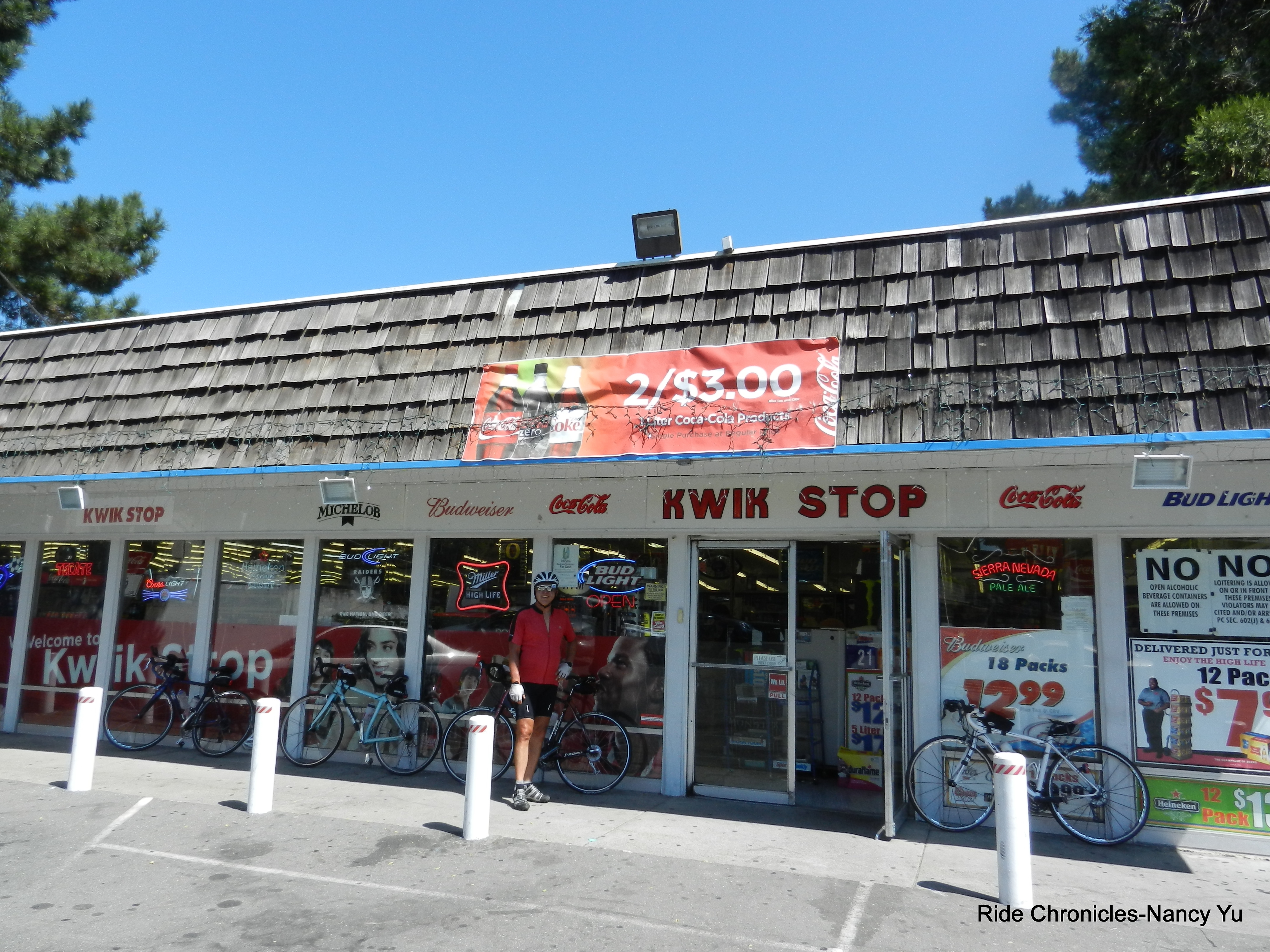 Instead, Eddie leads us to the Kwik Stop Market on 2nd St and Golden Gate Way. I never noticed it there before, but what a great place to stop! The clerk didn’t have a problem with us getting ice from the soda dispenser. Taking in a cold can of Coke really hit the spot. It’s really hot out here; the temps are in the high 90’s. Everyone tops off their bottles with ice and water and we’re off to finish the remainder of the route.