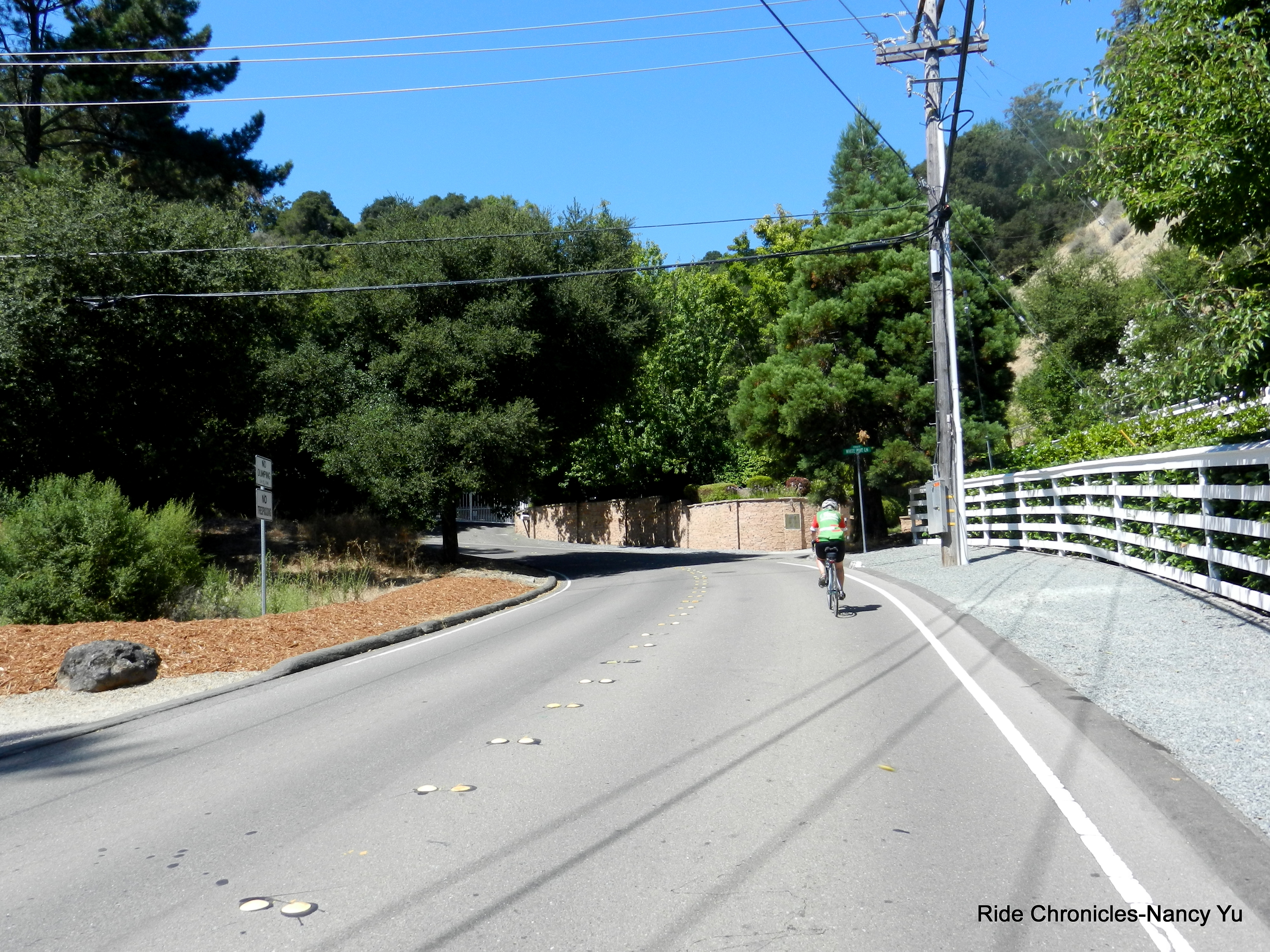 We head east on Wildcat Canyon and make our way down into Orinda. We take Camino Pablo and the partial bike path to Miner Rd.