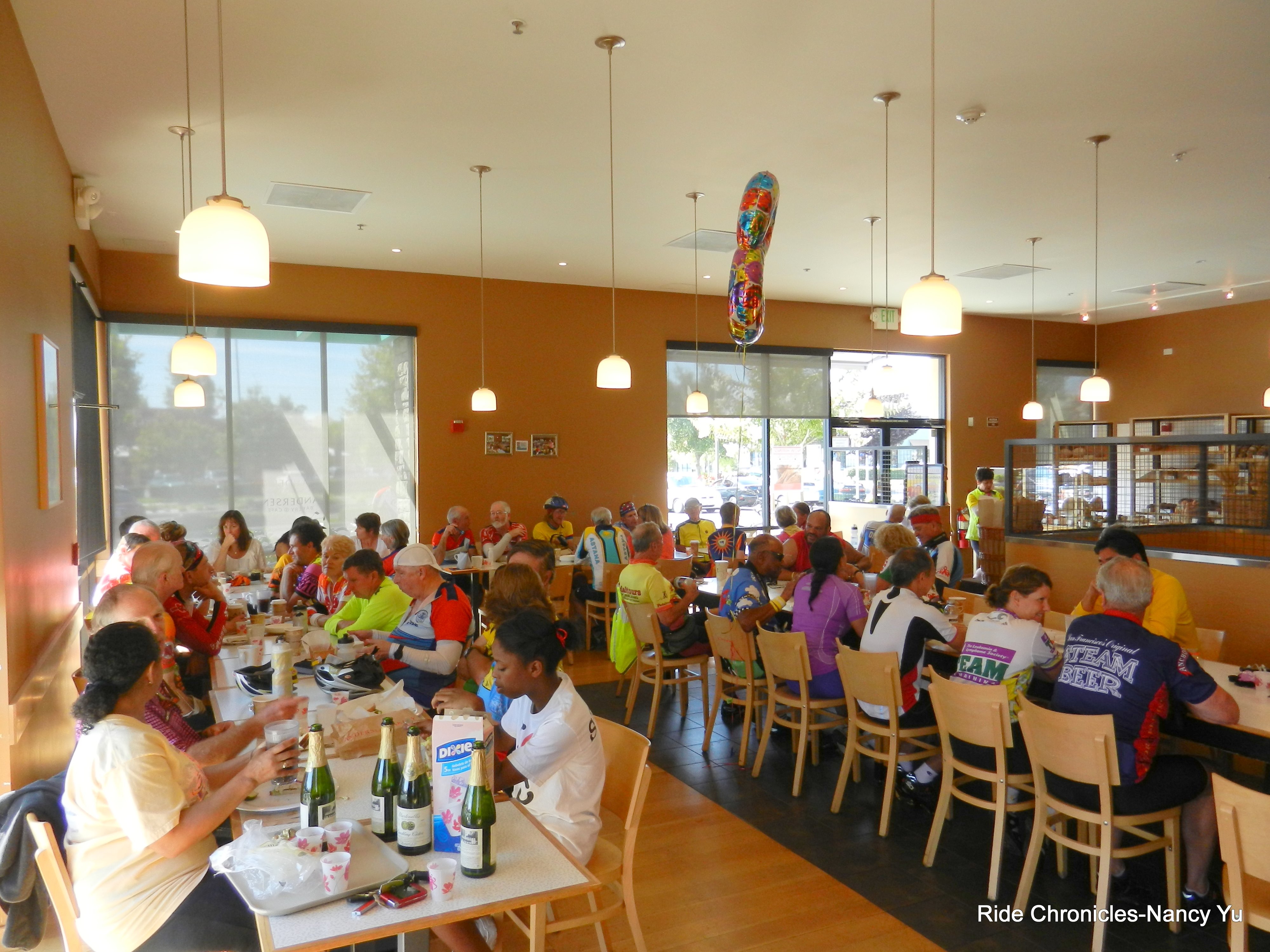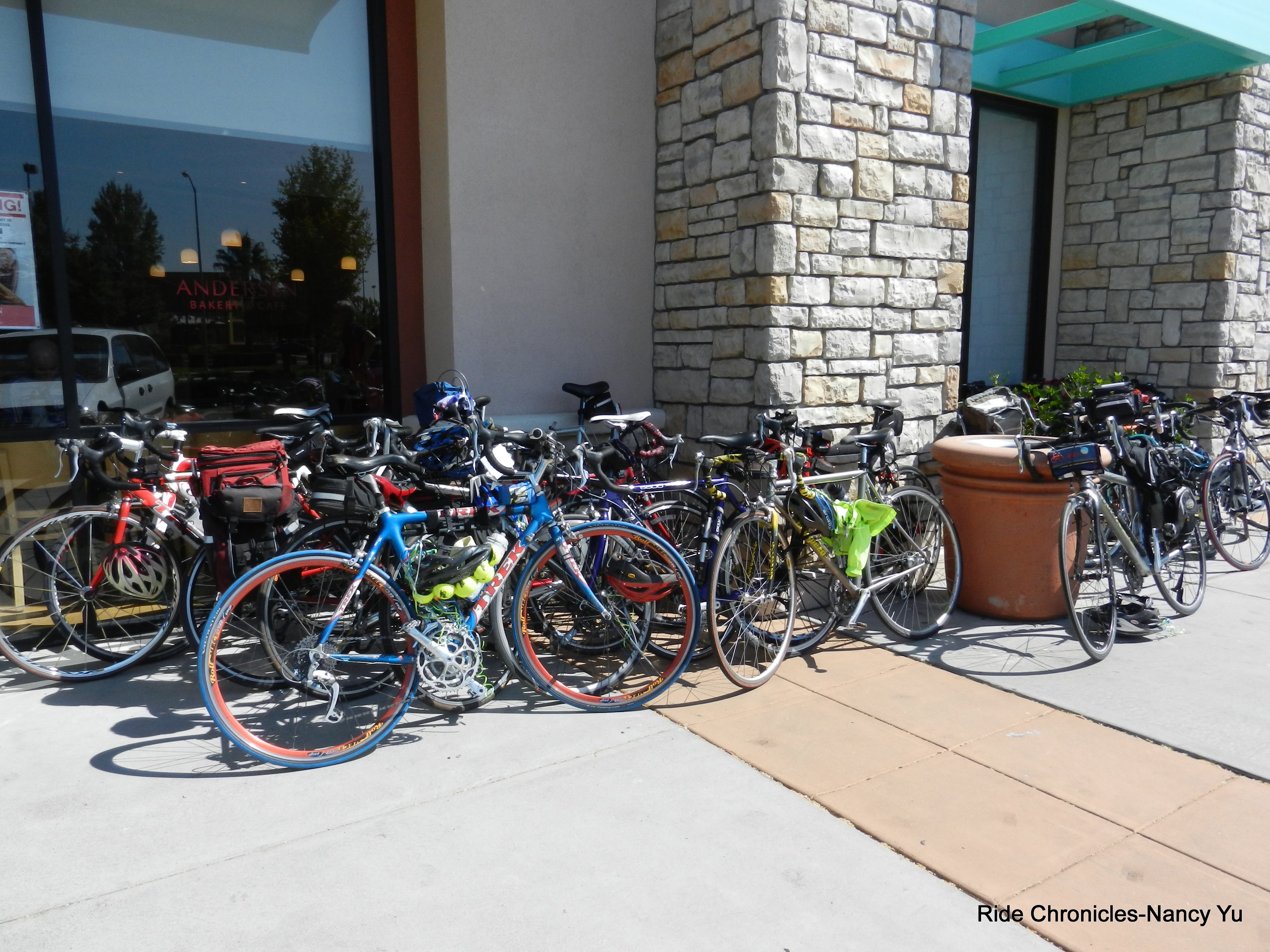 We arrive at Anderson Bakery at Union Landing off Courthouse Dr. There is ample space outdoors to park all the bikes and they even reserved a majority of the indoor seating for Walt’s party.