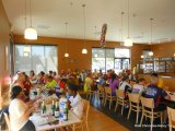Walt loves clam chowder, he orders the same thing when he comes to support my Bay Trail ride out to Little Louie’s. Anderson serves it up in a sourdough bread bowl; it looked really appetizing! Everyone is enjoying their lunch and having a great time socializing. Gail and Layla are busy serving up sparkling cider and the party atmosphere here is just wonderful!