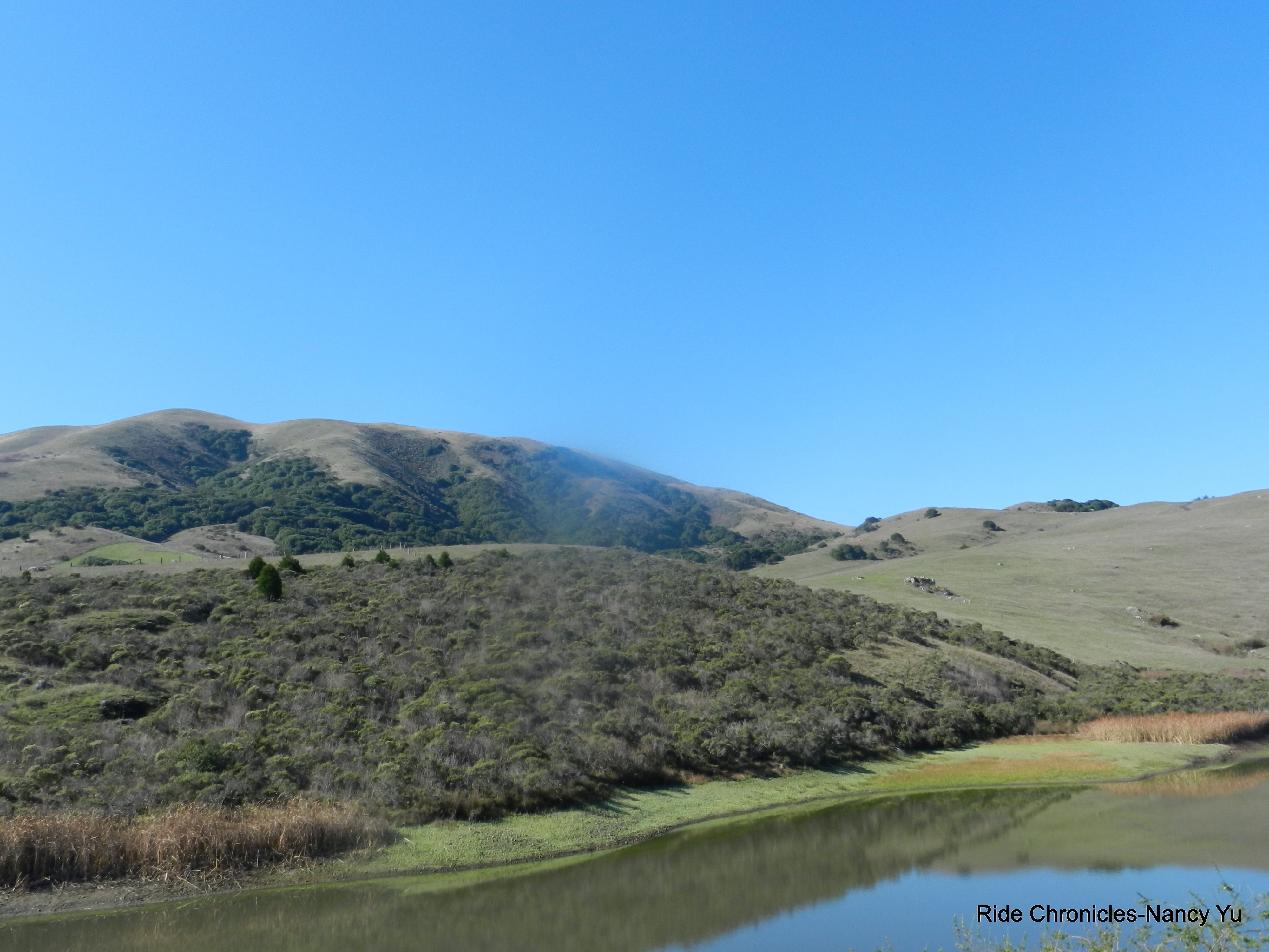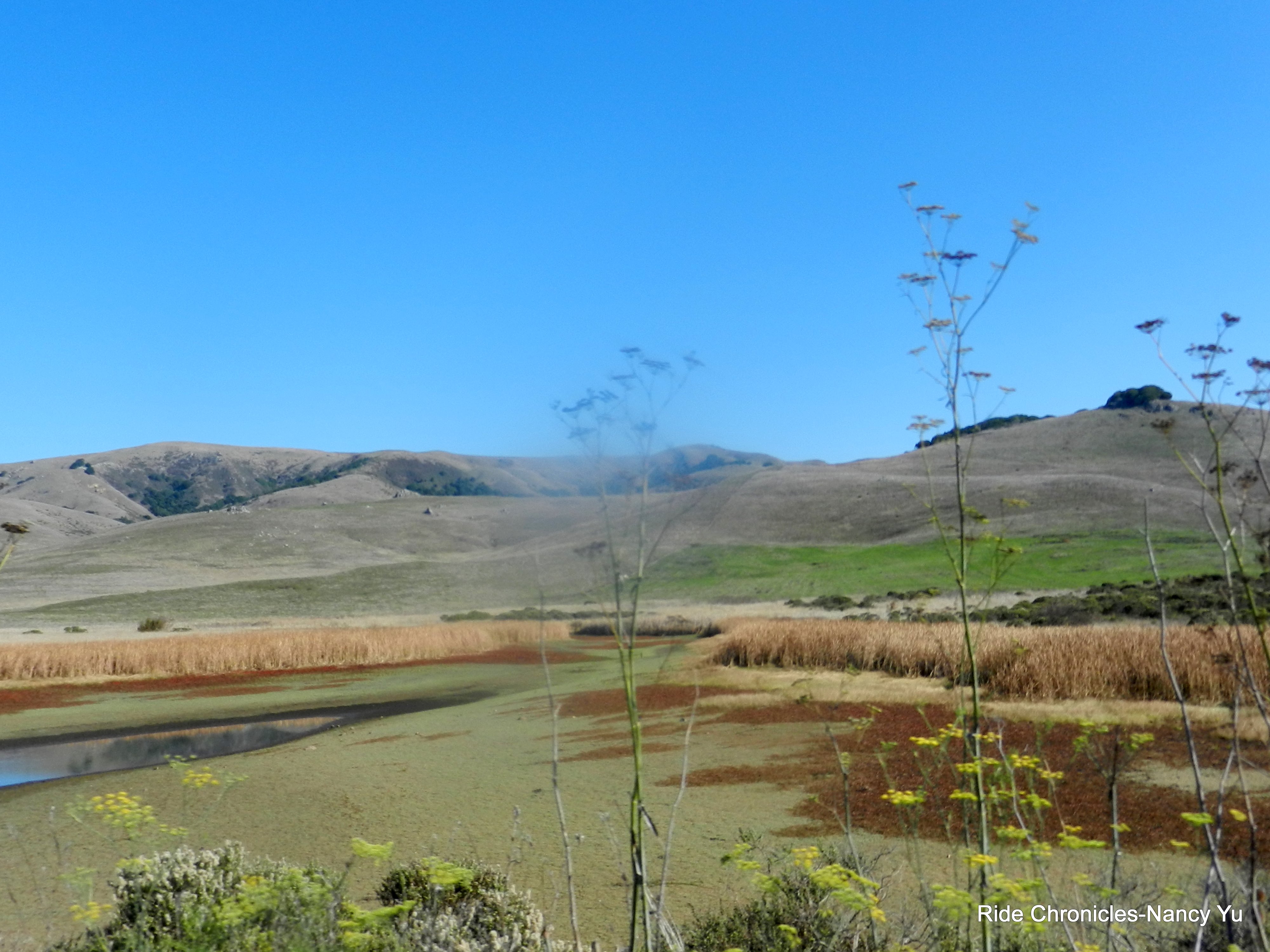 We descend to Olema and make a right turn onto Hwy 1 and then an immediate left onto Bear Valley Rd. There is one short climb after you pass the Visitors Center and then it’s pretty much flat all the way to the intersection with Sir Francis Drake Blvd. You do get some nice views of Olema Marsh; it’s also a popular spot for bird watching.