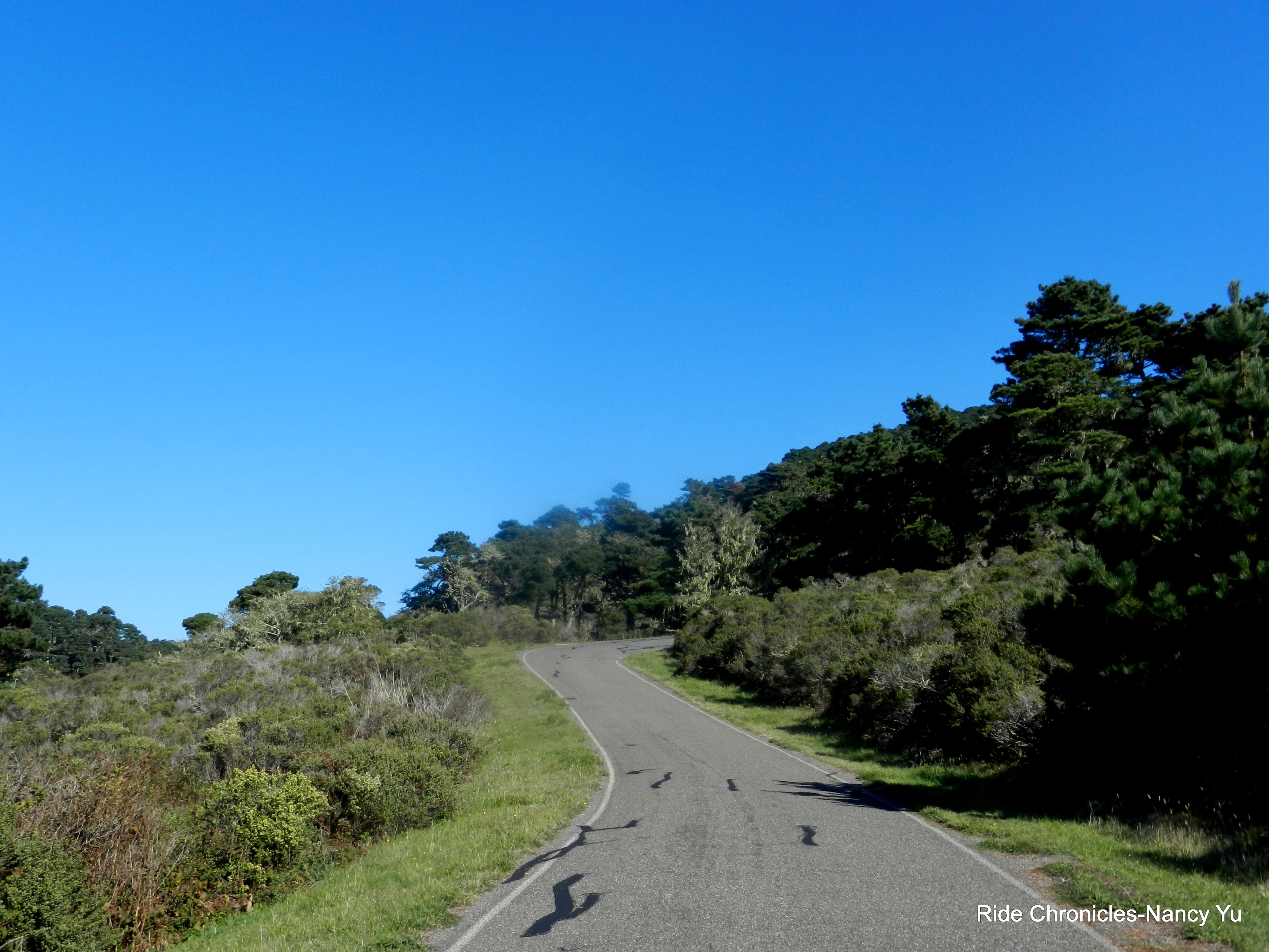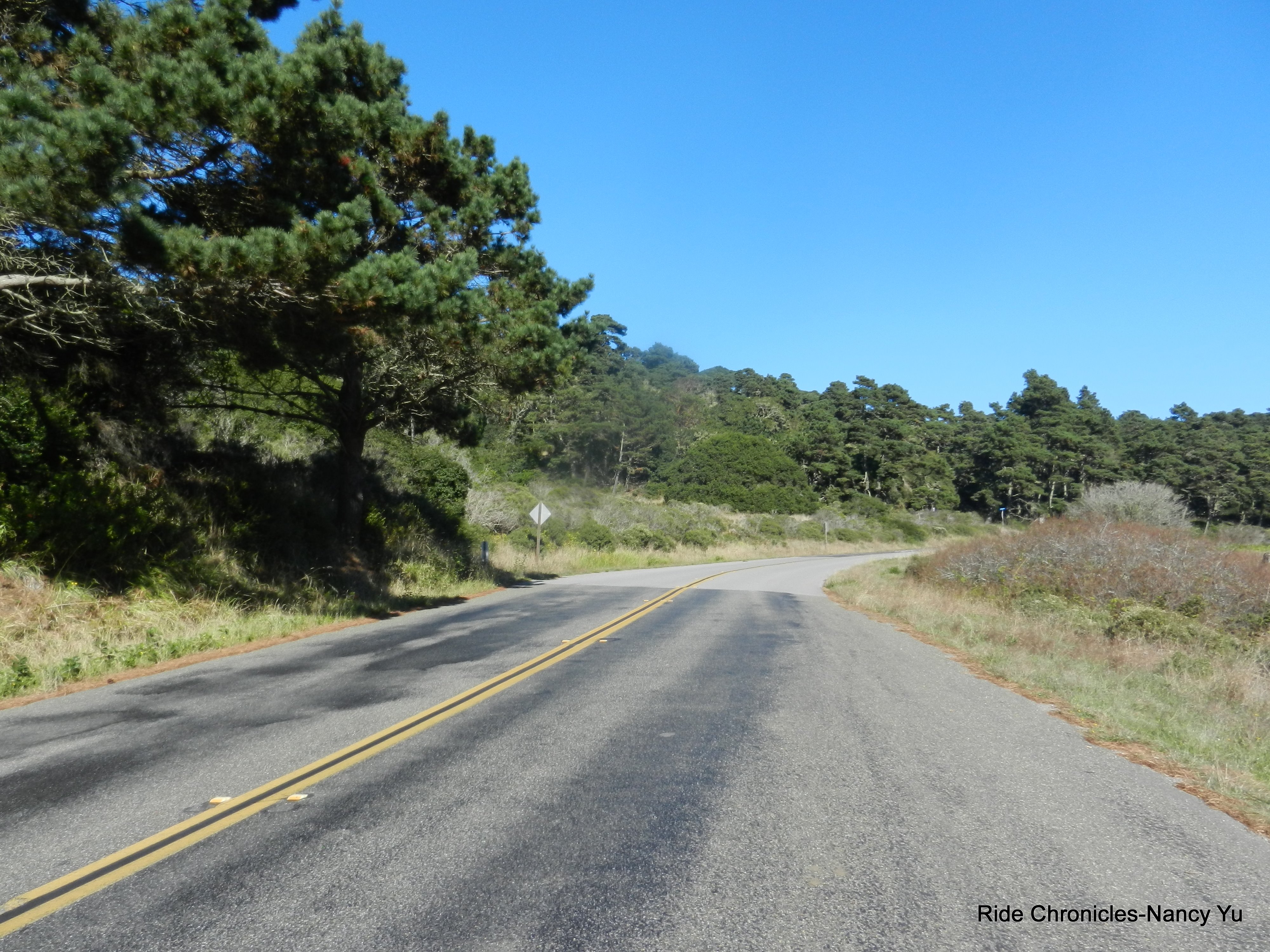 We stay on SFBD and head towards Pt Reyes National Seashore. There is a short climb up Inverness Hill; it’s less than a mile with gradient ranges of 8-11% and maxes out at 13% near the top.