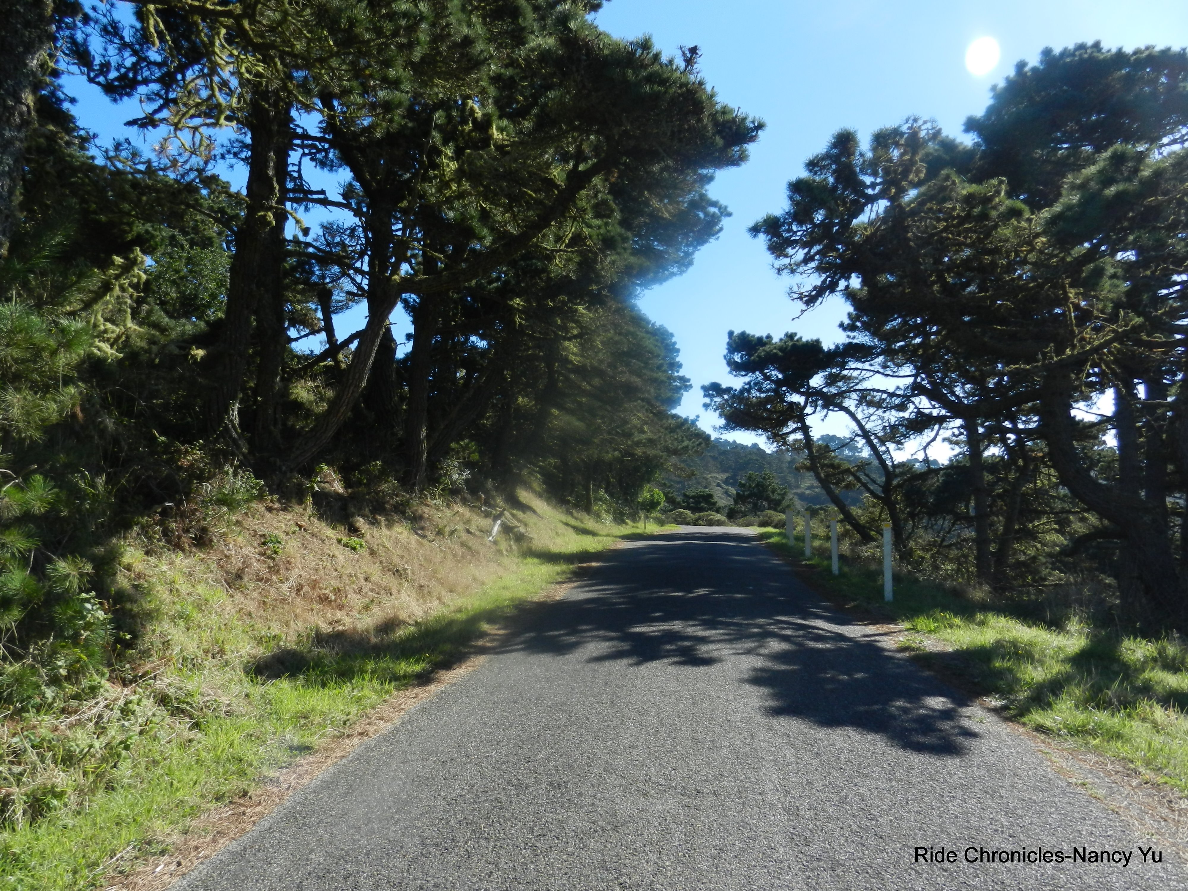 The moderate 3 mile climb up Mt Vision is a series of winding switchbacks on a narrow single lane road. The gradients range from 9-11% with sections that hit 13-14%! There are two very short descents in between the climb up. The road levels out a bit after you make your way through the amazing cypress forest and coastal scrubs. The scenery, views and surrounding landscape is a magnificent distraction to the climb.