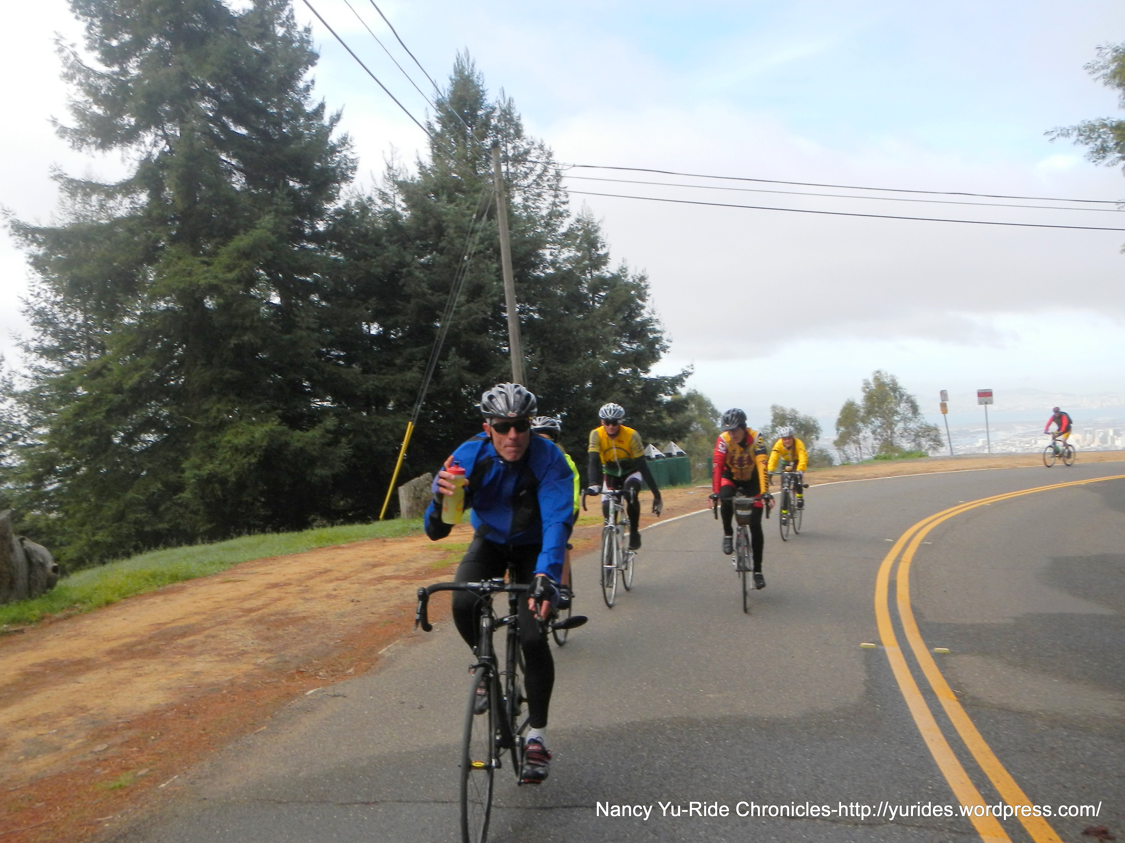 Michael and I are start out from Lake Temescal to go up Broadway and Tunnel Rd to meet up with Lisa M’s group at SIbley Park. The club ride will take us on Redwood Rd out to Palomares Rd and back.