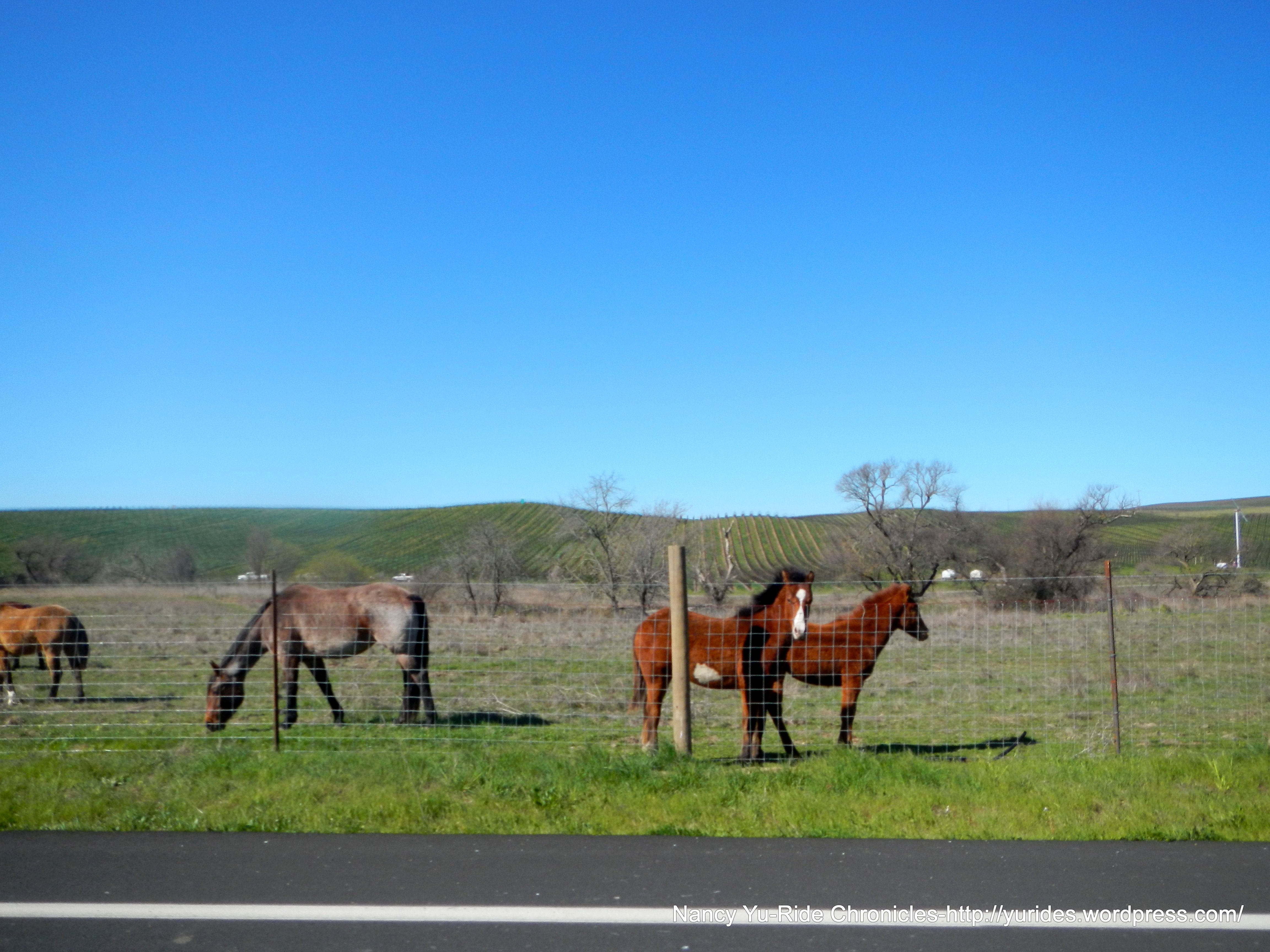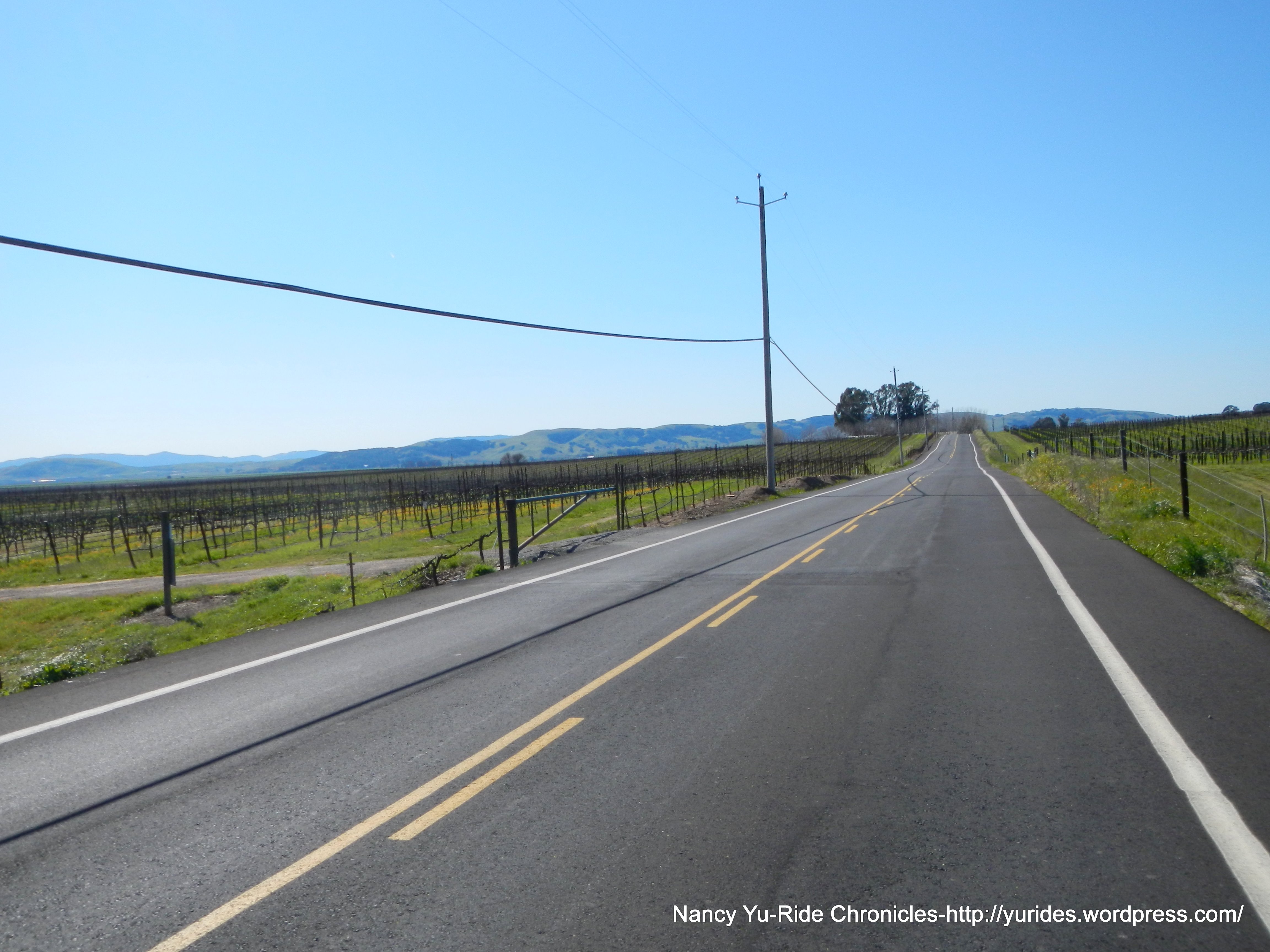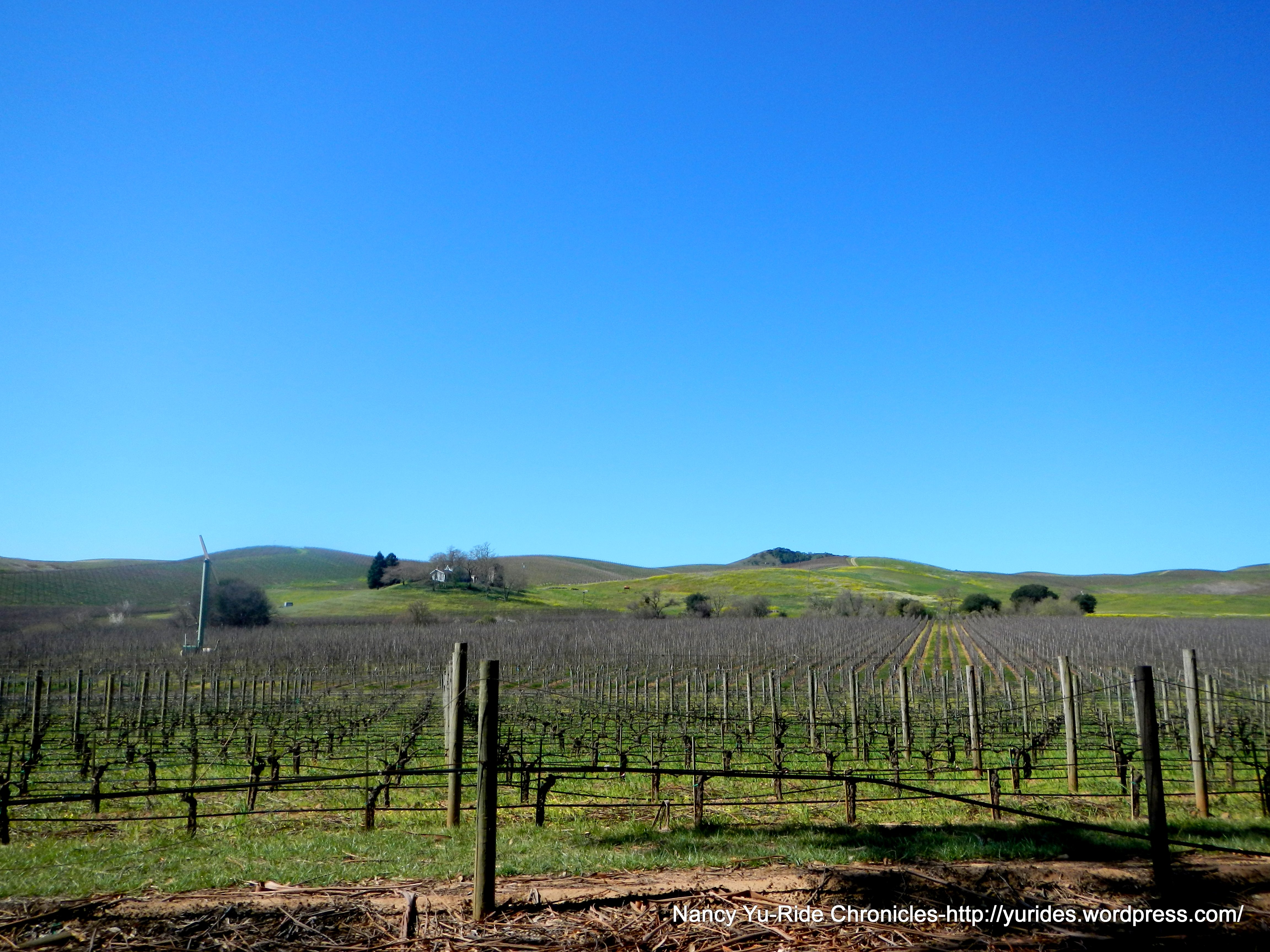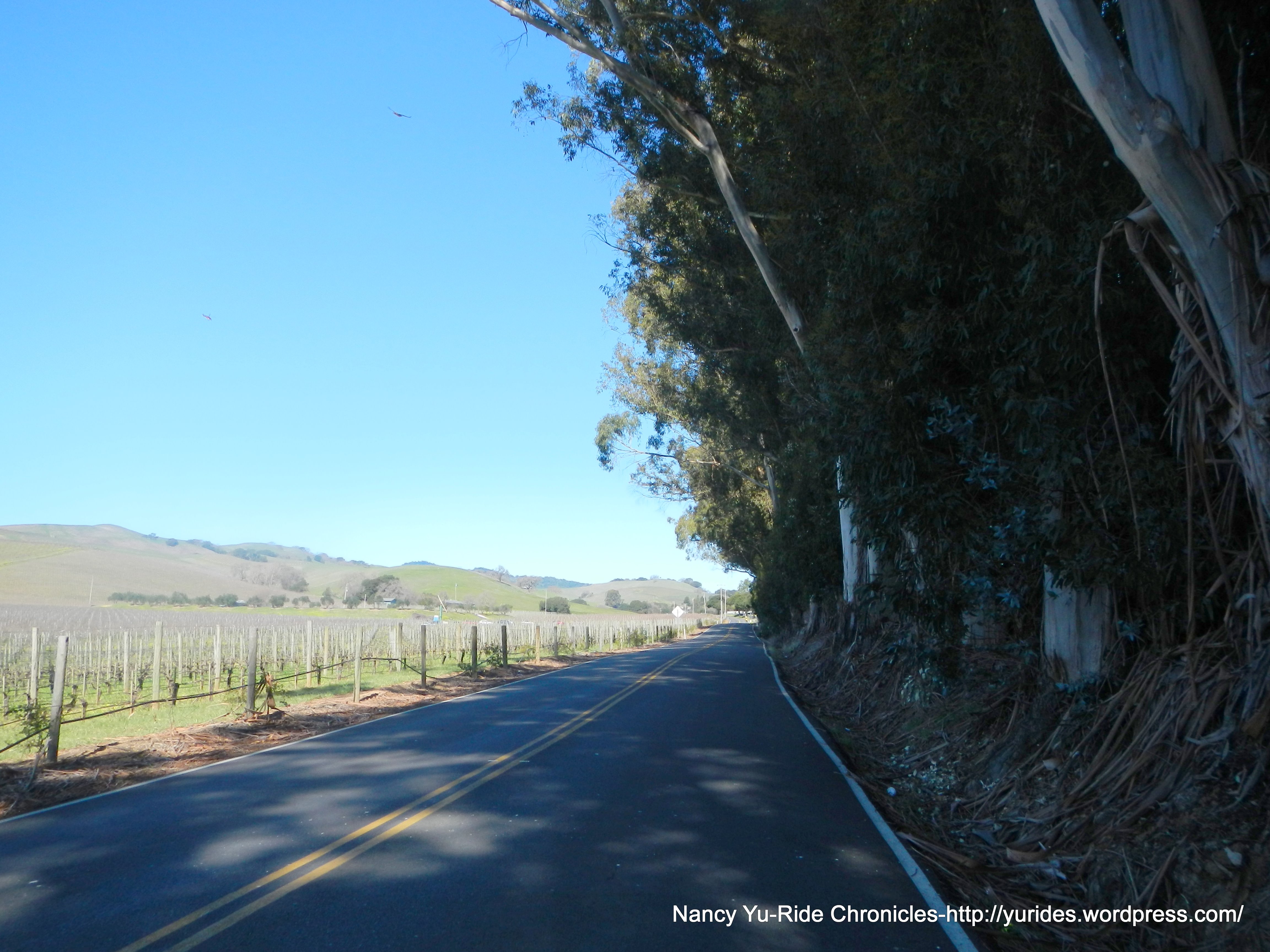 The turn on Henry Ln drops us down to Buhman Rd where one side of the road is lined with eucalyptus trees. There are non-stop views of more vineyards! BEAUTIFUL!