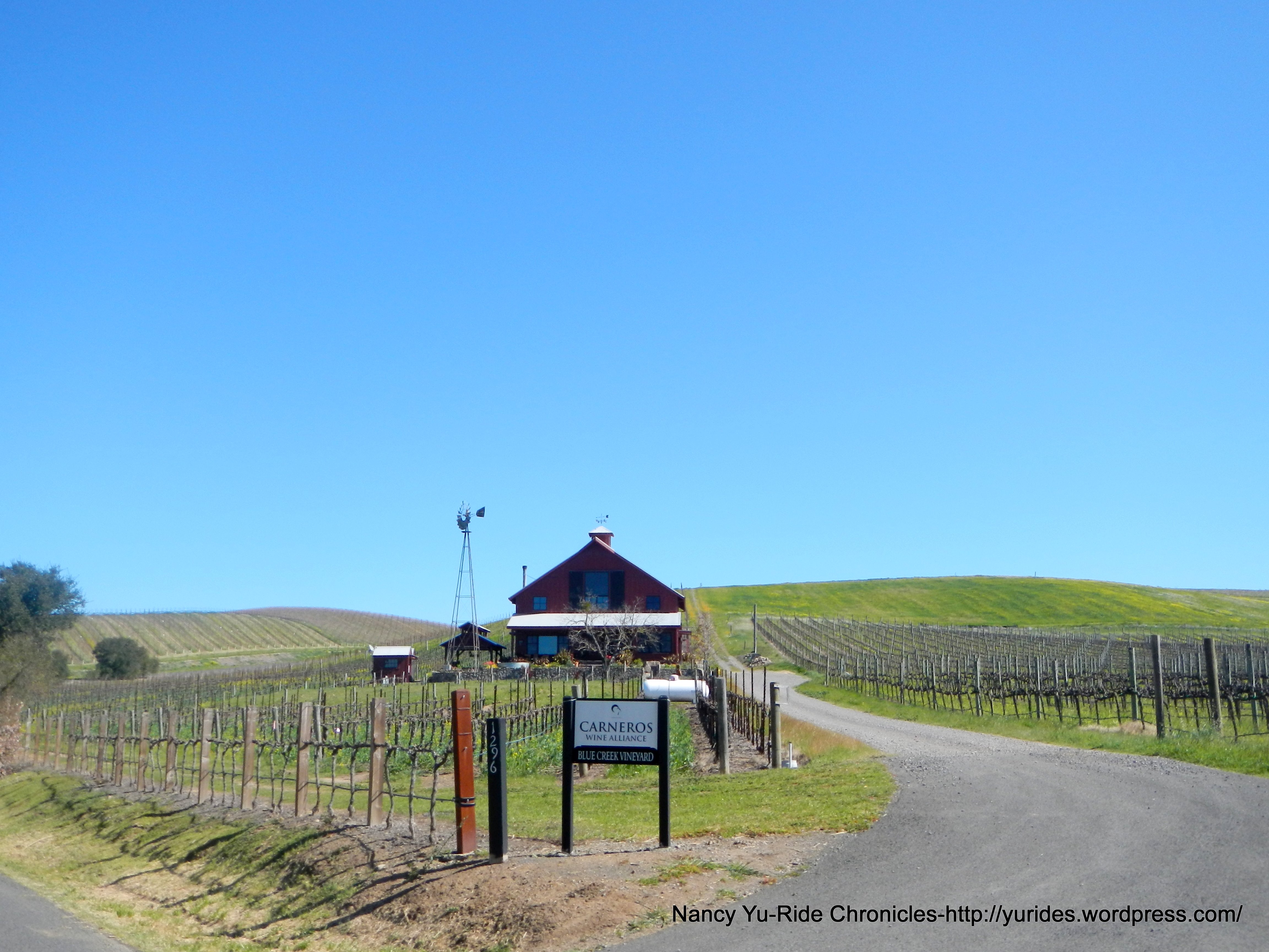 The short section along Hwy 12/121 brings us to the turn on Los Carneros Ave. We take the turn on South Ave to Cuttings Wharf Rd. Every which way you turn, there’s always a vineyard in sight!