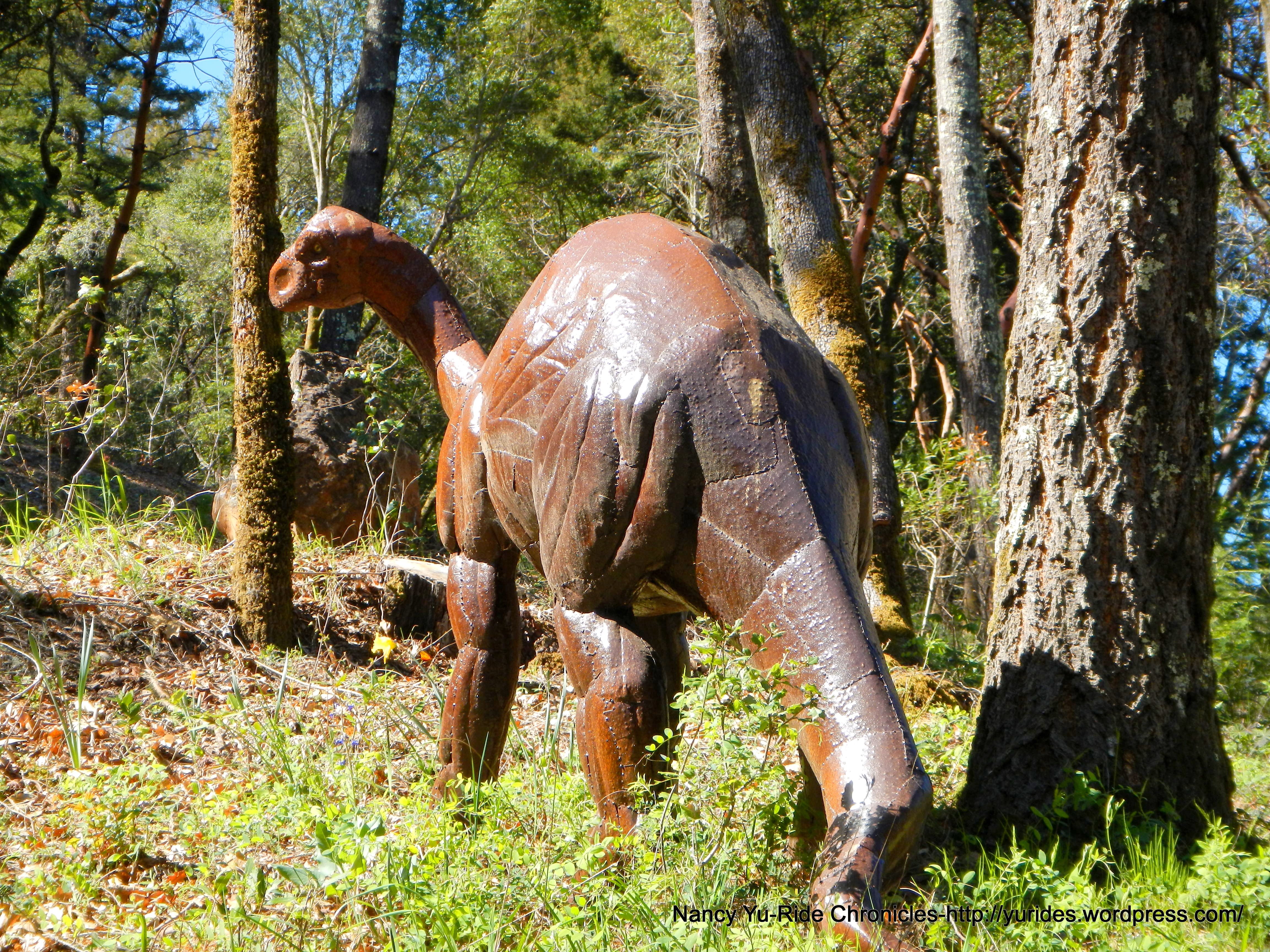 The descent on My Veeder Rd takes us to Dry Creek Rd. The rolling terrain along Dry Creek Rd takes us through the scenic valley and along the creek for the next 9 miles. Did anyone else stop to see the display of prehistoric dinosaurs? They’re FANTASTIC!