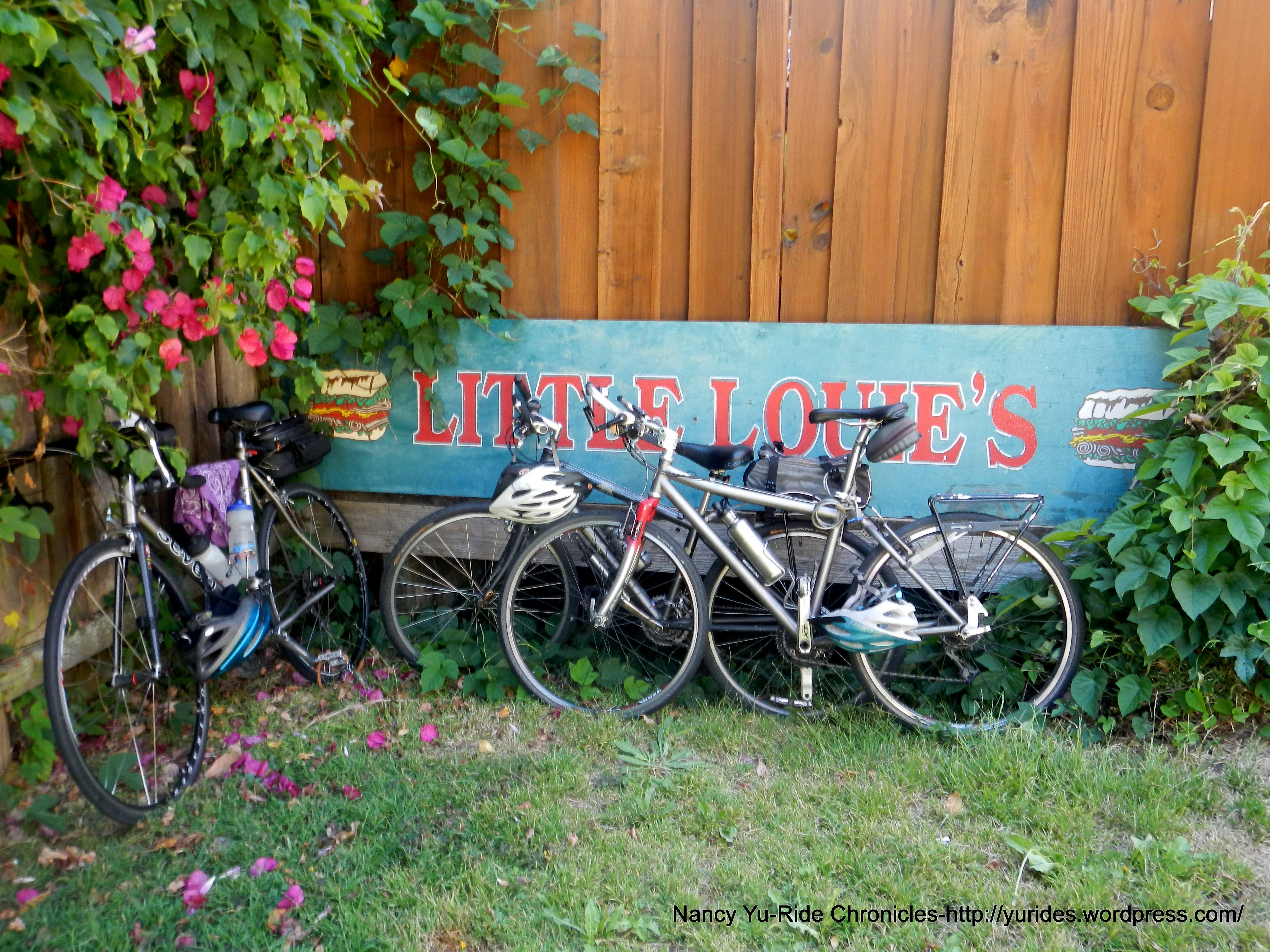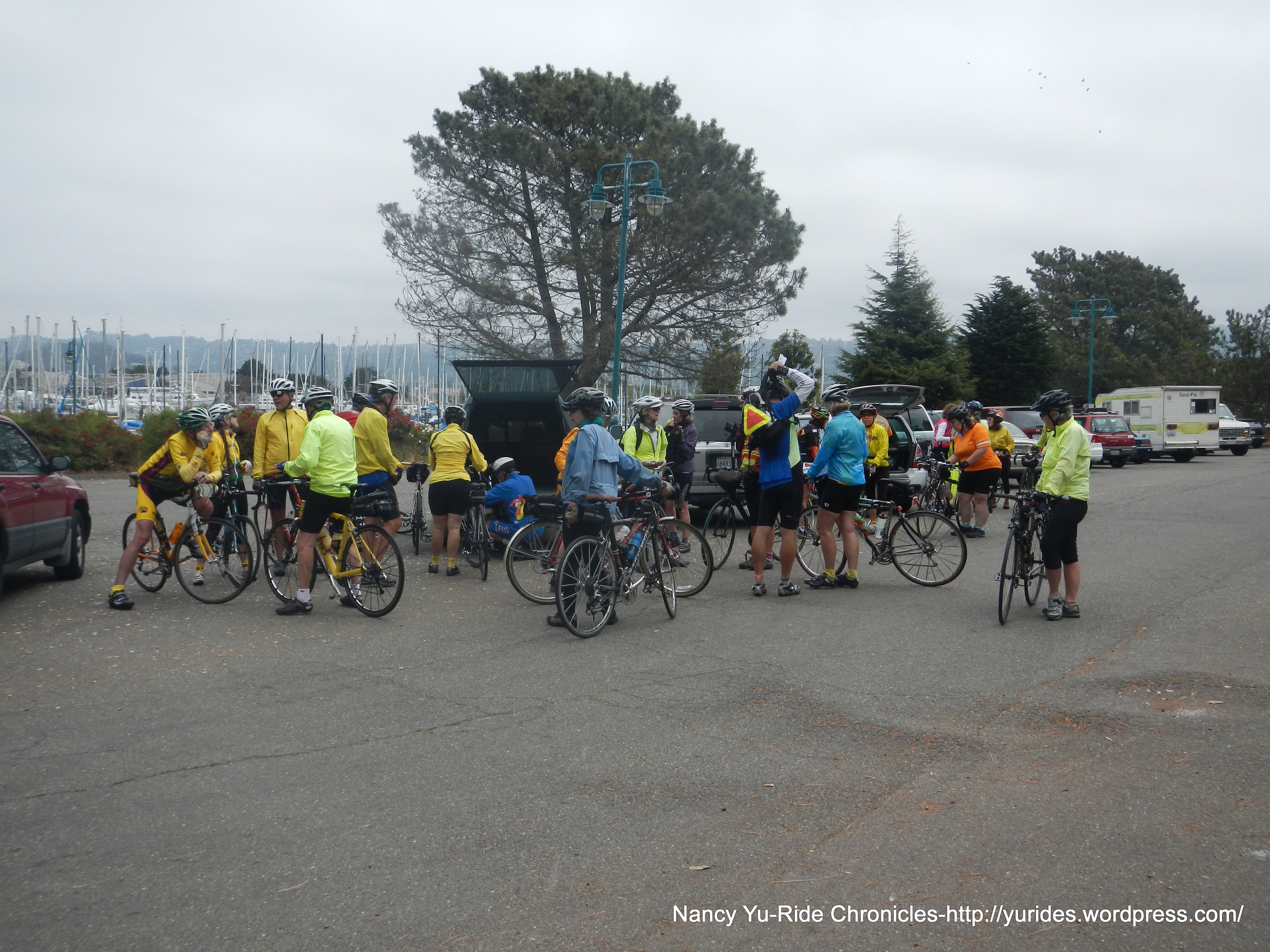 My, my, it’s time for another birthday ride! Lynn S is leading today’s ride out to Pt Richmond for lunch at Little Louie’s. I ride out from home to meet up with the group at the parking lot in front of Skates By the Bay at the Berkeley Marina.