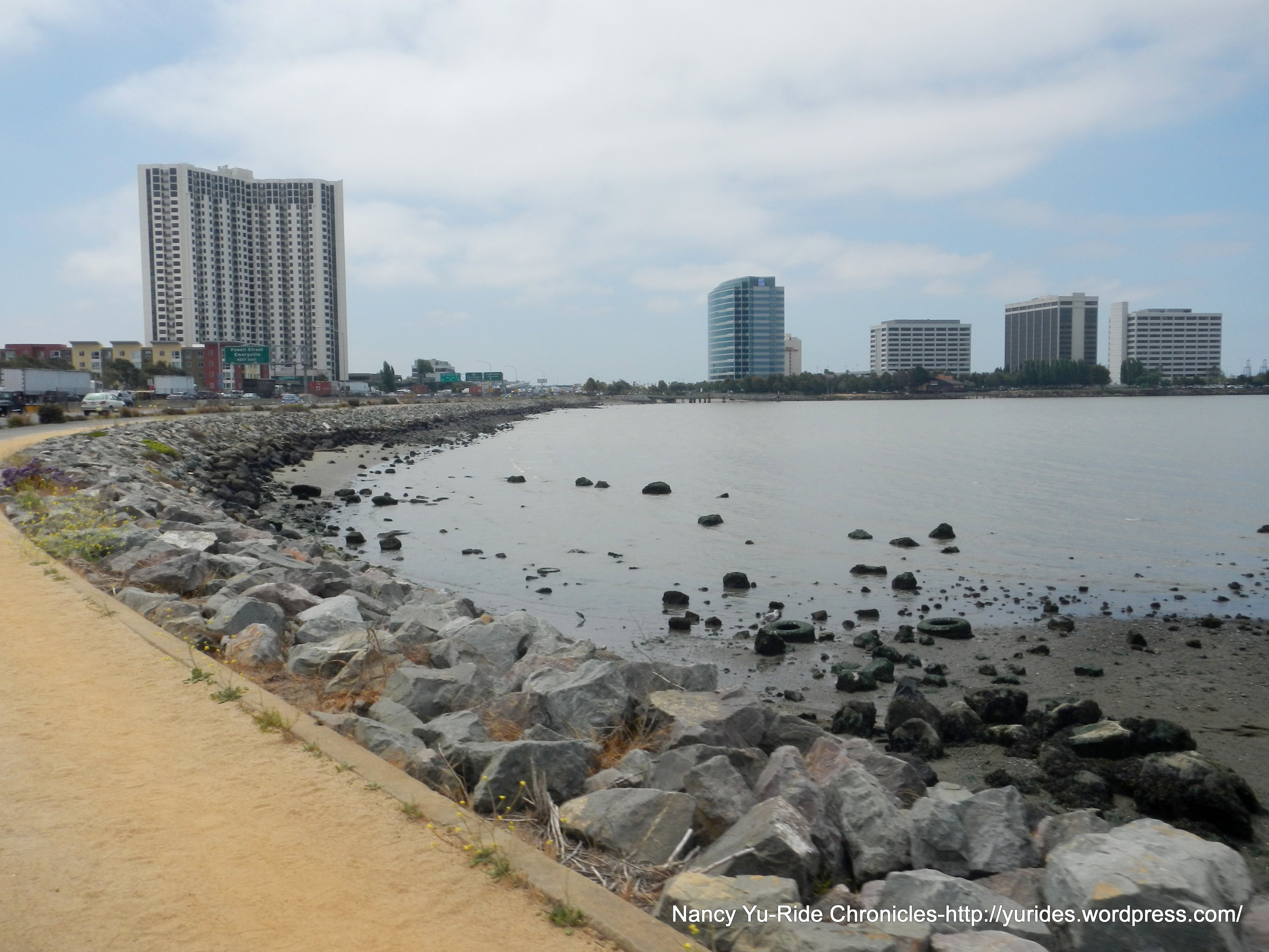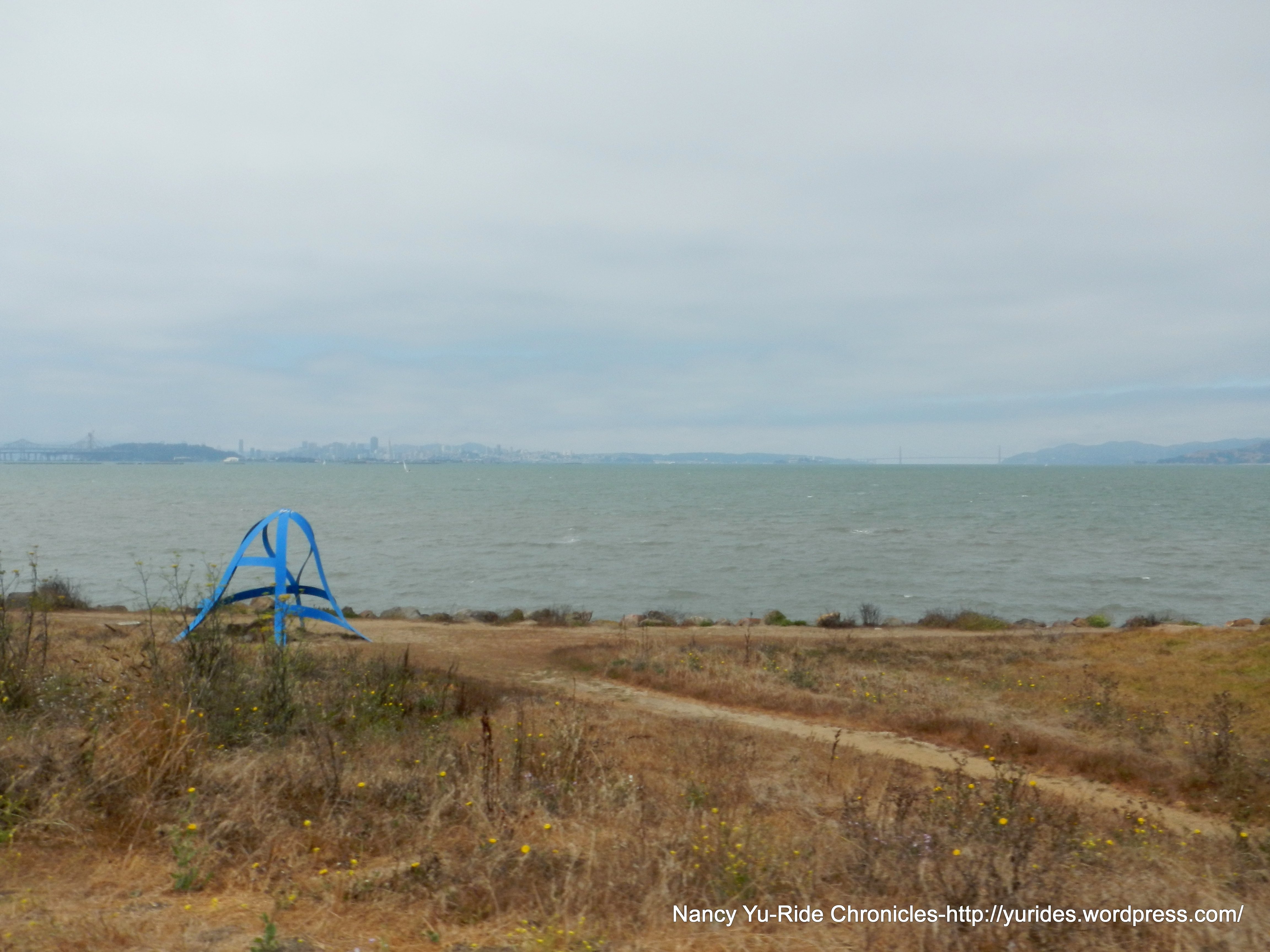 We get back to University Ave onto the Bay Trail towards the Emeryville Marina. The mudflat sculptures are making a comeback in Emeryville! From this part of the trail, you get great views of the Emeryville Towers, the Bay Bridge, Marin County, the Berkeley hills and the boats on the marina.