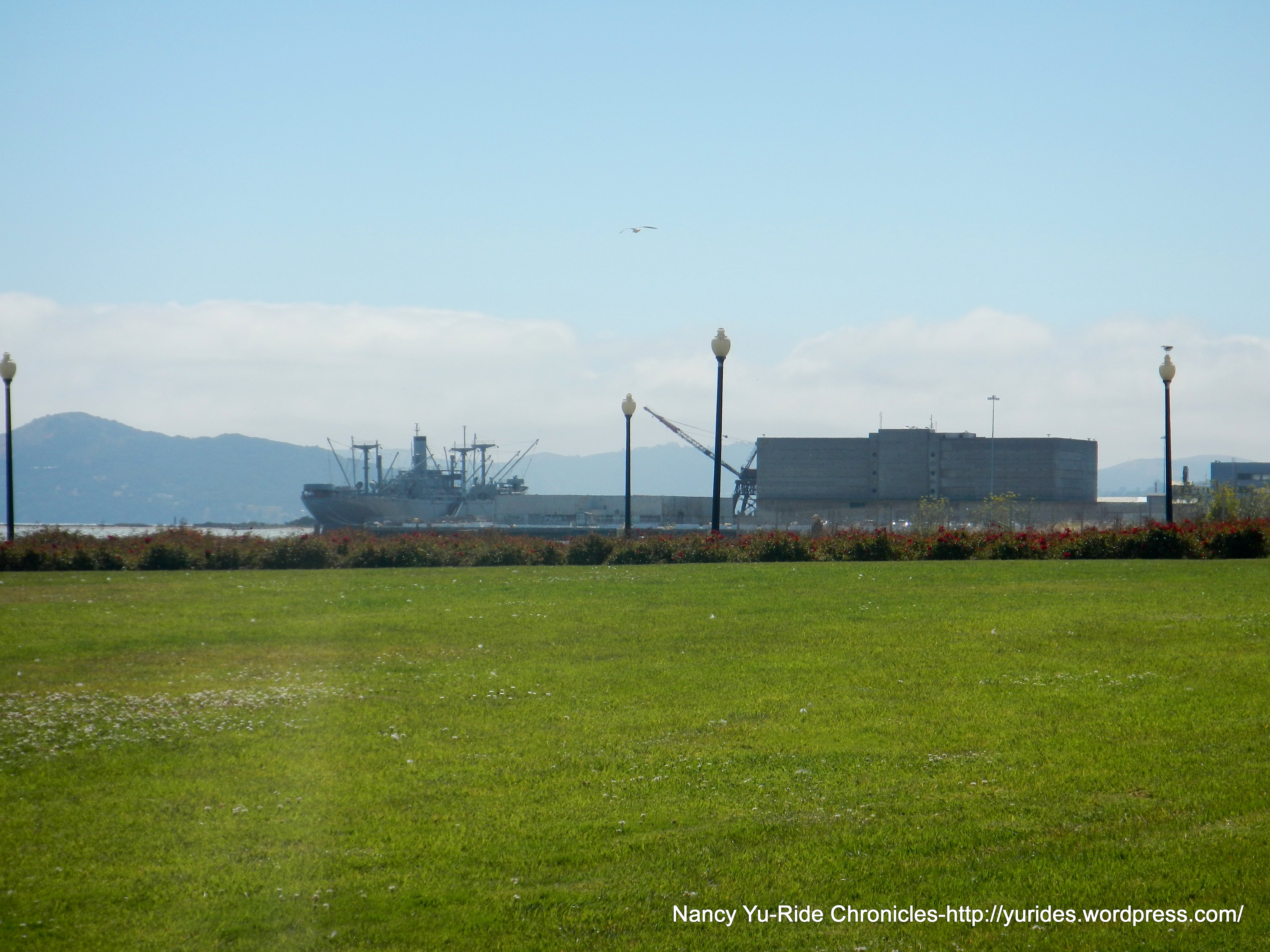 The whole group has split up-some are way ahead and probably back at the Marina and a few stopped at the new Rosie the Riveter Visitor Education Center. Me, I still have to ride back home to Martinez, so I opt not to attend Lynn’s Happy Hour at Skates by the Bay for cheap eats and drinks.
