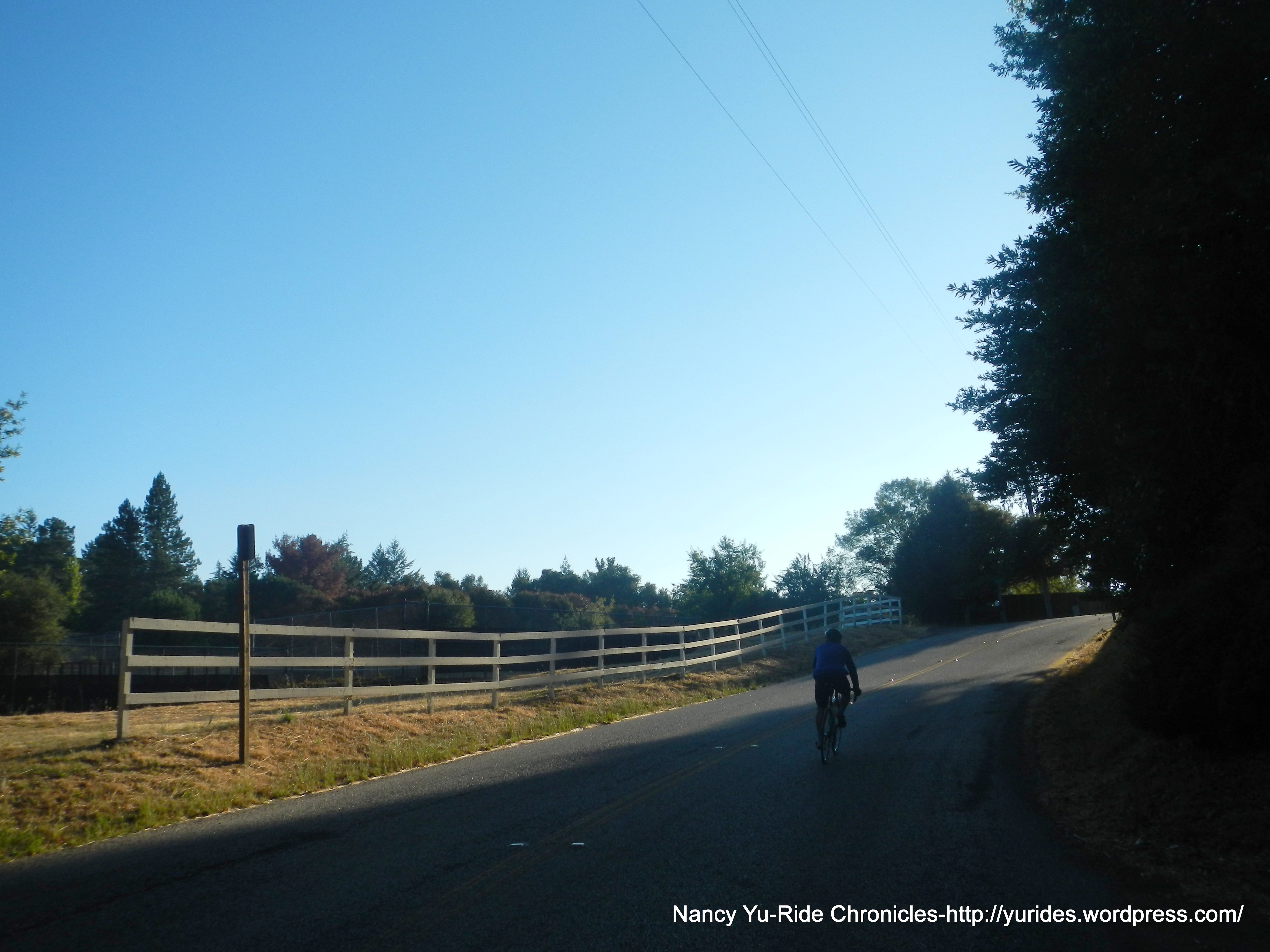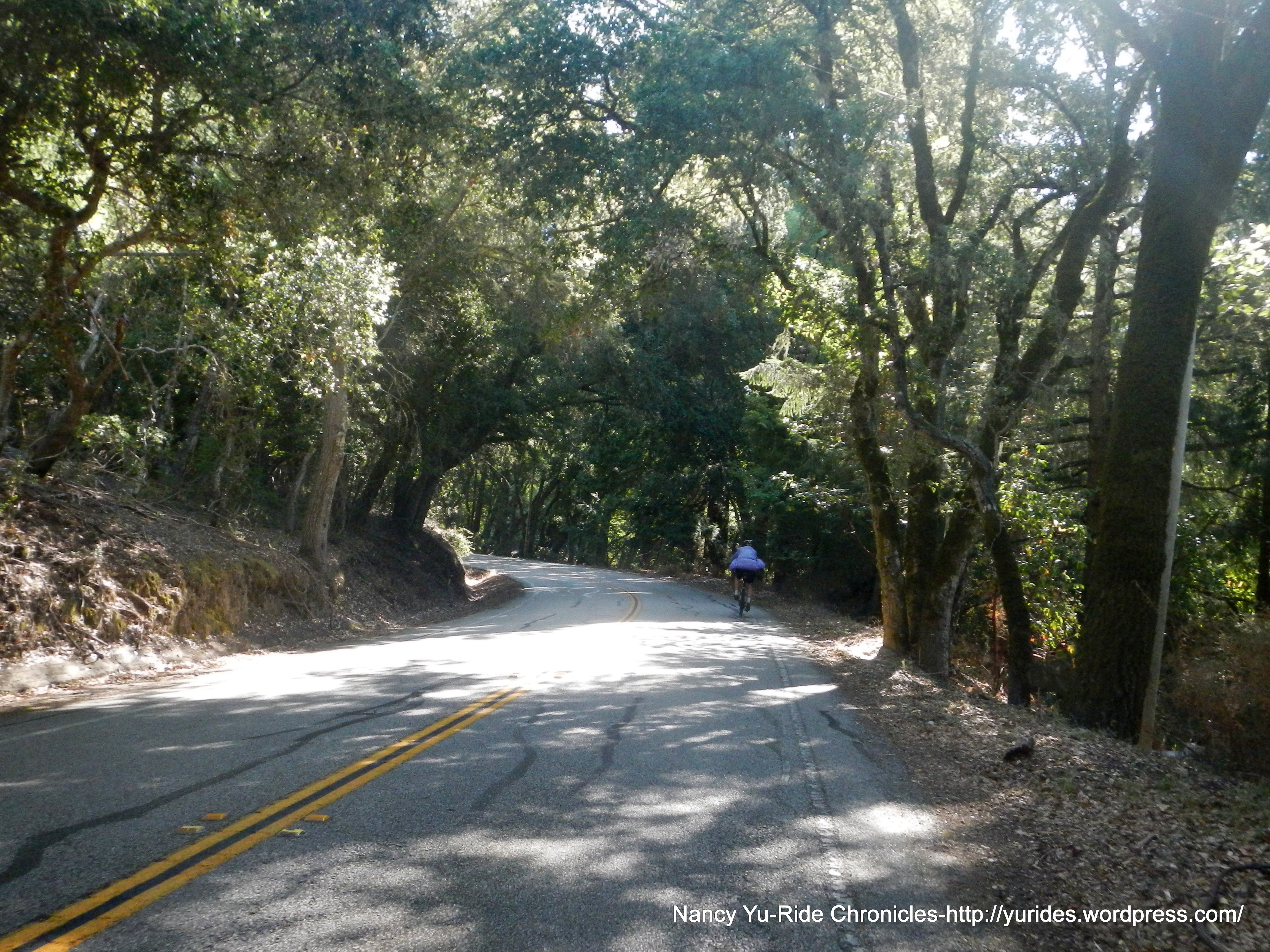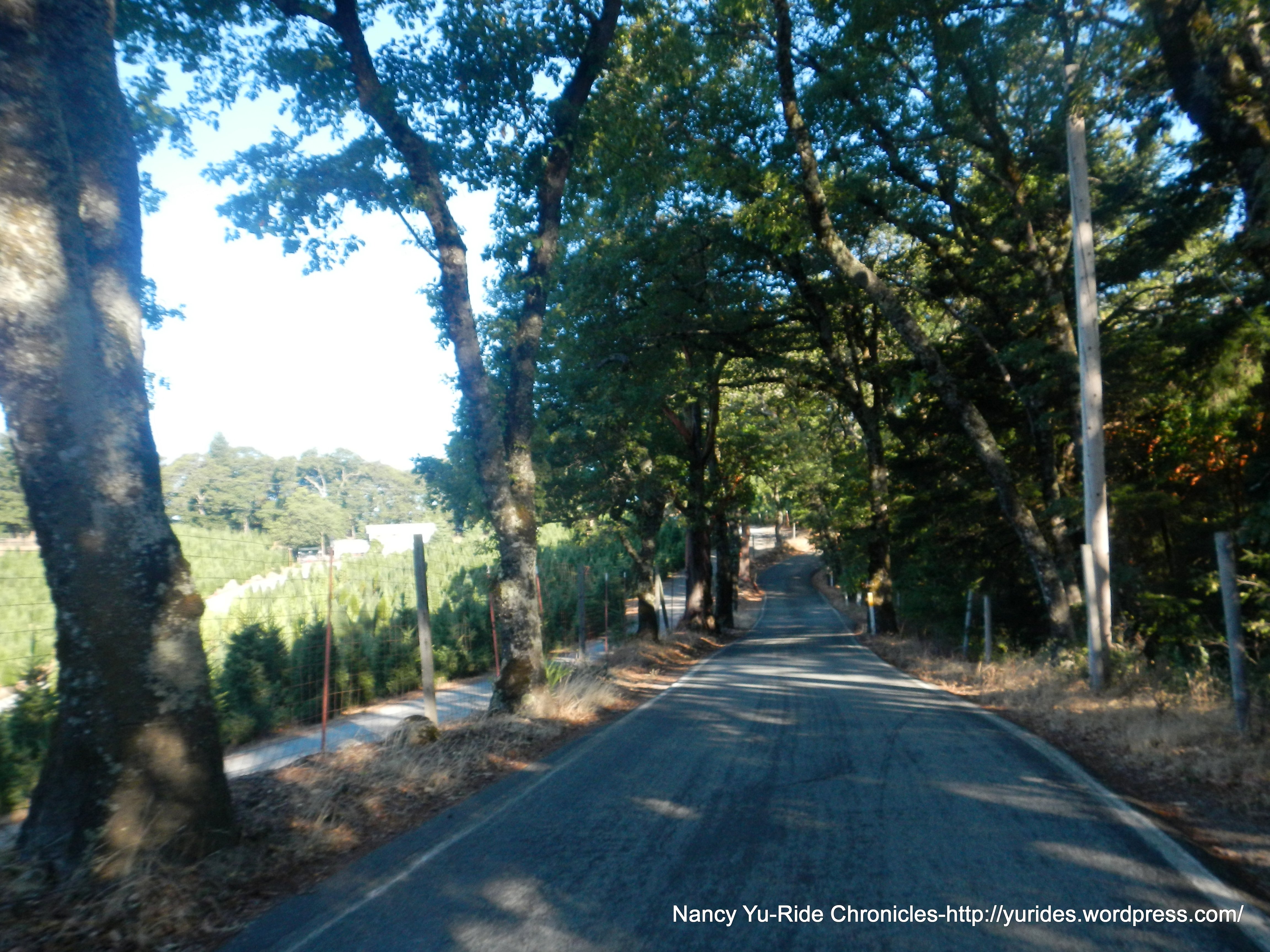 From Summit Rd, we take Bear Creek Rd to Hwy 35/Skyline Blvd. The first 3.5+ miles along Hwy 35 is on a shaded narrow single lane road with an average grade of about 4.5%. There are several sections with steep pitches of 9-11%! The remaining 6+ miles on Skyline Blvd is on very smooth pavement all the way to Hwy 9.