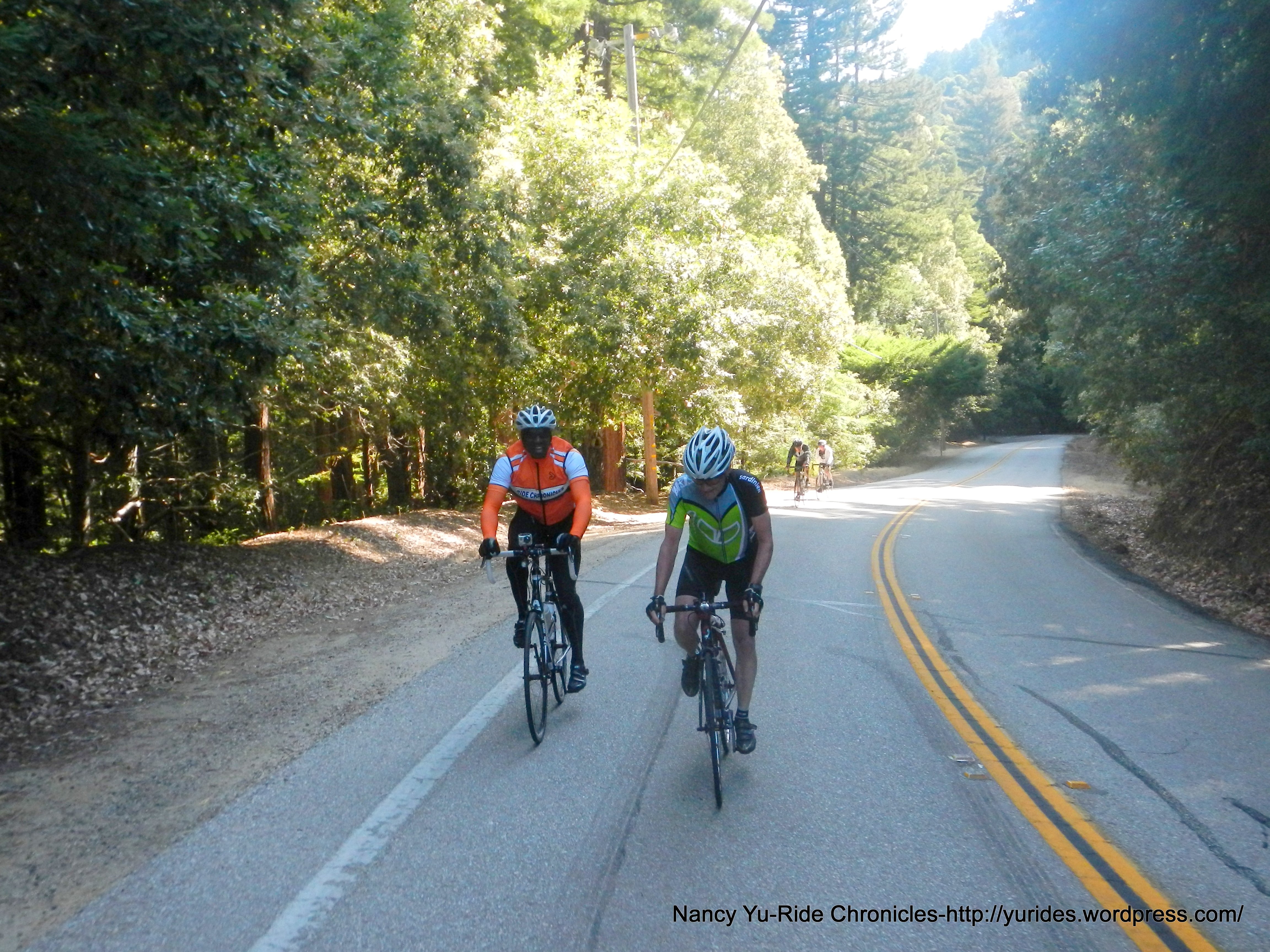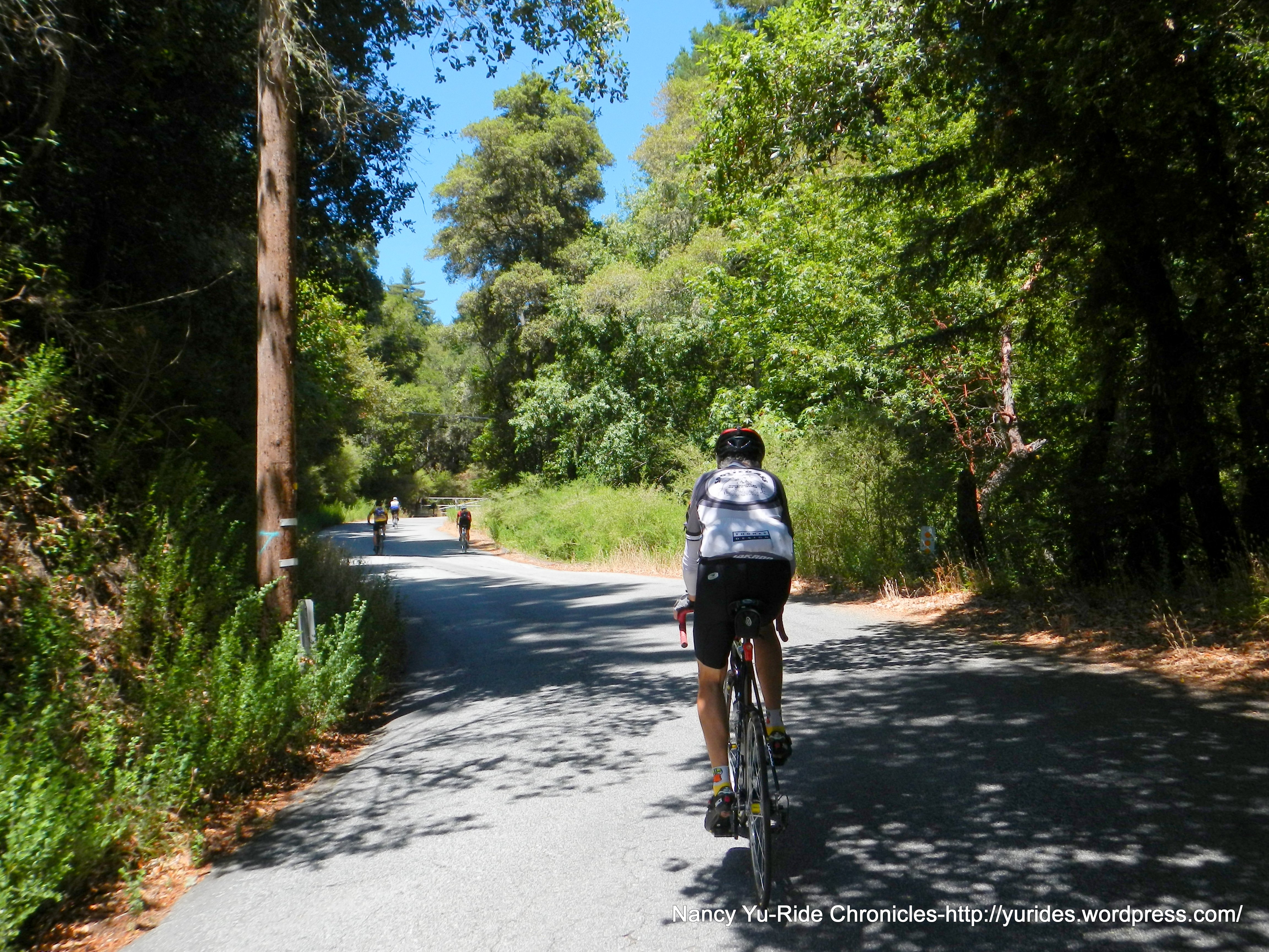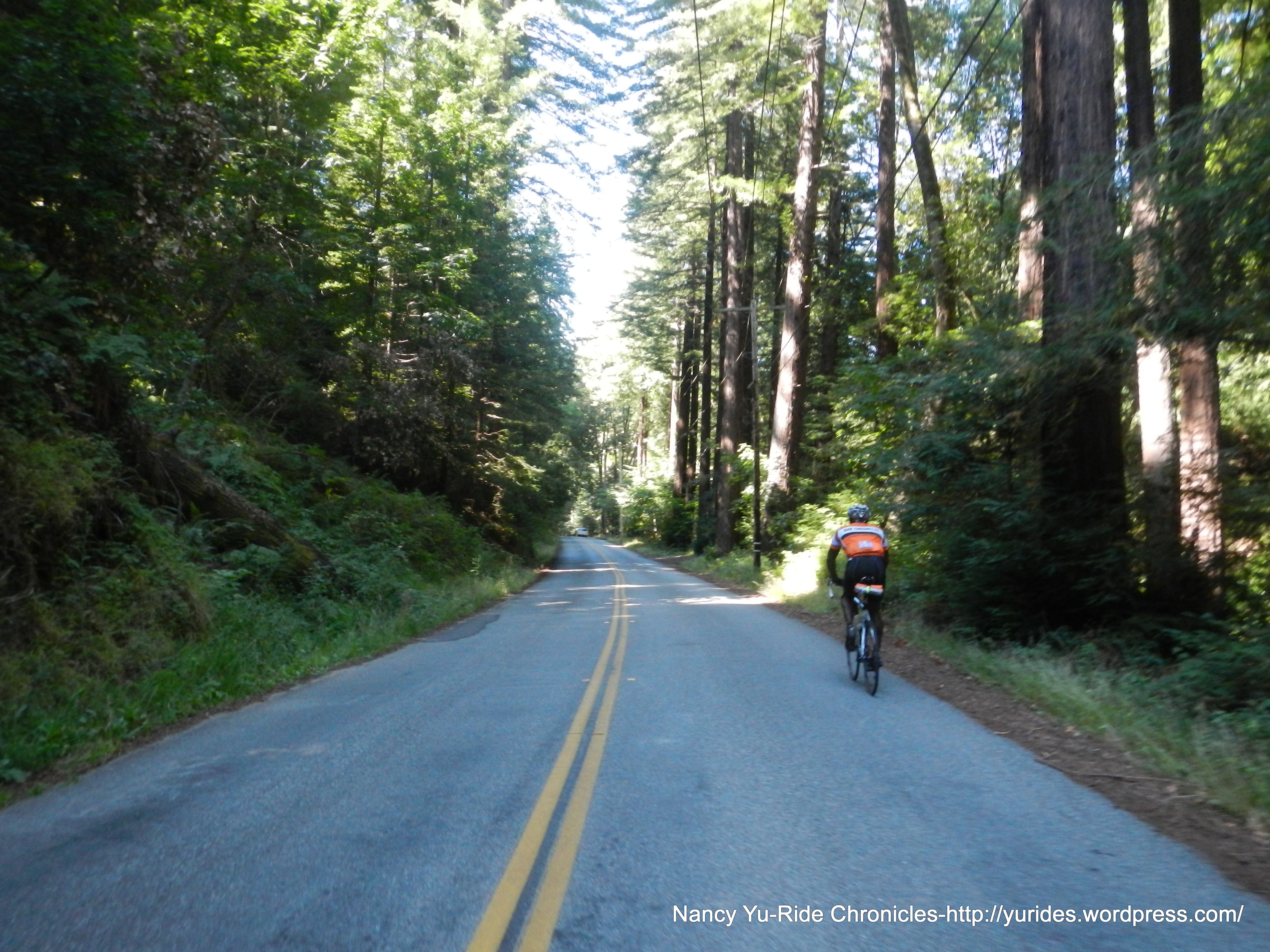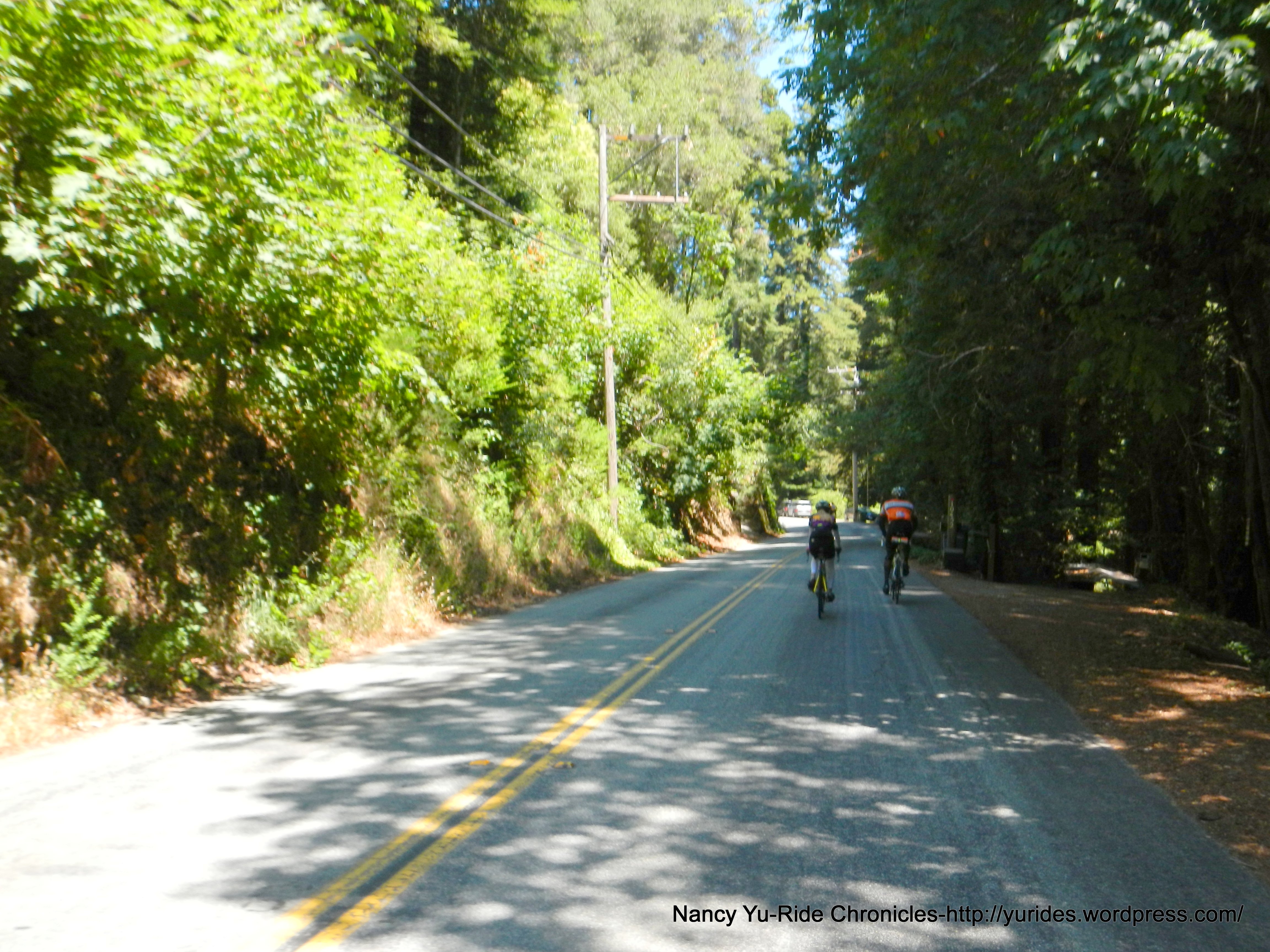 The next few miles out of the park is actually a climb-the gradient ranges from 4-7% followed by a nice descent towards Boulder Creek. At this point along the ride, I get to meet Emil from Switzerland-he follows my blog-WOW! It was a pleasure riding with him and hearing about his past and upcoming cycling adventures. He has plans to go up Mt Diablo, Mt Tam and Mt Hamilton!