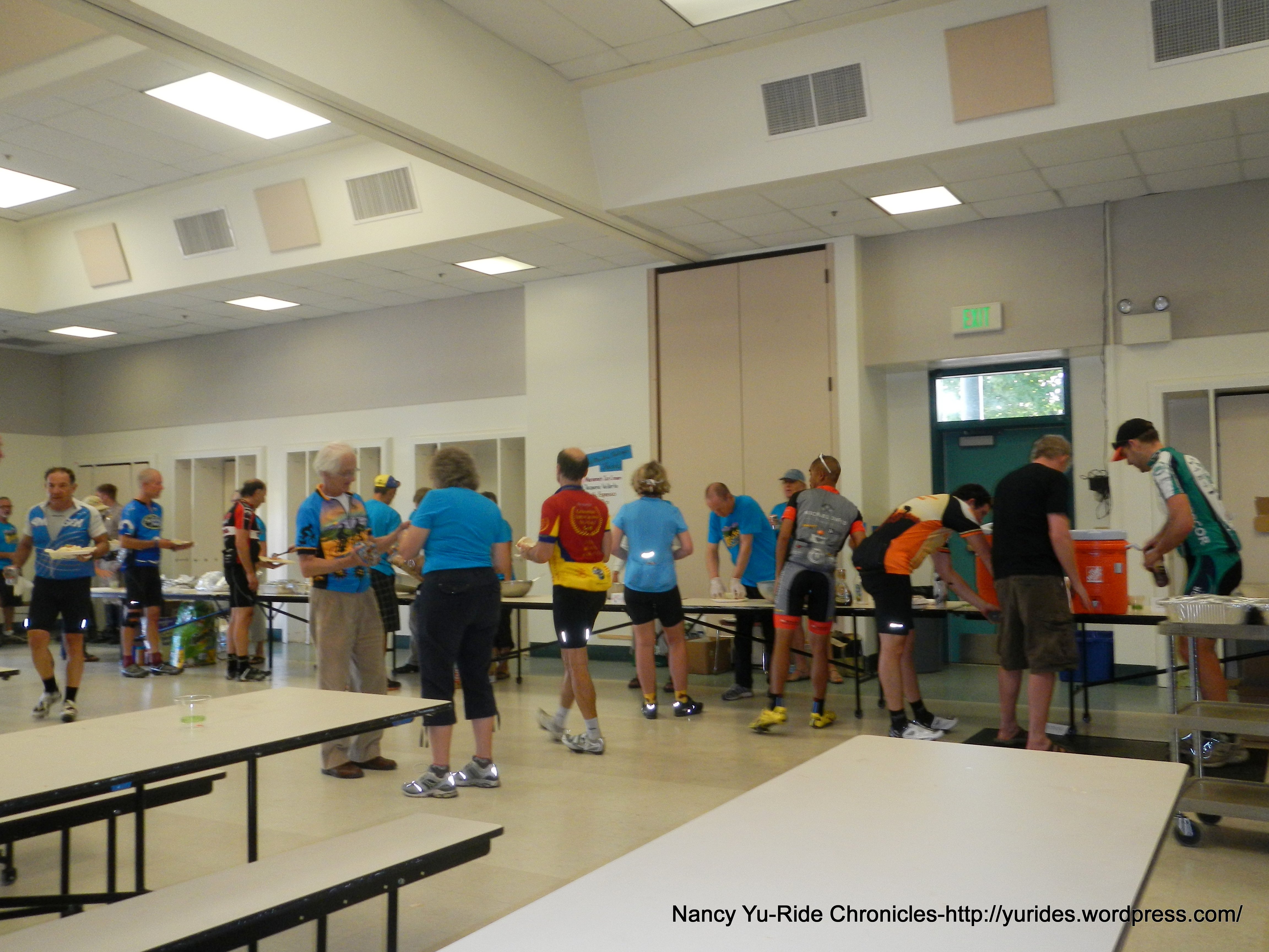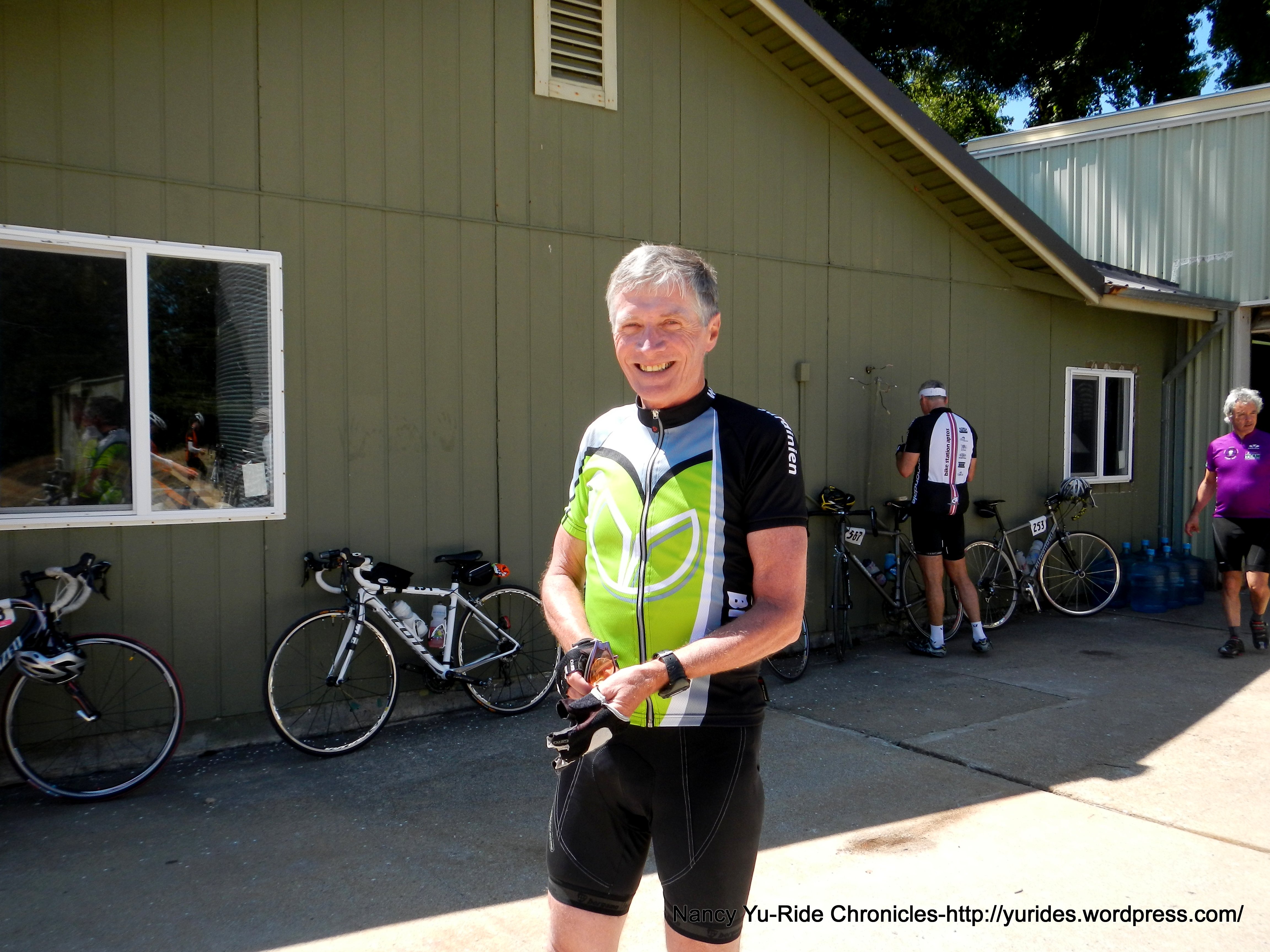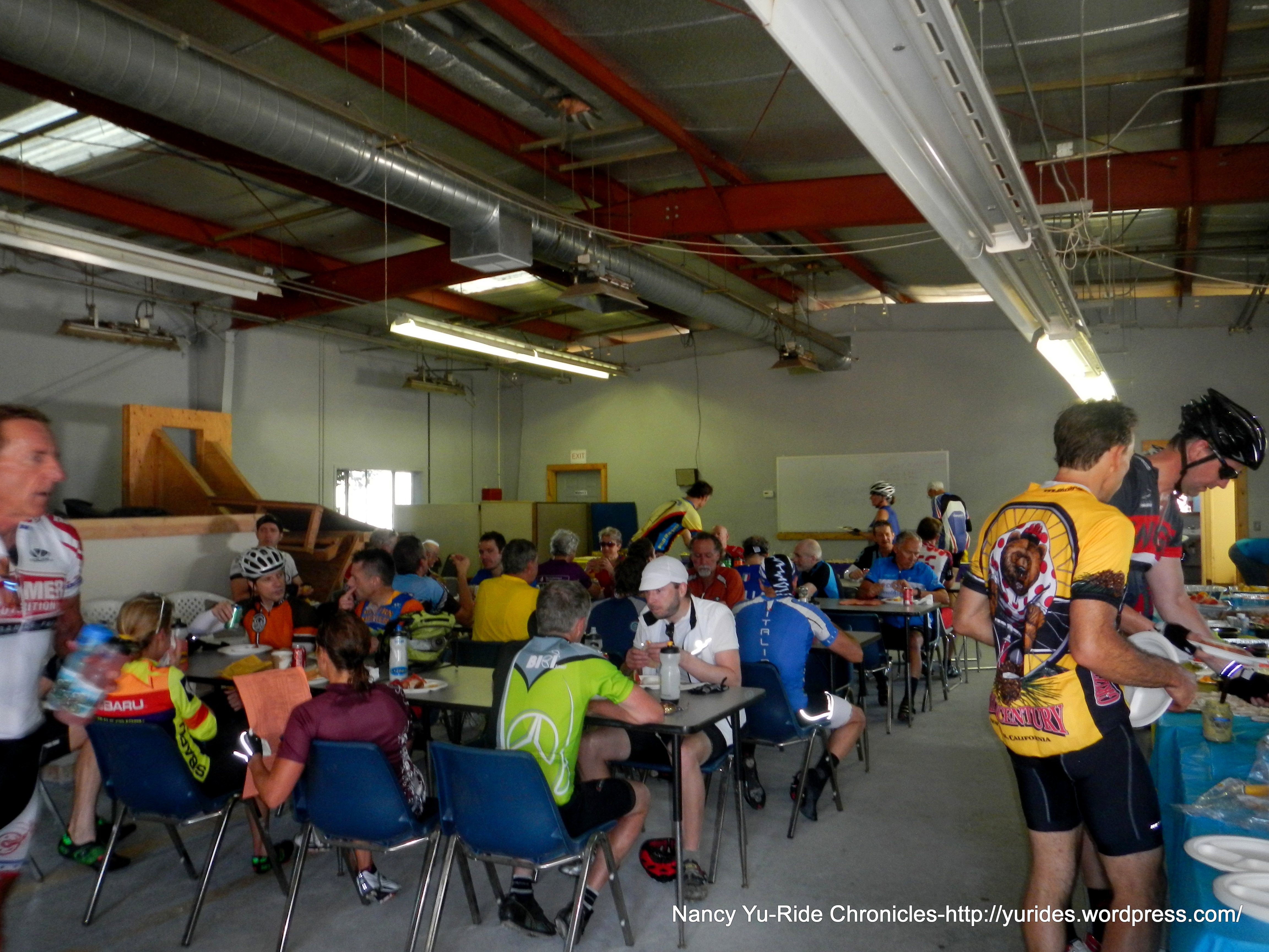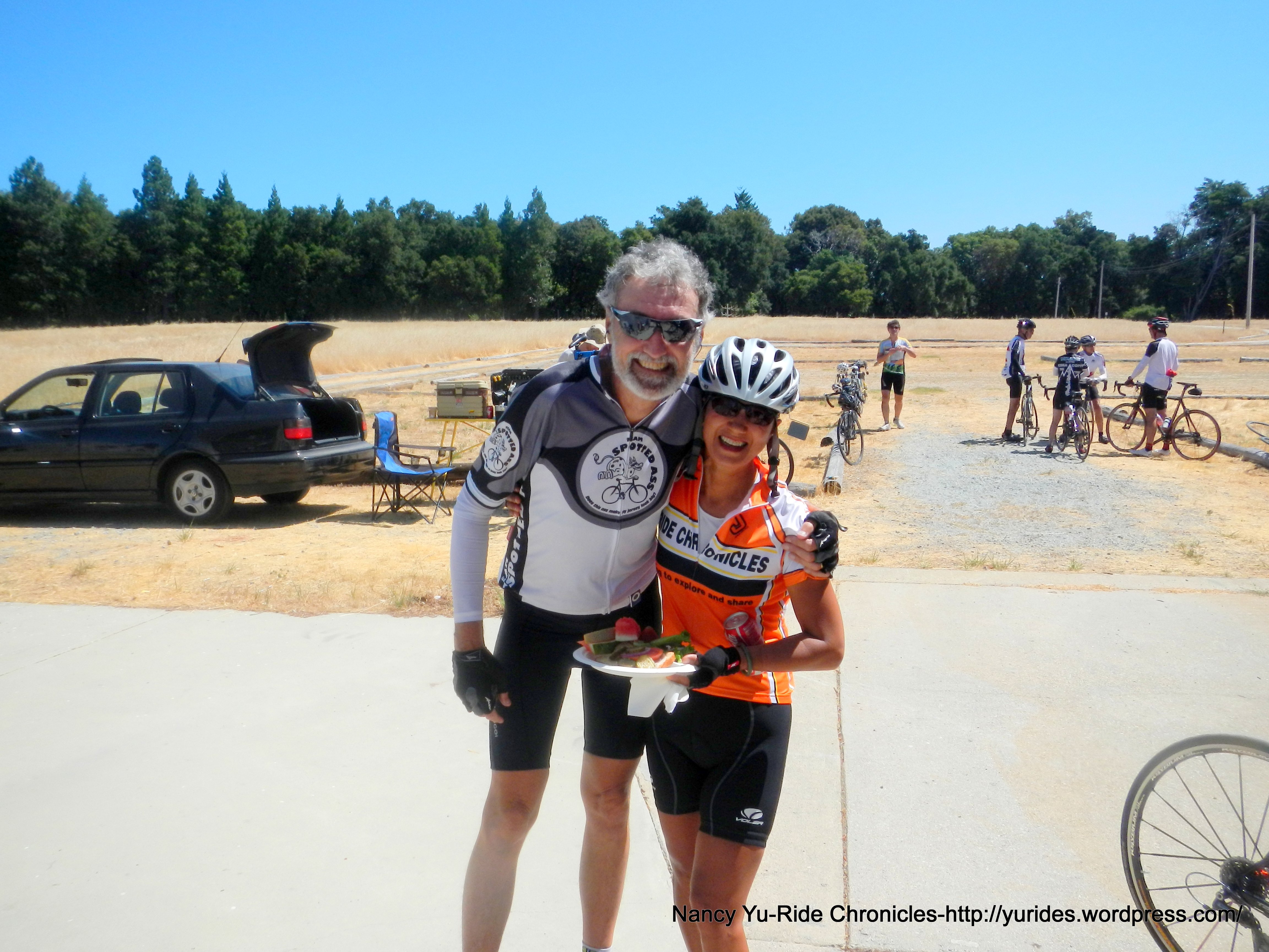 The next 1.5 miles on Empire Grade brings us to the Lunch Stop-Ben Lomond Training Center-CDF, mile 45.8 at 11:15 AM. It’s now a toasty 78F here! It’s great to see Ken E back on the bike and see Emil again!