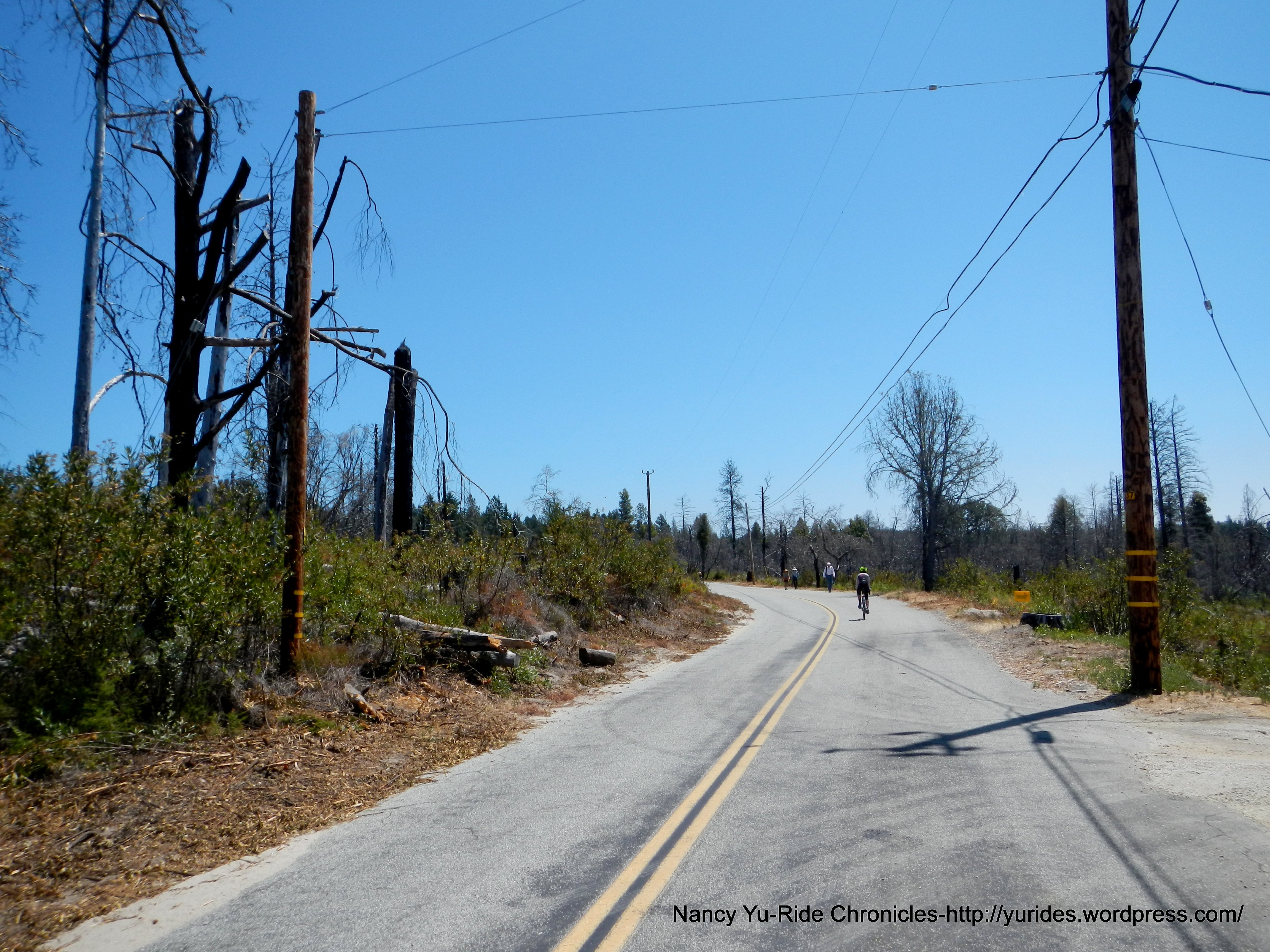 The ascent on Mt Charlie is 4+ miles long on a narrow single lane road. The grade for first mile of climbing is at around 6-9% on really poor pavement with lots of cracks and potholes. Catch your breath when you reach the point where the road levels out because the steeper section of this climb is coming up! You’ll not only see it but you’ll feel it as well-the gradient ranges from 11-15%!