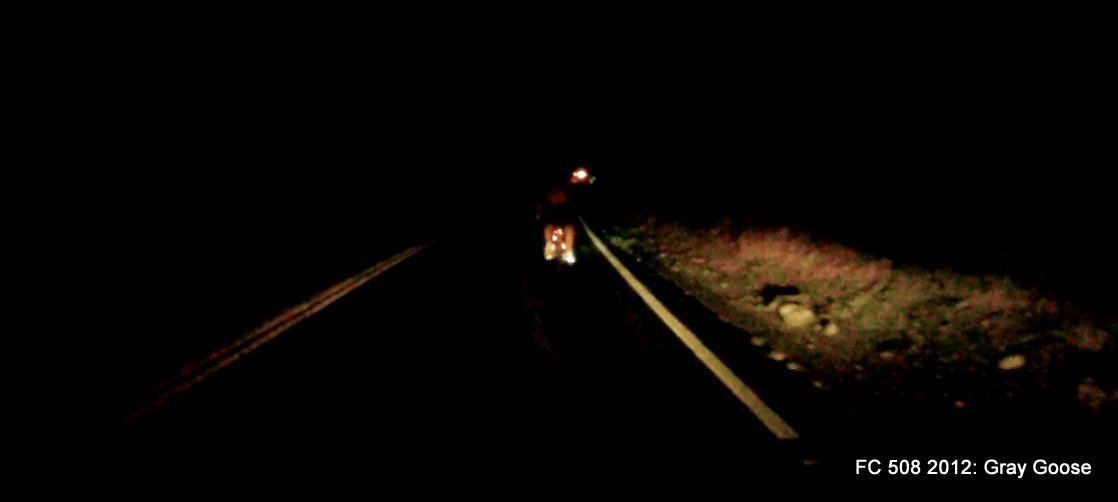 It’s pretty cool to be climbing Townes Pass in the dark. I can look back to see the long string of bright headlights behind us and a few red taillights ahead of us. That’s a good thing; there are more riders behind us than ahead of us! We’re just keeping a steady pace all the way up to the summit at 4956′.