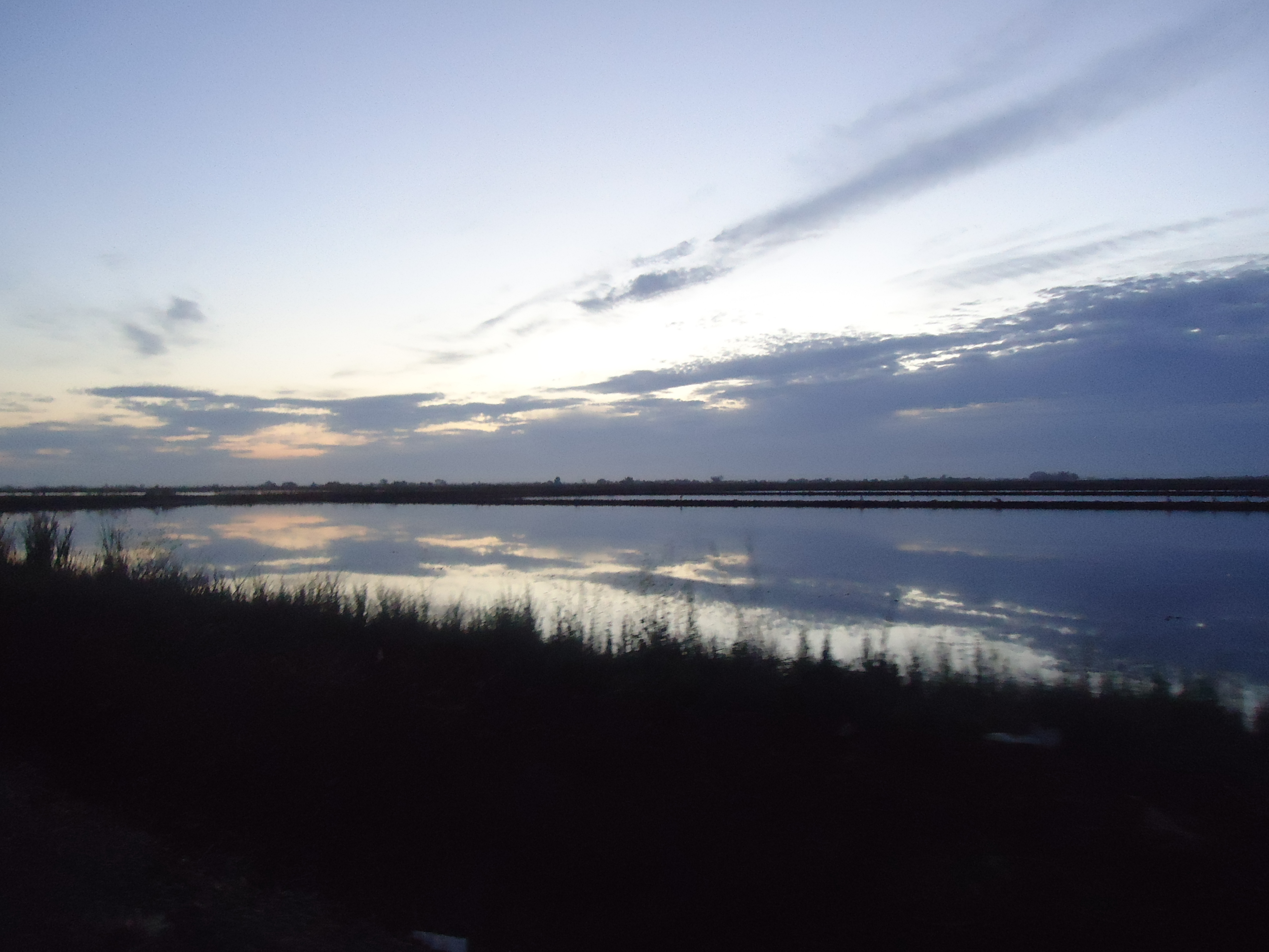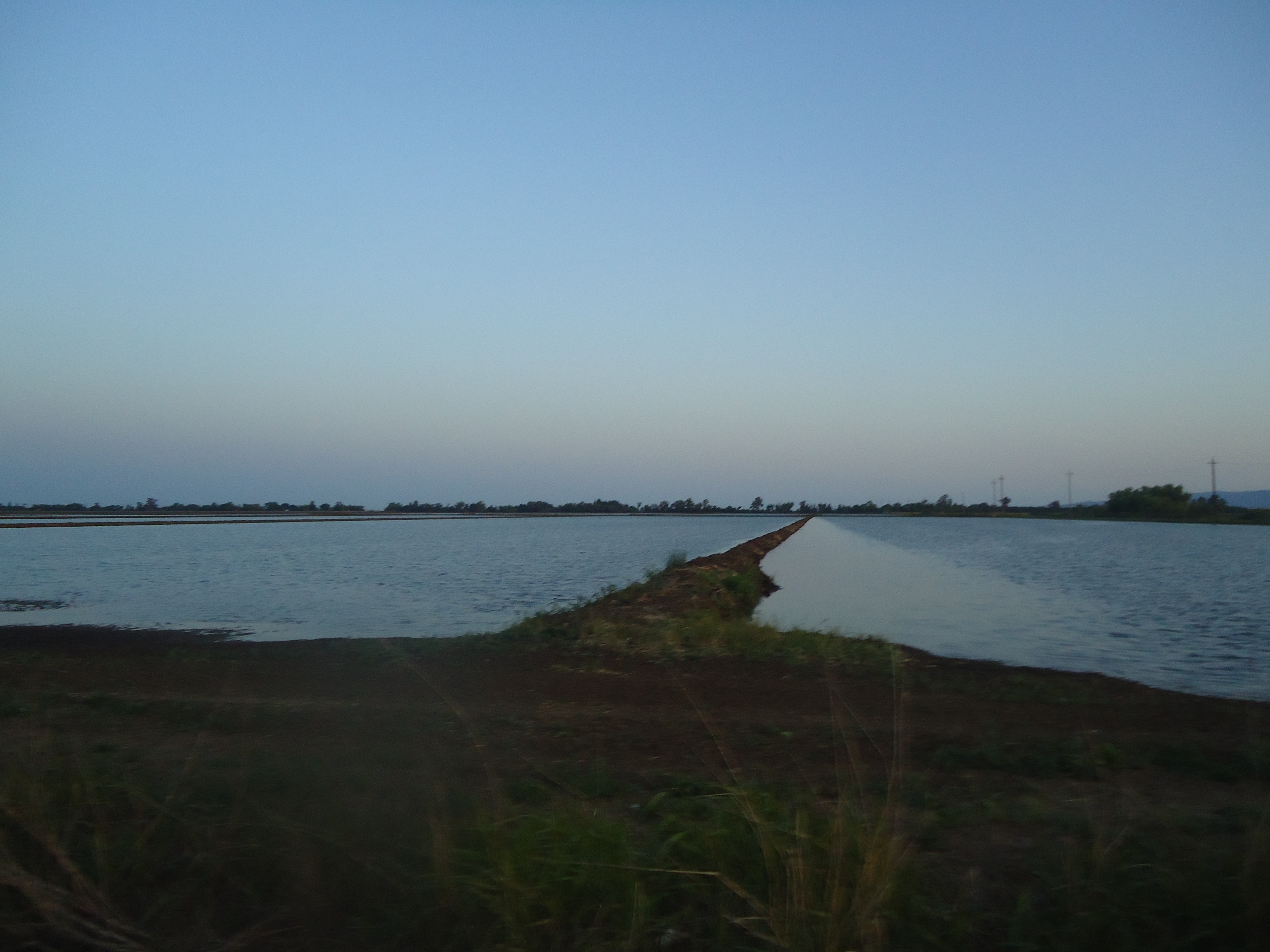 hear the sounds of crickets and frogs croaking as we pass the open farmlands and canals.