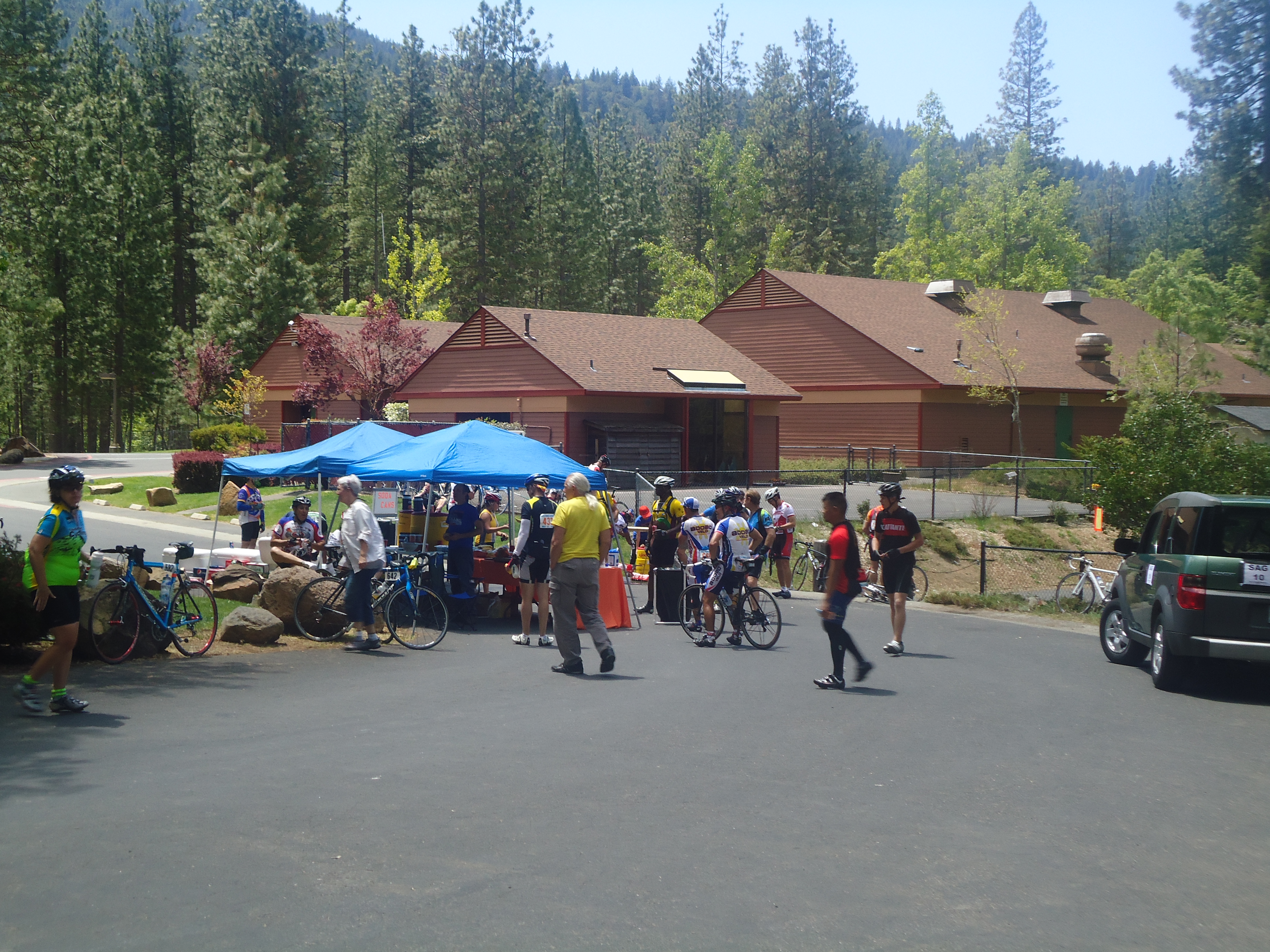 We arrive at RS#3-Pope Valley Grange Hall, mile 76 at 9:51 AM. Temp 70F. To avoid the long porta-potty line, we made an earlier stop at the Pope Valley