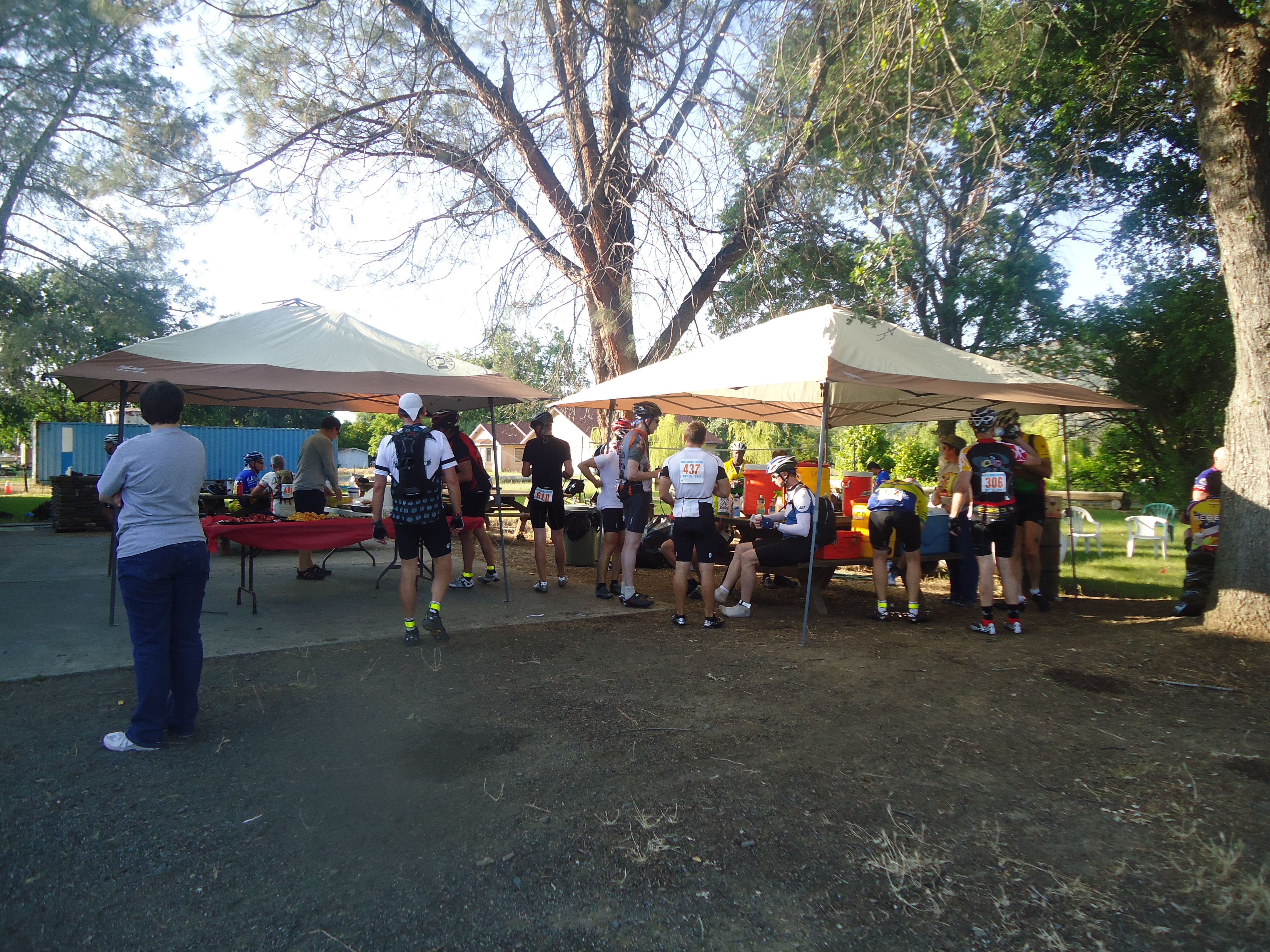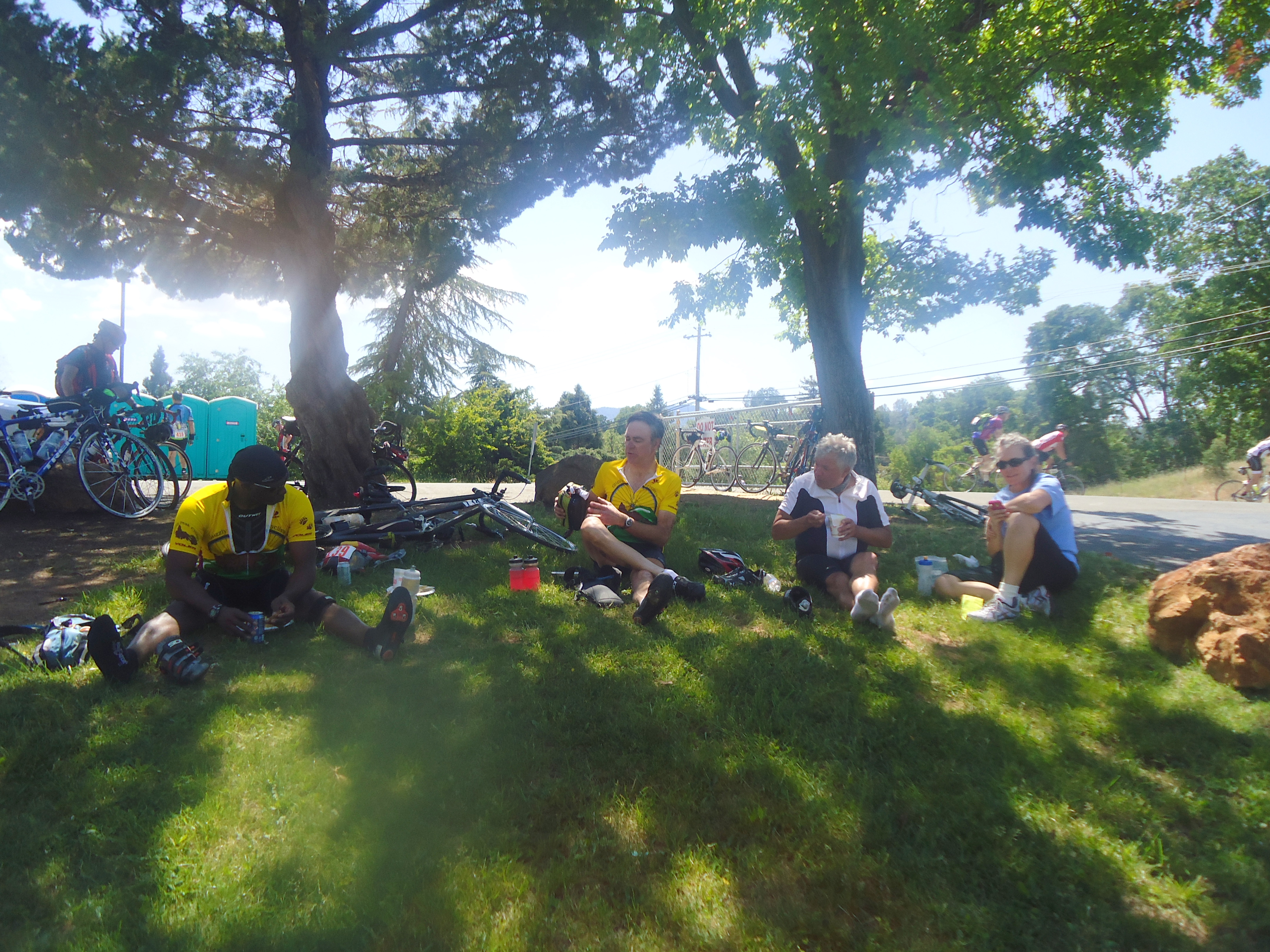 We arrive at the Lunch Stop-Lower lake High School, mile 117 at 2:10 PM. I have a chicken cup o’ noodles and a slice of roast beef wrapped with lettuce, some