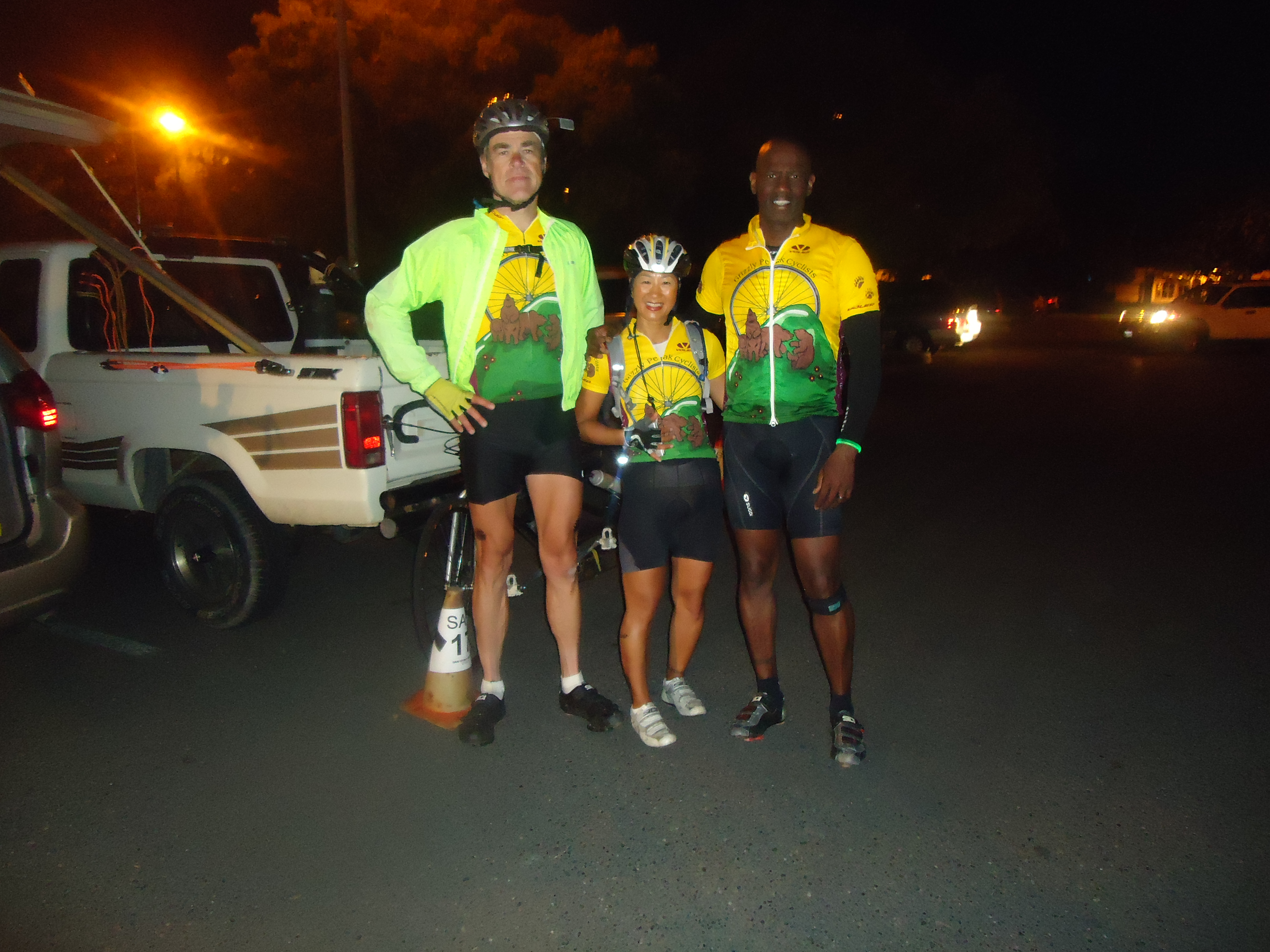 There’s a huge sigh of relief once we take the turn onto Road 85B. The remaining miles to the next rest stop is all flat with no traffic. We reach RS#8-Farnham Ranch, mile 181 at 7:40 PM. I eat a few red potatoes sprinkled with salt and take a few sips of Coke. It’s only another 22+ flat butt sore miles back to Davis. Everyone is given a glow in the dark bracelet for the ride out.