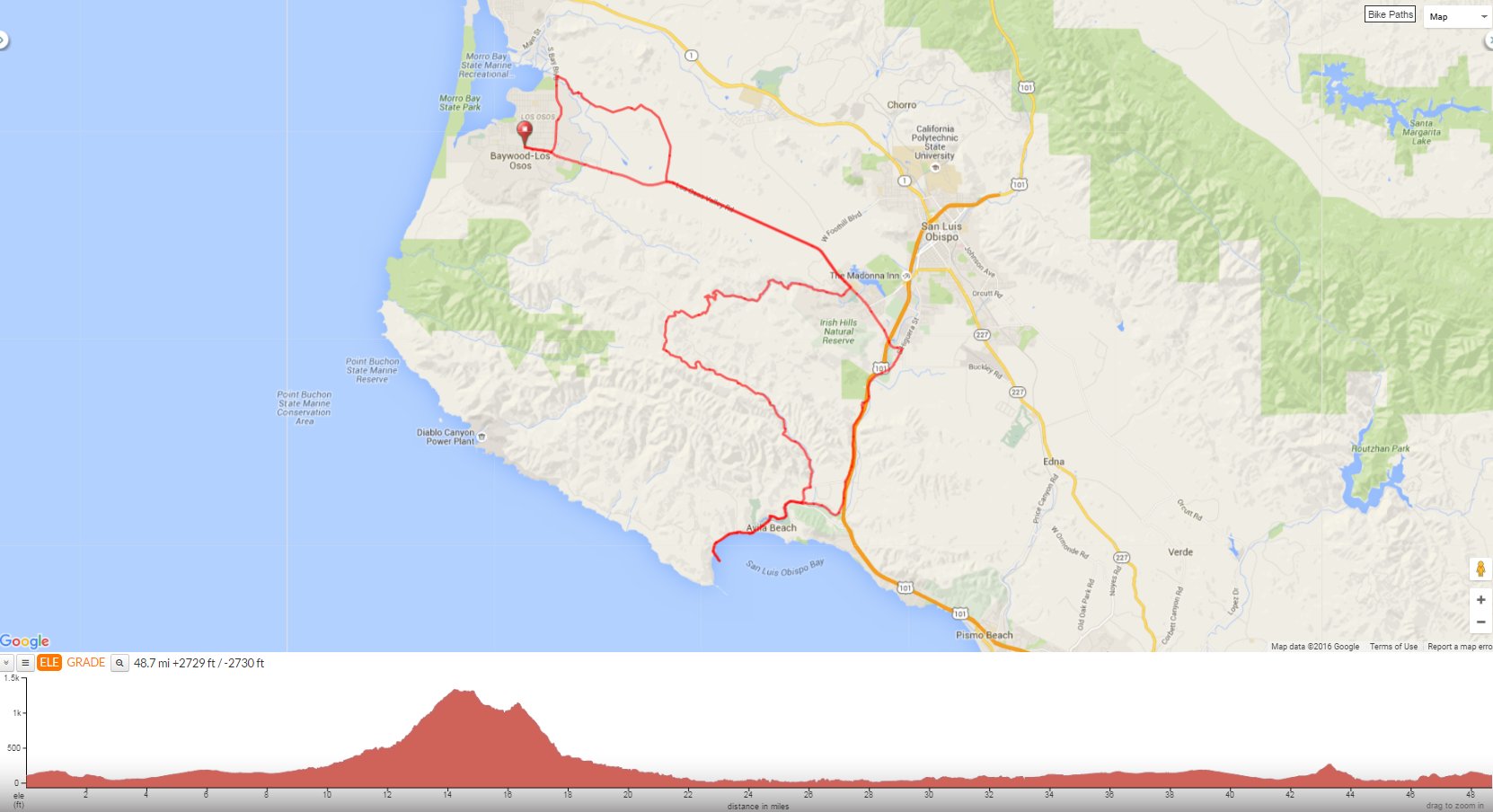 This ride heads out through Los Osos Valley for a climb up through the beautiful Irish Hills on Prefumo Canyon followed by a scenic stroll on the Bob Jones Trail to Avila Beach and Port San Luis. Roll back through Los Osos Valley for an additional climb up Turri Rd to Morro Bay before returning to Los Osos.