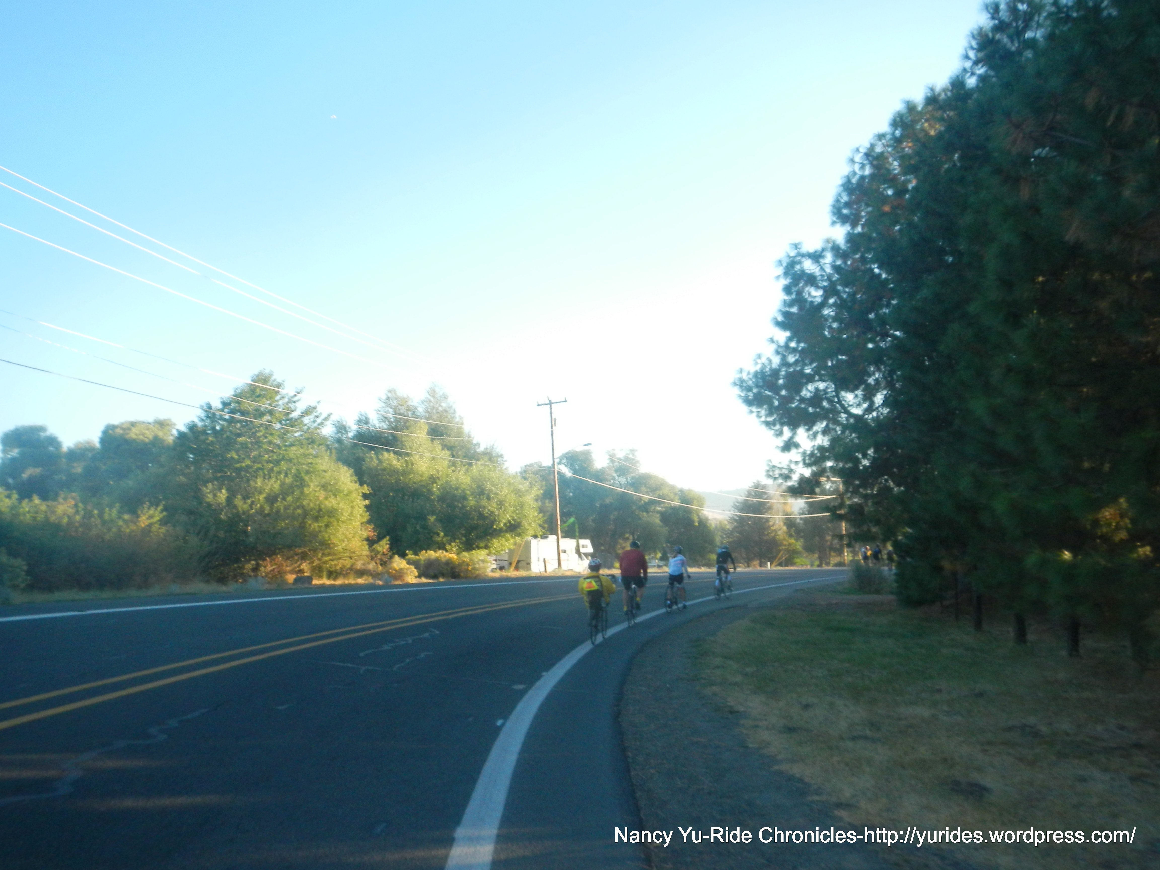 The paved path ends at the small town of Olene, we have to ride on the narrow shoulder of Hwy 140 for the next few miles. We arrive at the water stop-Stevenson Park at 8:25 AM, mile 15.7-57F.