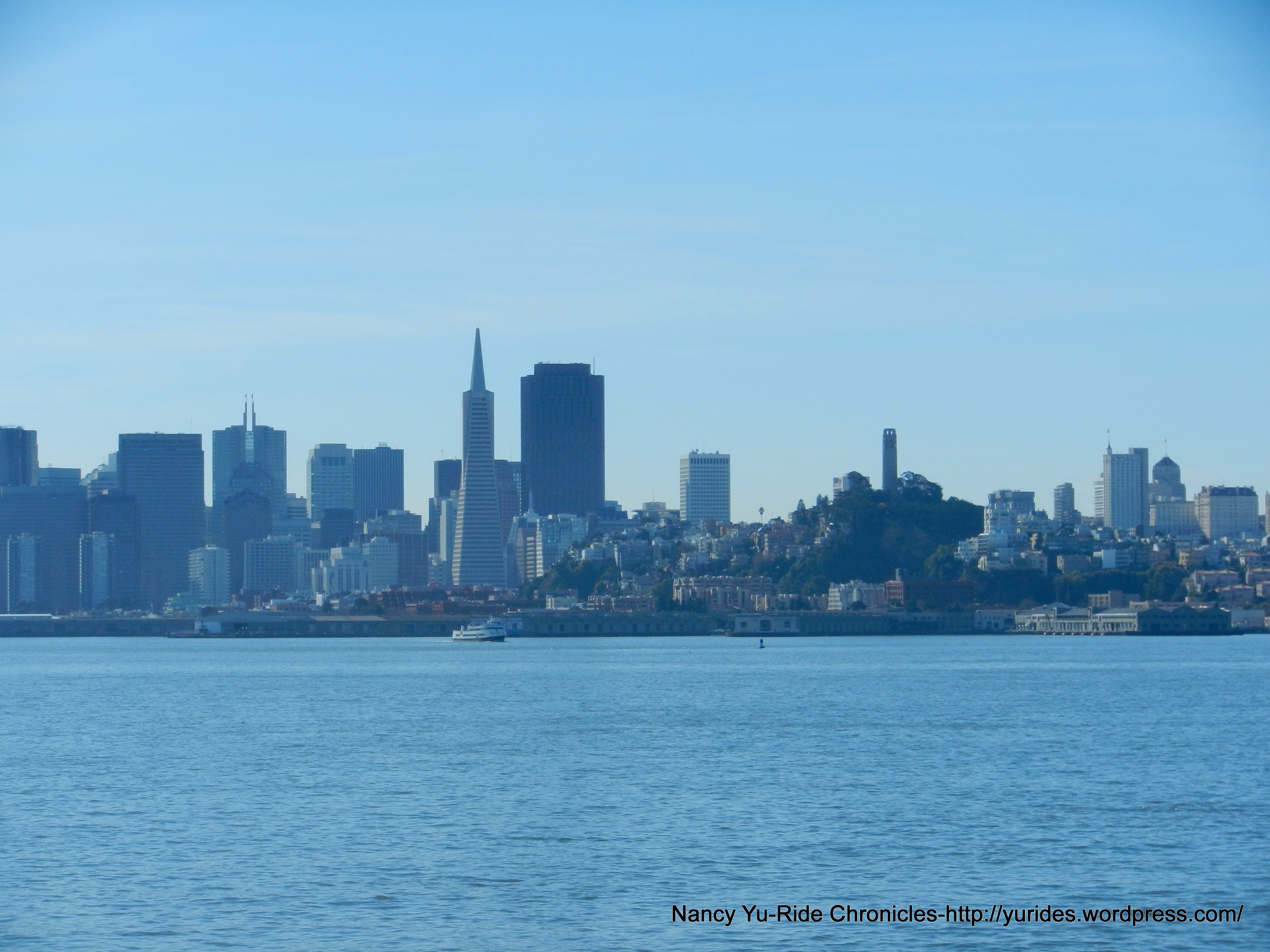 The ferry ride over to SF takes about 35 minutes. The views of San Francisco Bay are magnificent! There is so much to see; Larkspur, Mt Tam, San Quentin, the three bridges, Tiburon, Alcatraz, Angel Island, the Romberg Tiburon Center and of course the skyline of San Francisco!