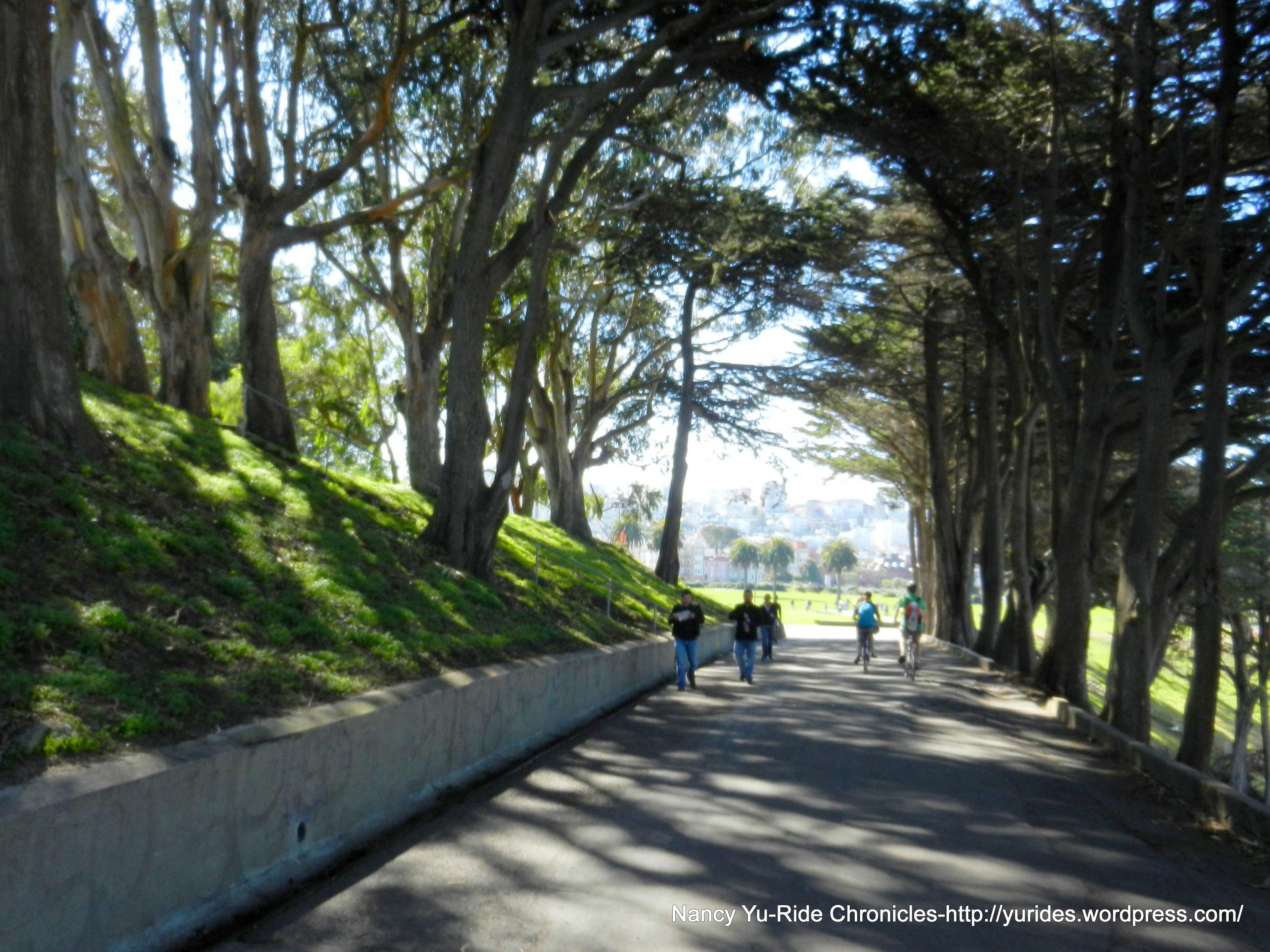 Jefferson St takes us on a path through the Cannery, the Dolphin Swim & Boat Club, the Maritime Museum and Park and Ghiradelli Square. The north end of Van Ness Ave brings us to the short steep climb along Gashouse Cove up to Fort Mason Green.