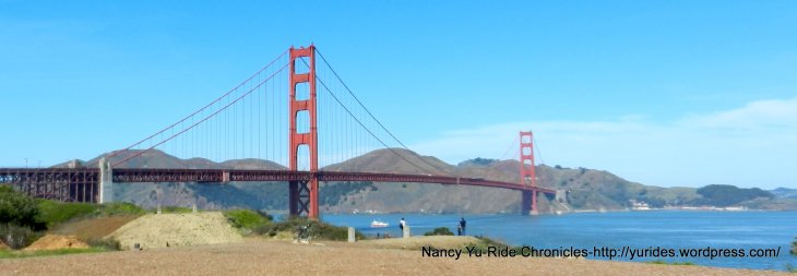 The path leads us out to Marina Blvd and Mason-pass the Marina Green and Crissy Field towards to Warming Hut. The climb up Long Ave takes us on a path up to the bridge. With construction work going on in this area, the path closure further along leads us to a detour on Lincoln Blvd to the GGB-it was all simple enough to follow. The views of the bridge are very impressive!