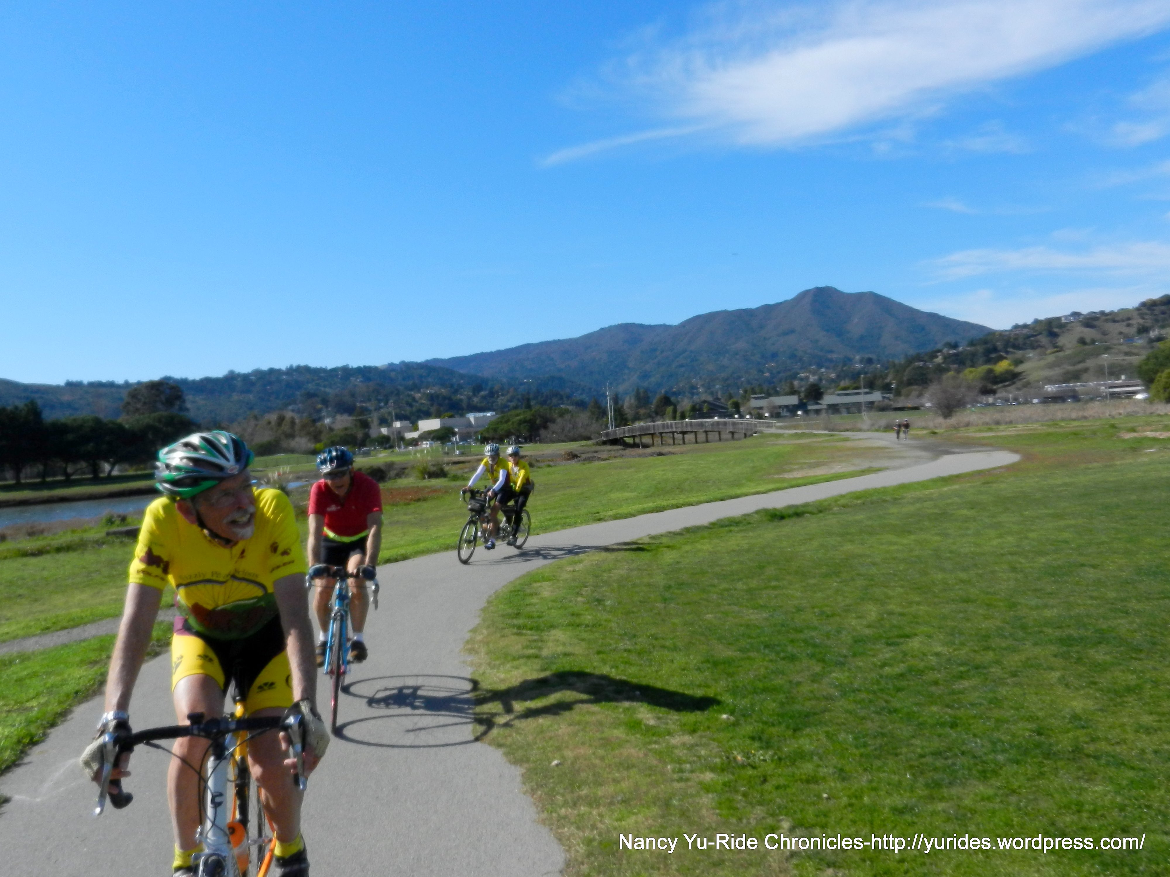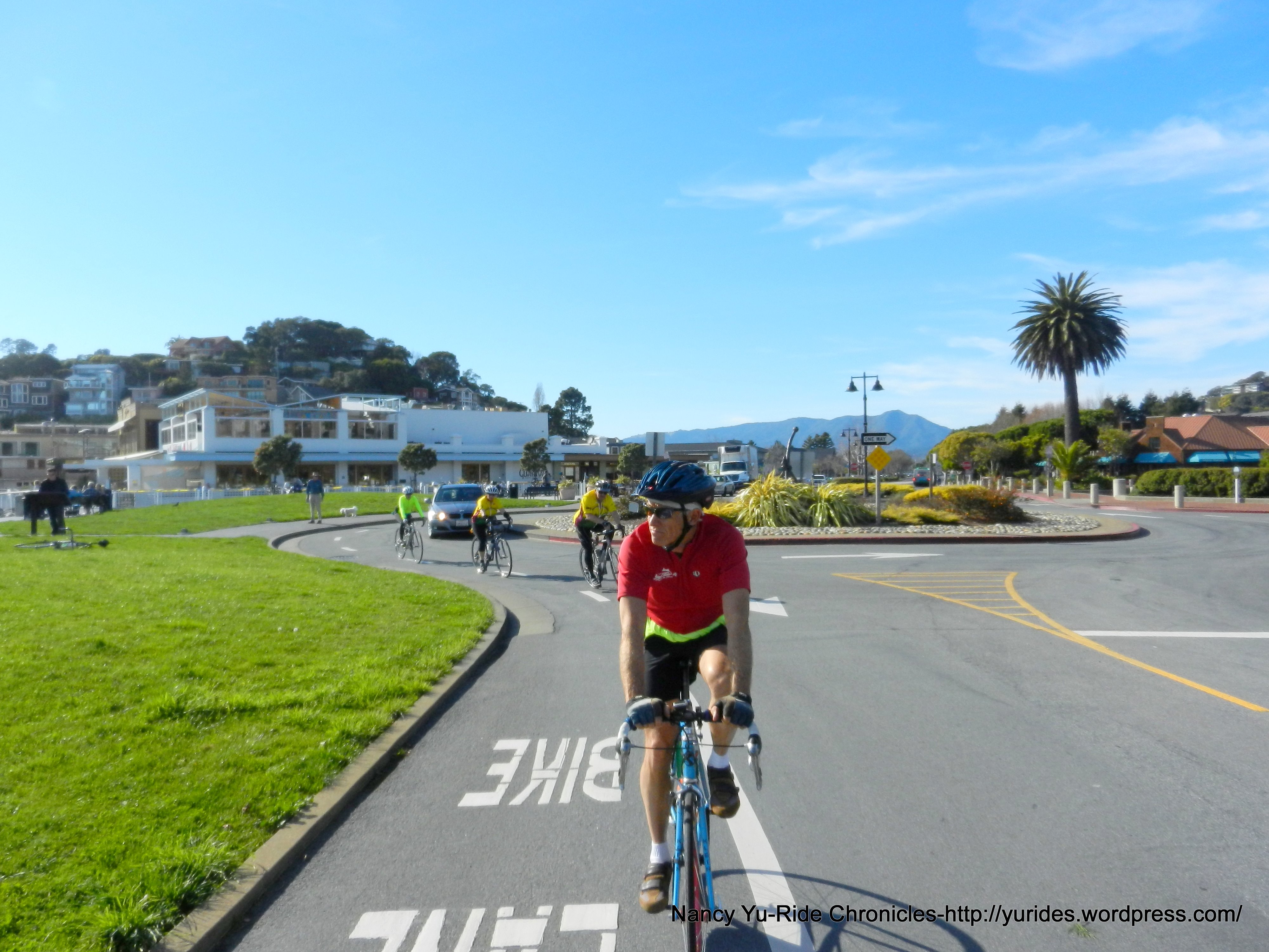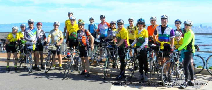 The 8+ miles on Paradise Dr is always fun-it’s slightly downhill with a few rollers in between all the way into Corte Madera. The bike path that parallels San Clemente Dr takes us to Redwood Hwy and onto another path along the freeway off ramp. The return on Sir Francis Drake Blvd brings us back to the ferry terminal.